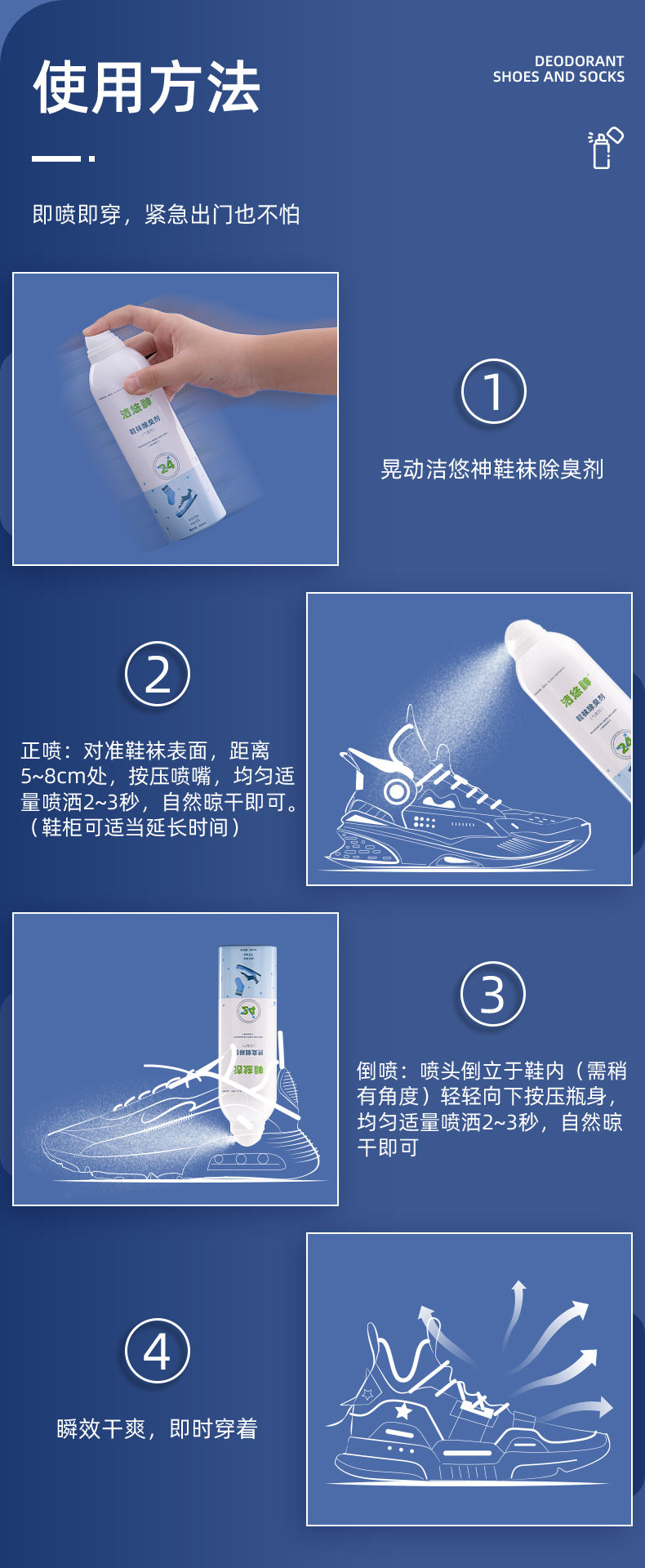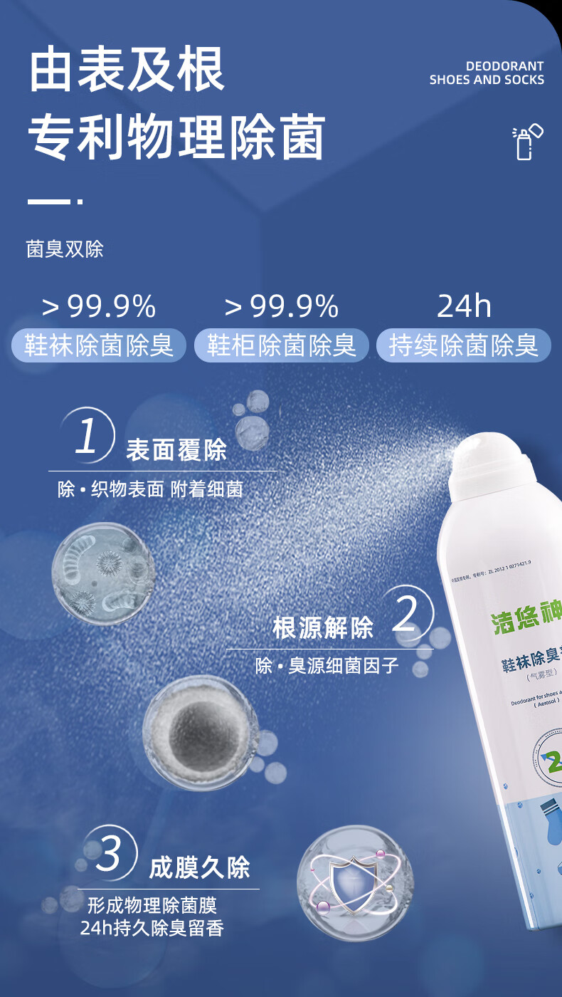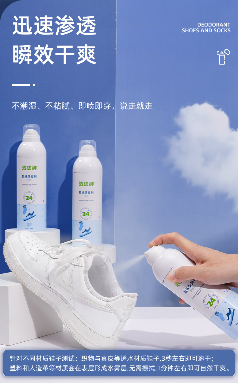 洁悠神鞋子除臭喷雾异味杀菌物理除菌鞋柜除臭长效抑菌清新留香消臭神器 一瓶装305ml【木质香型】