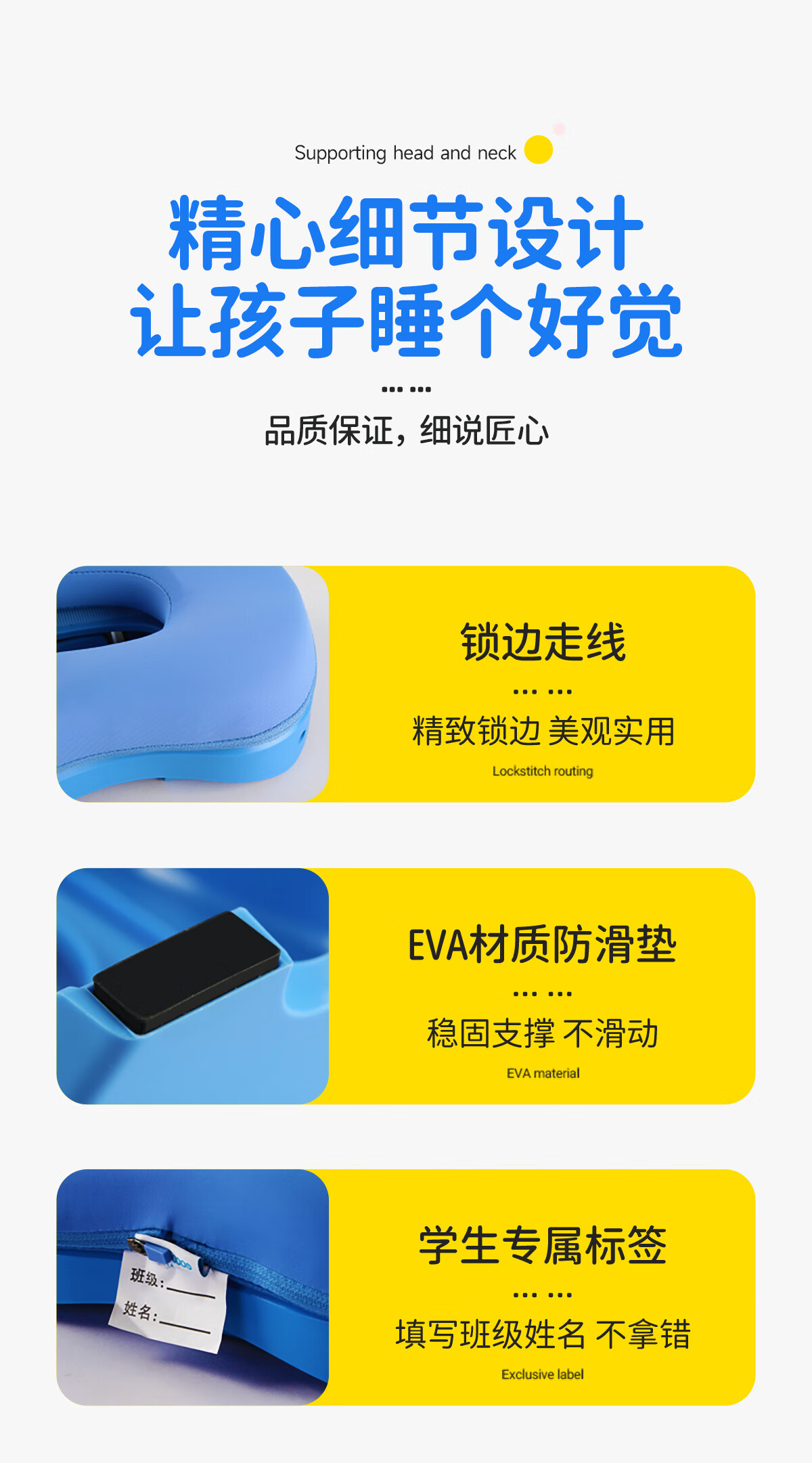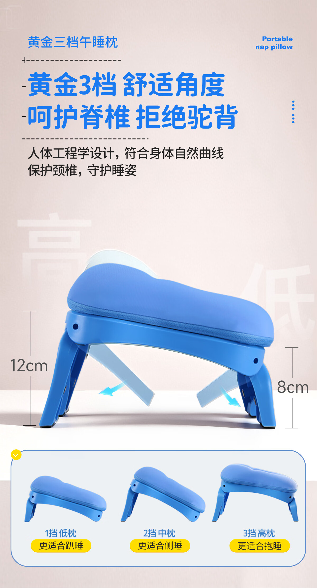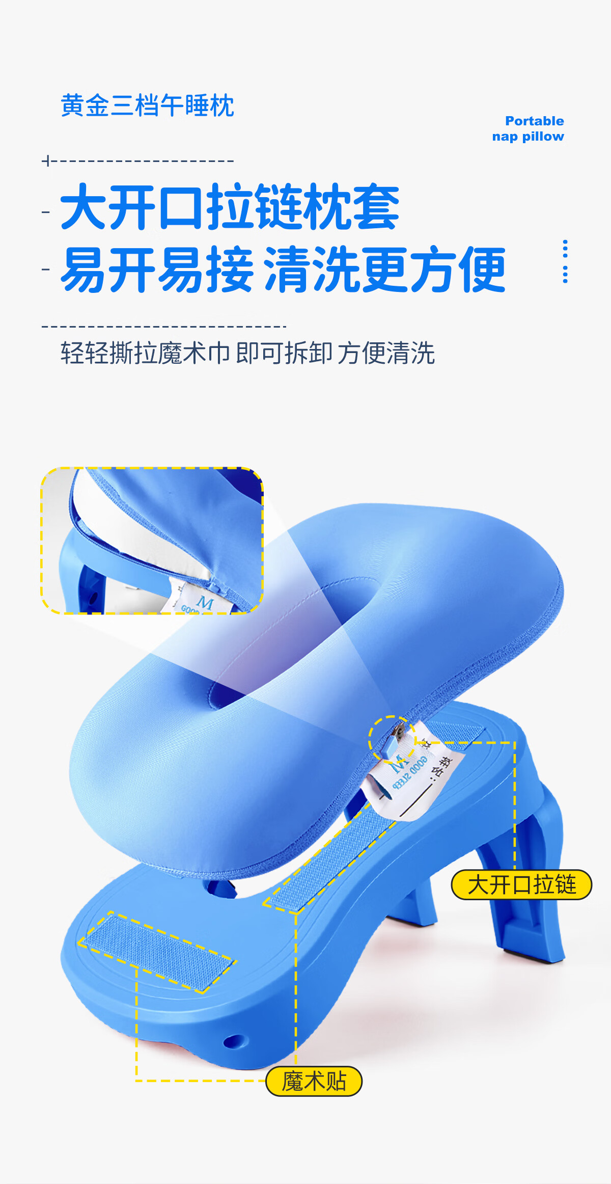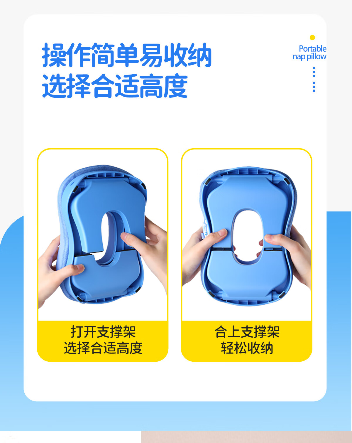 茶礼世家午睡枕小学生趴睡枕头可折叠便携抱枕儿童教室课桌上睡觉趴趴枕 天空蓝【冰丝枕套】送收纳袋 25cm*17cm 含枕芯 升级竹炭款