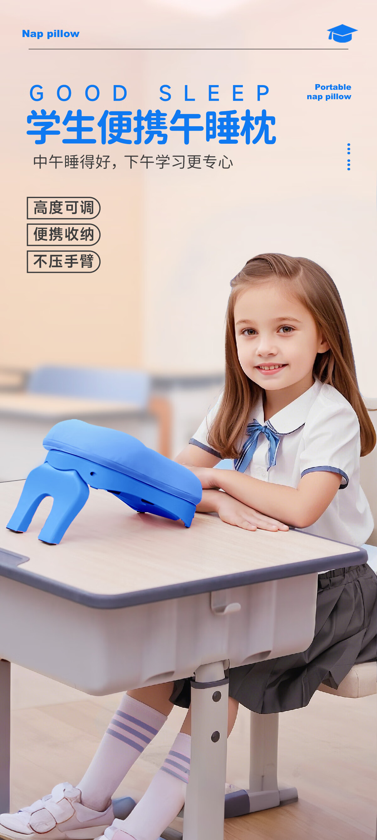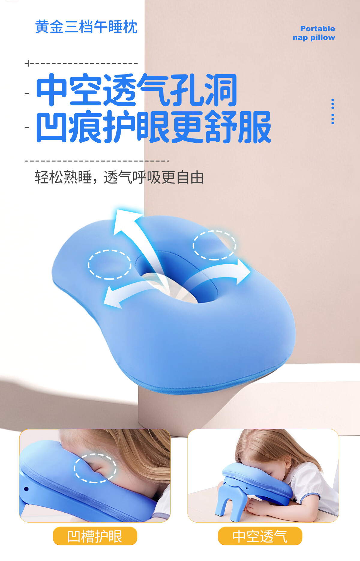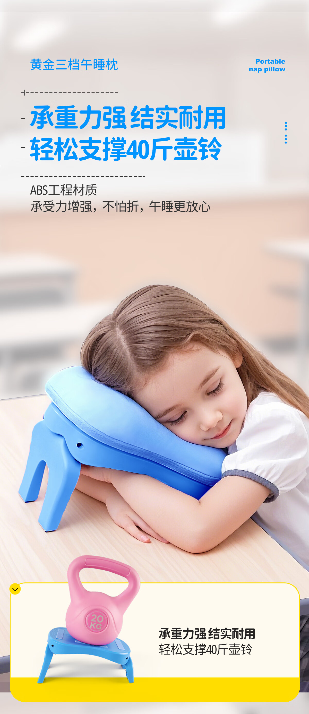 知梦人午睡枕小学生午睡神器午休枕儿童趴睡枕办公室趴桌子睡觉趴趴枕 学生款【薄荷绿】