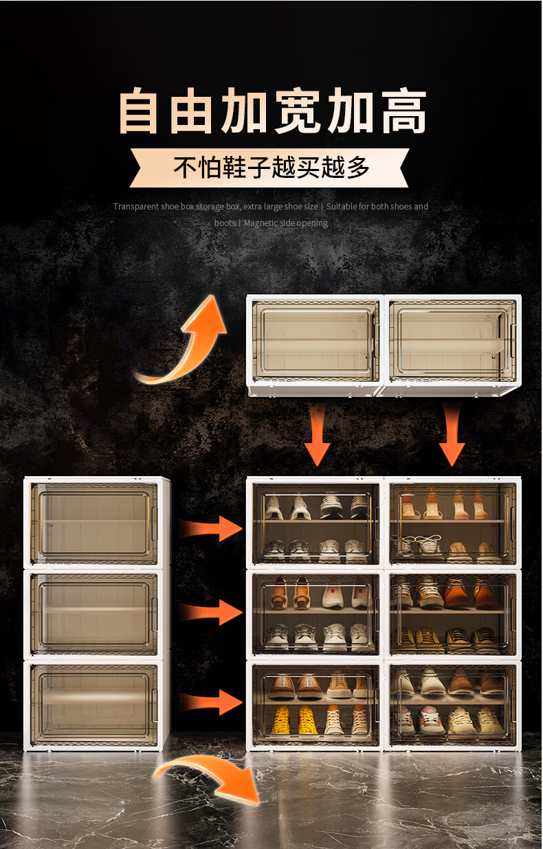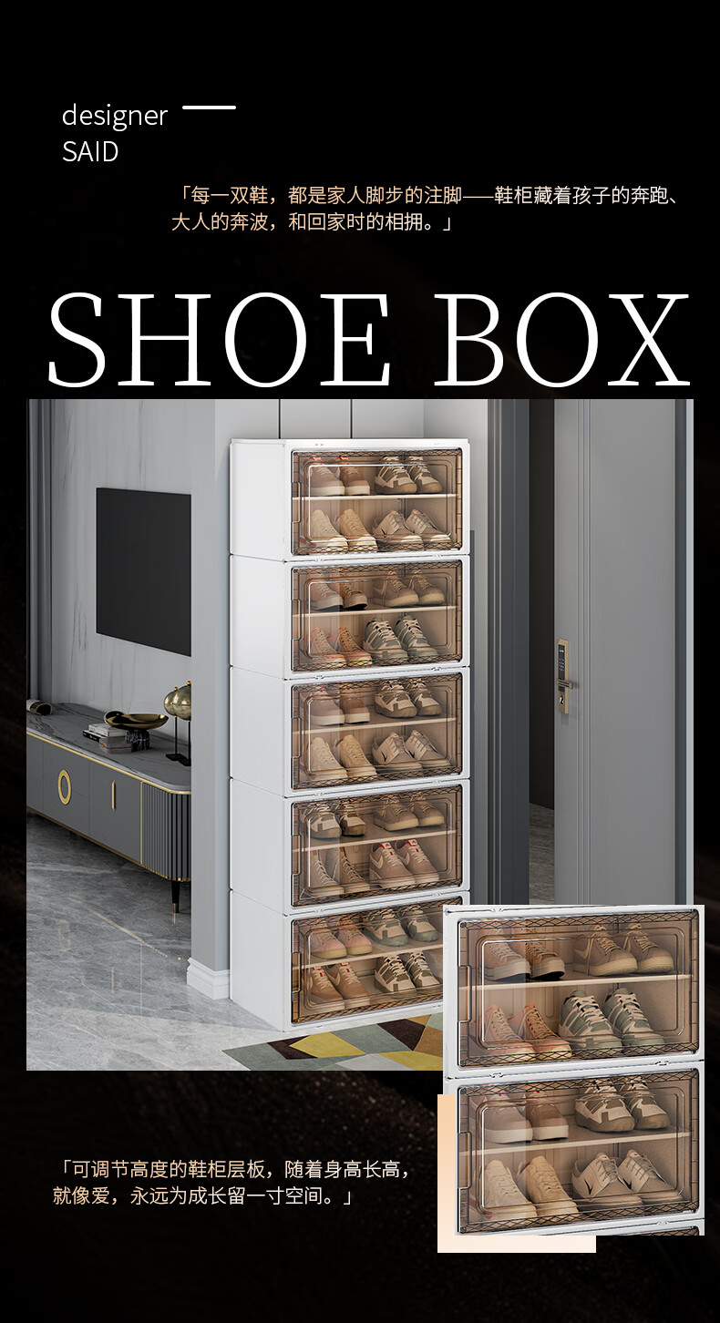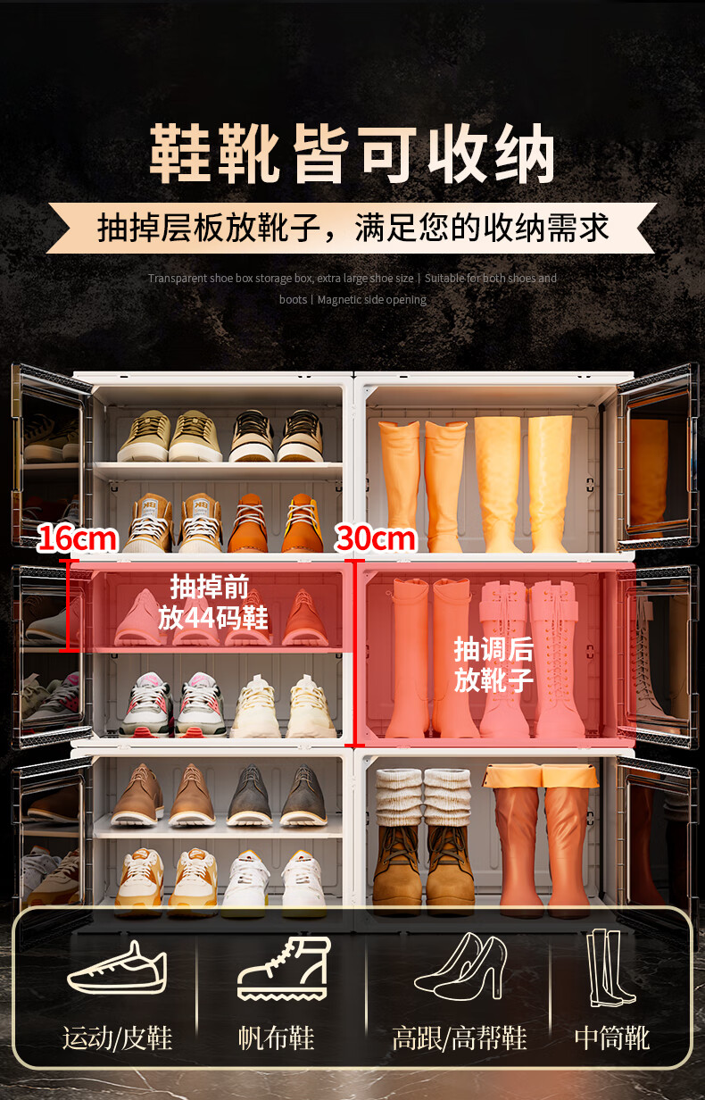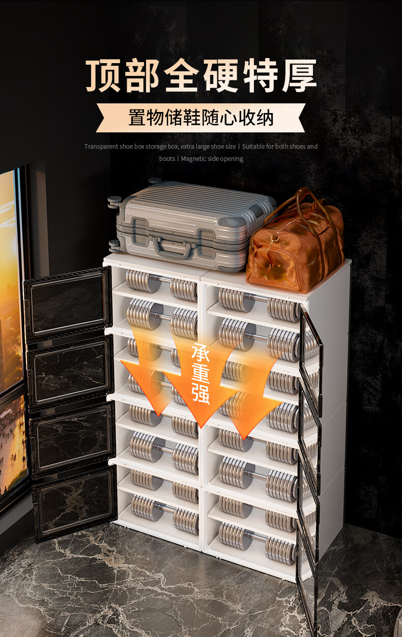 ColesHome小鞋架子家用门口简易鞋盒塑料鞋柜宿舍租房楼道走廊多层结实耐用 顶部全硬置物-加厚2列16格白-32双大码鞋