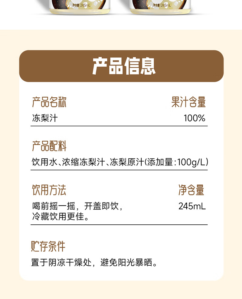 豪园【年货送礼】正宗东北冻梨汁雪乡水果味果汁饮料火锅烧烤解腻饮品 冻梨汁245ml*10瓶