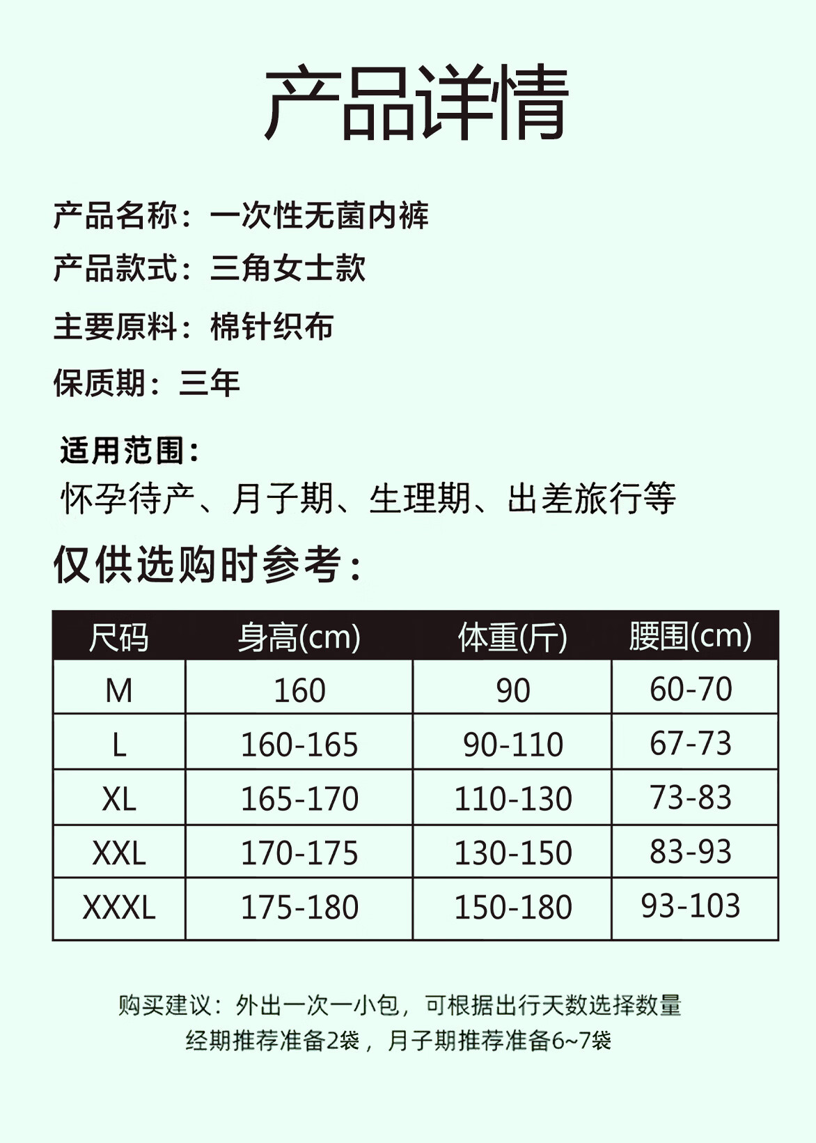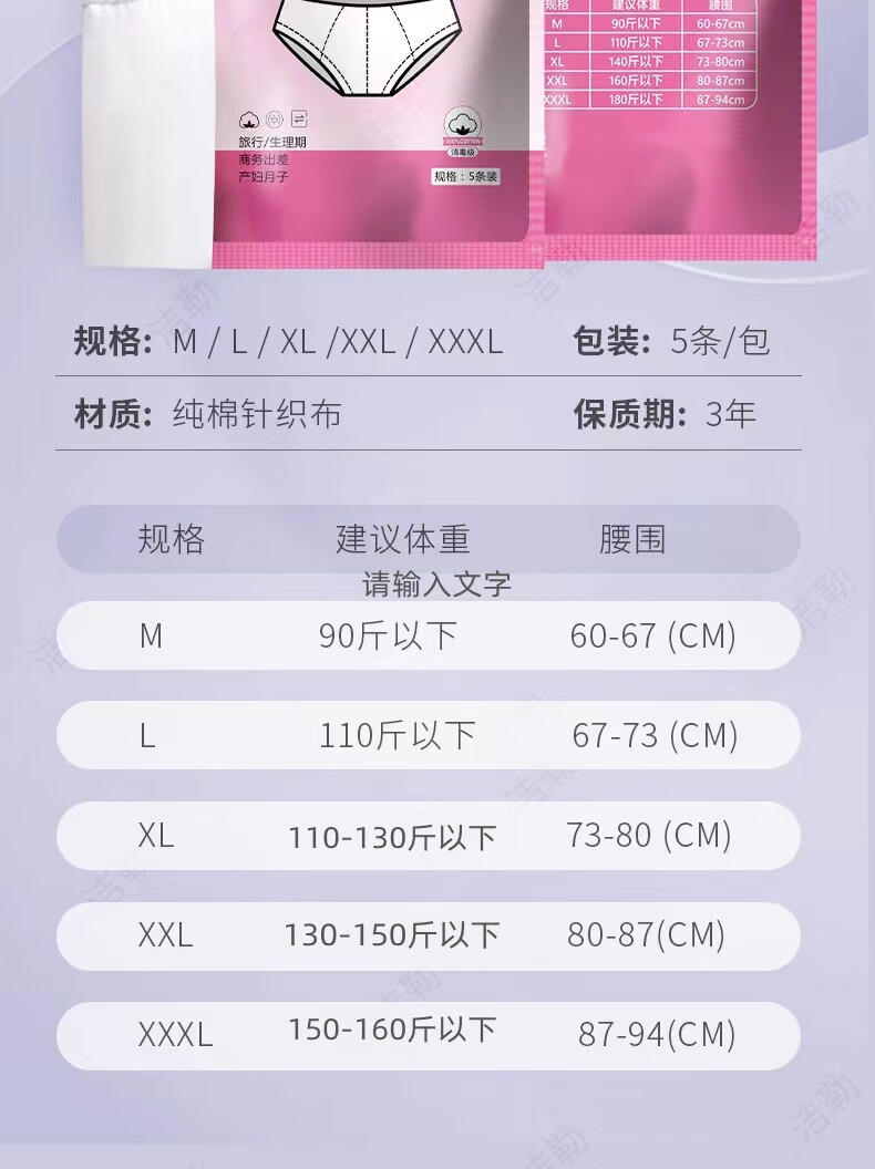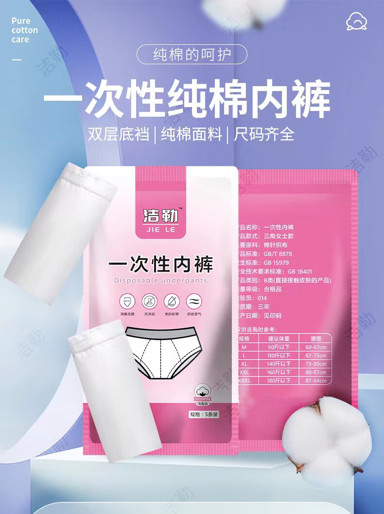 一次性内裤女士月子产后出差旅行无菌免洗便携棉质日抛裤 透明袋一条装(棉质+无菌+高弹 M90斤以上