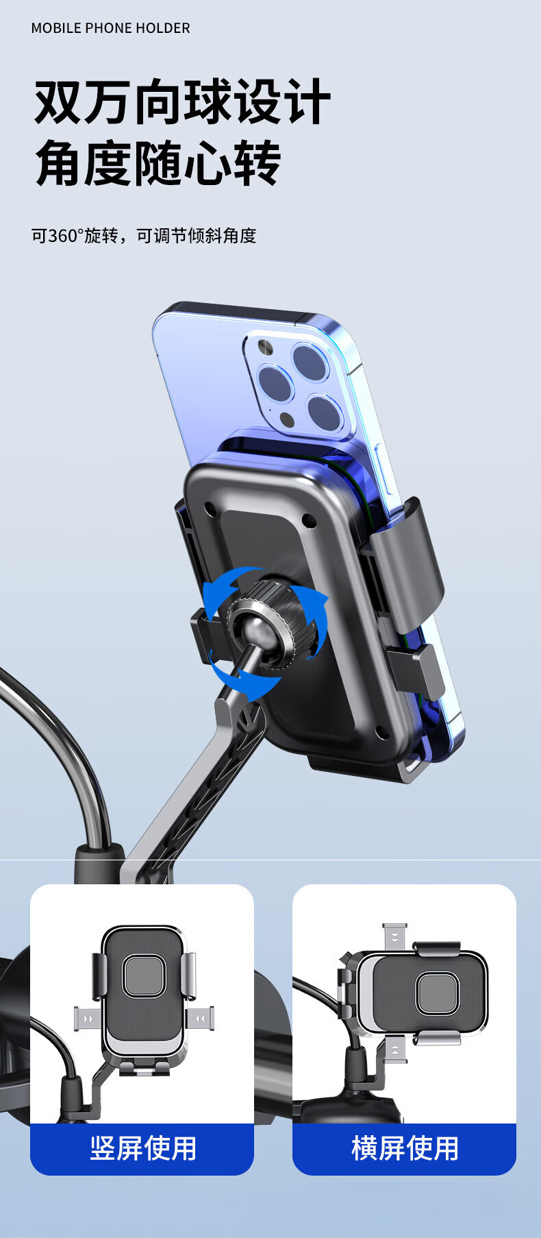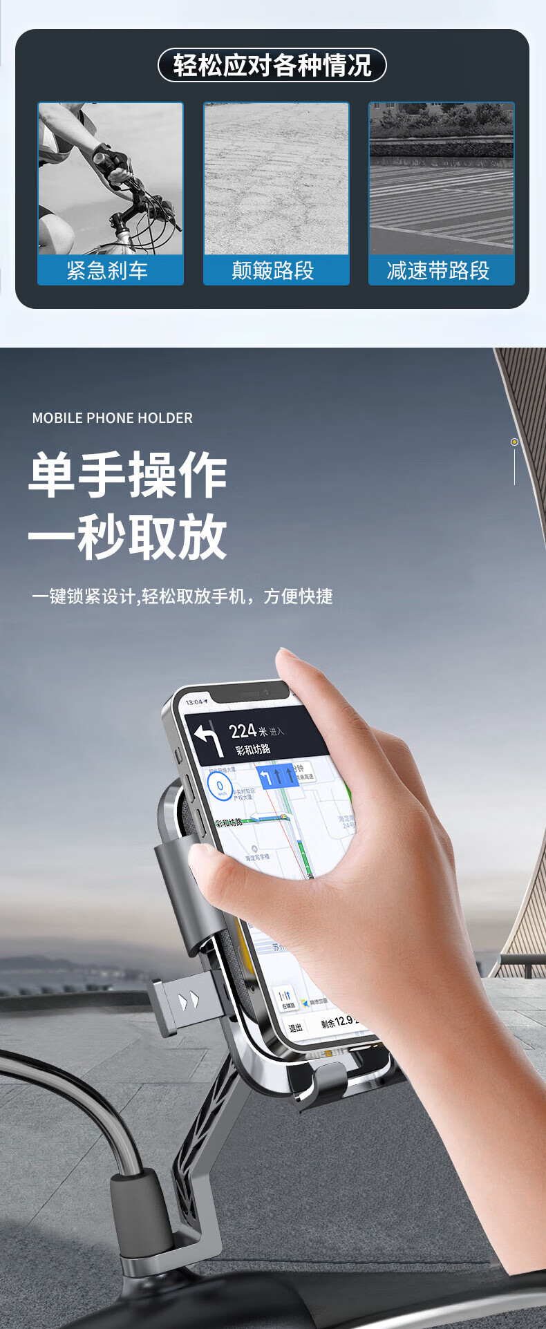 【甄选直发】新款电动车手机支架摩托车电车导航山地自行车车载手 【横把款】机械防抖卡扣