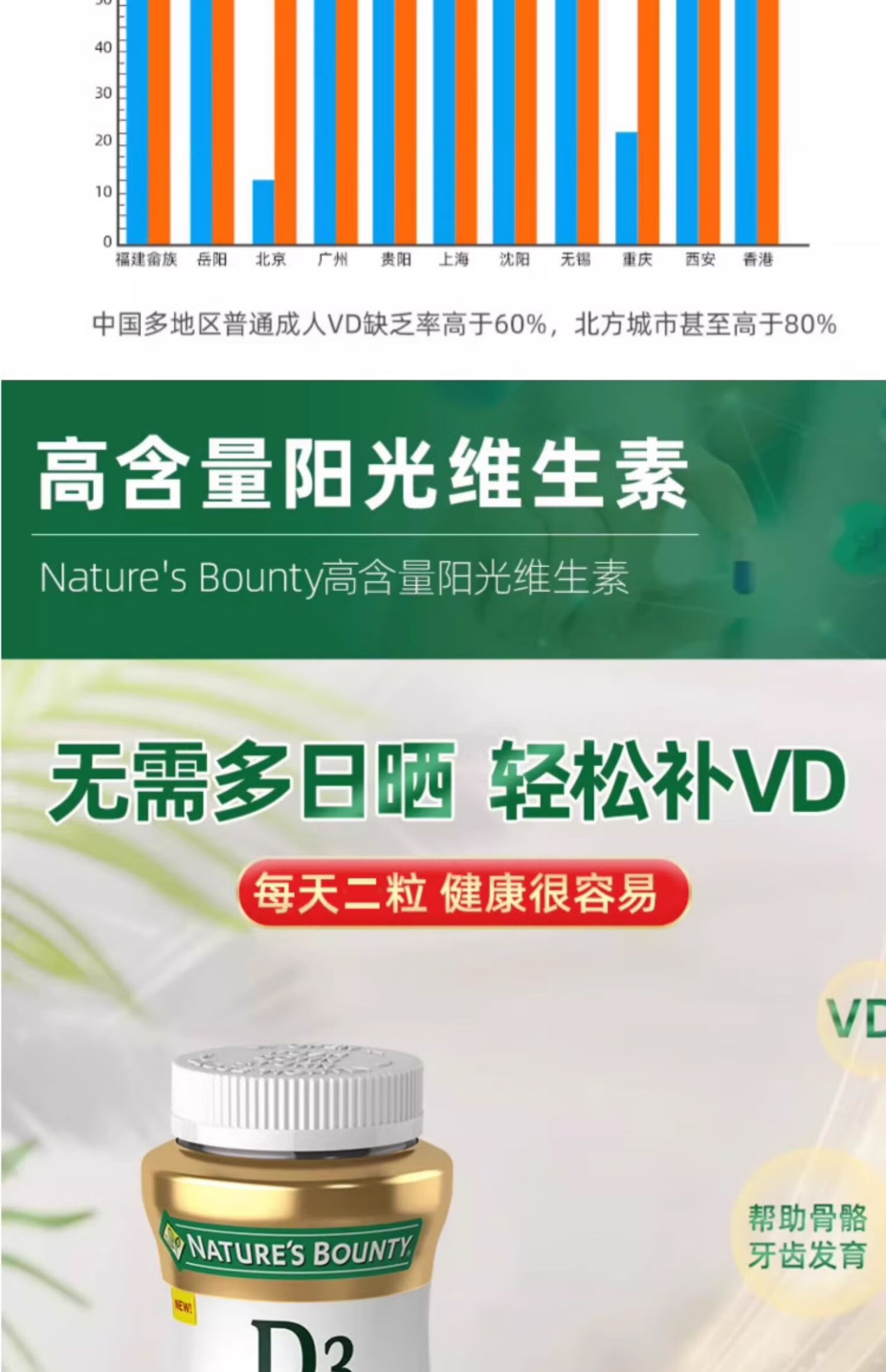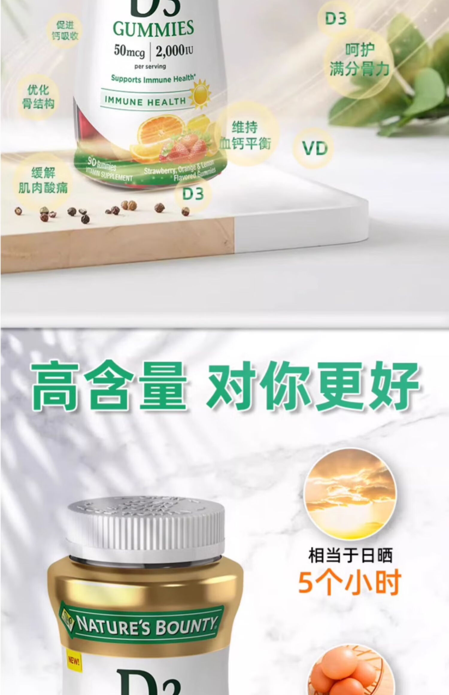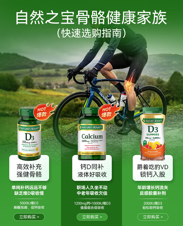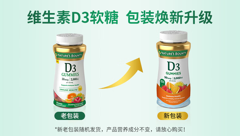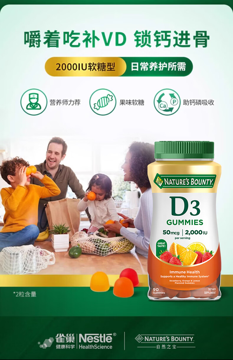 自然之宝维生素D3软糖90粒 美国原装进口VD3 男女补钙促进钙吸收水果味 2瓶巩固装|2000IU(共180粒)