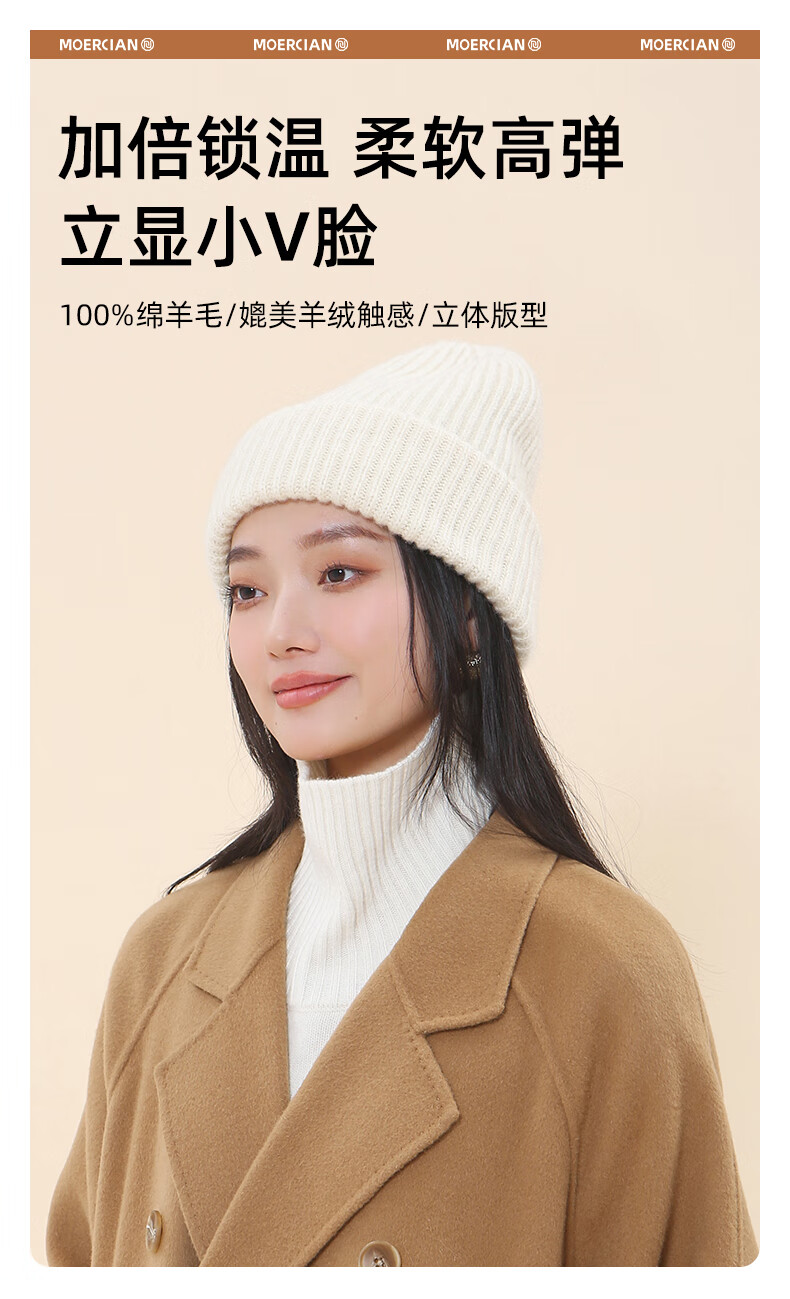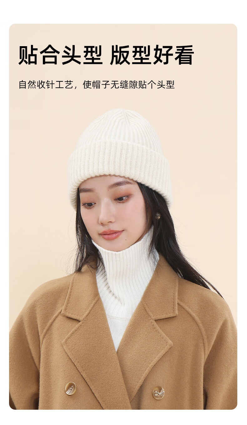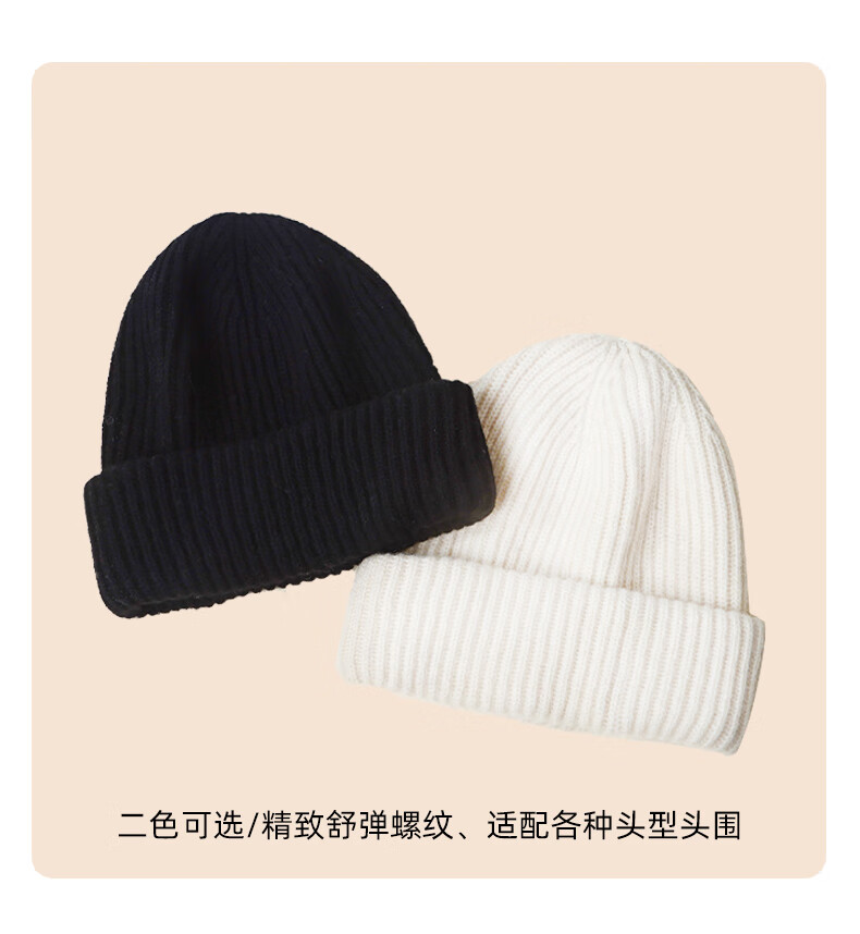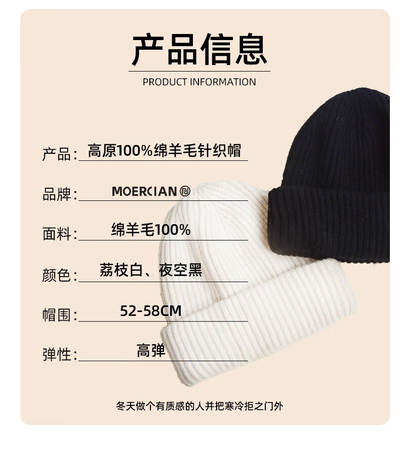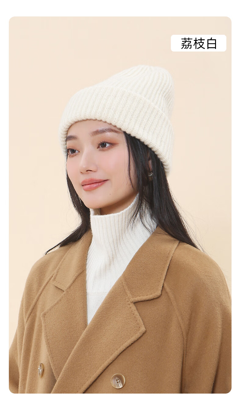牧尔西纯羊毛帽子女加厚保暖冬季男女款毛线帽舒适百搭款生日礼物 荔枝白