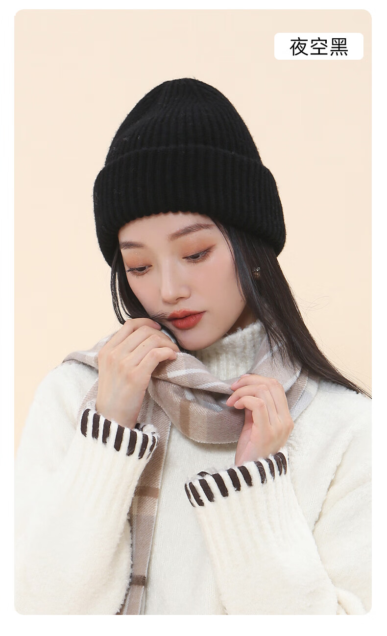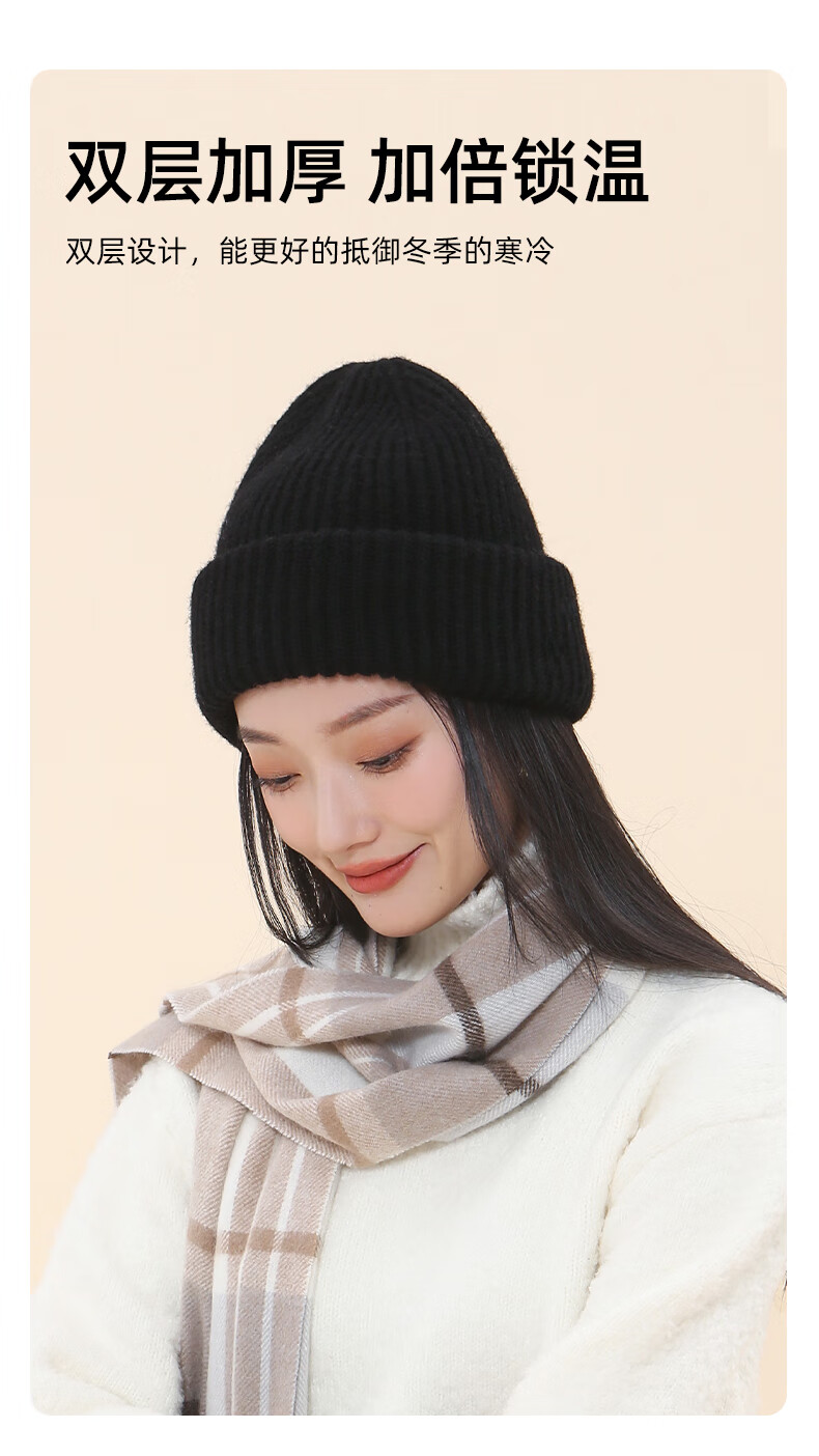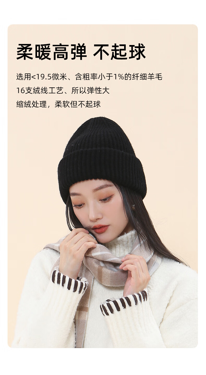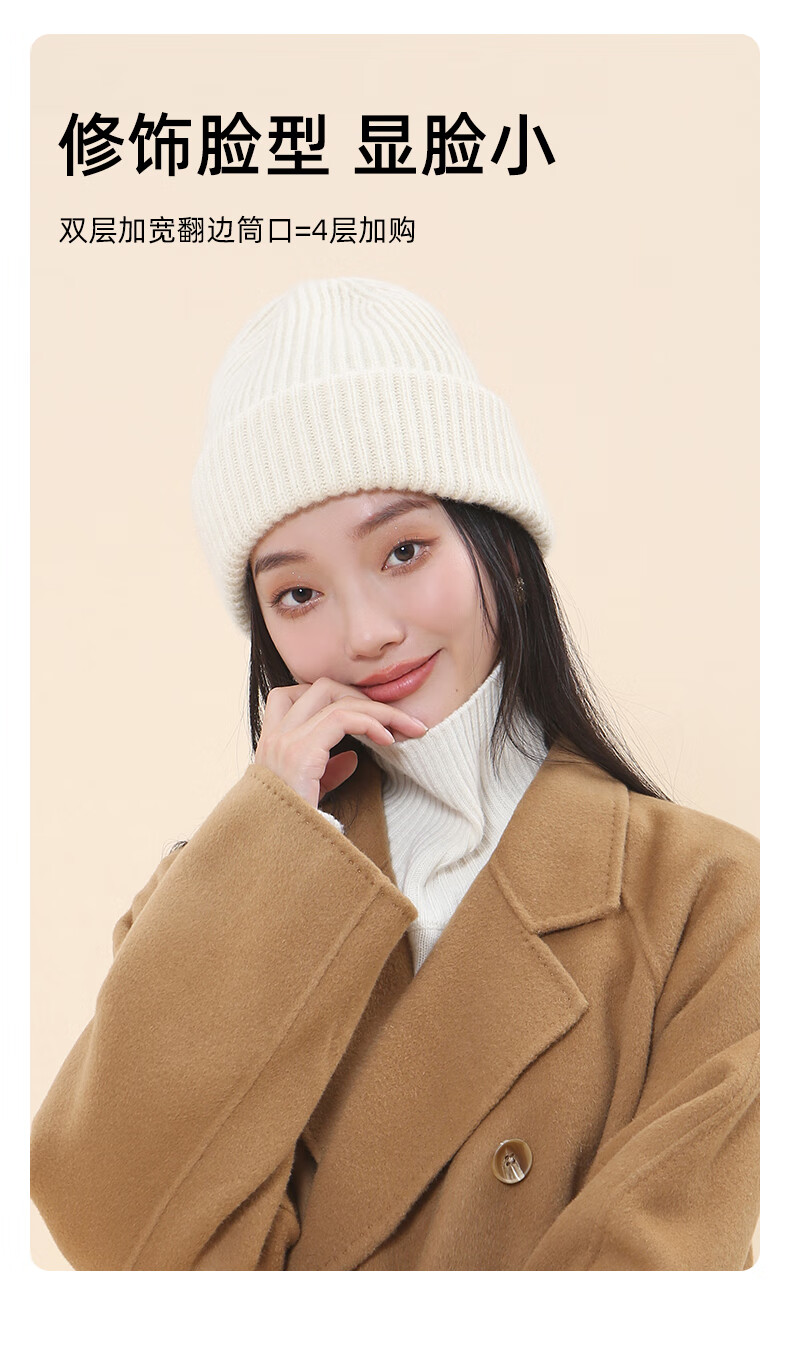 牧尔西纯羊毛帽子女加厚保暖冬季男女款毛线帽舒适百搭款生日礼物 荔枝白