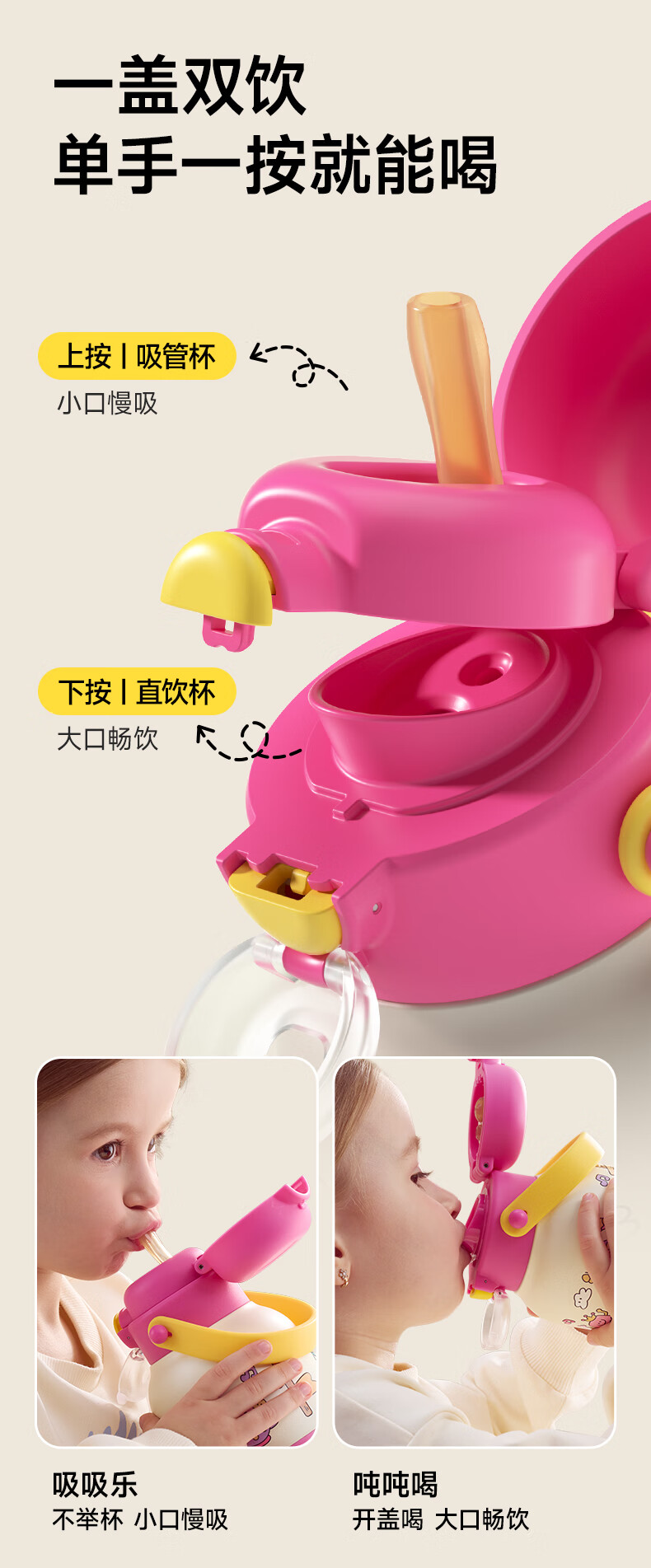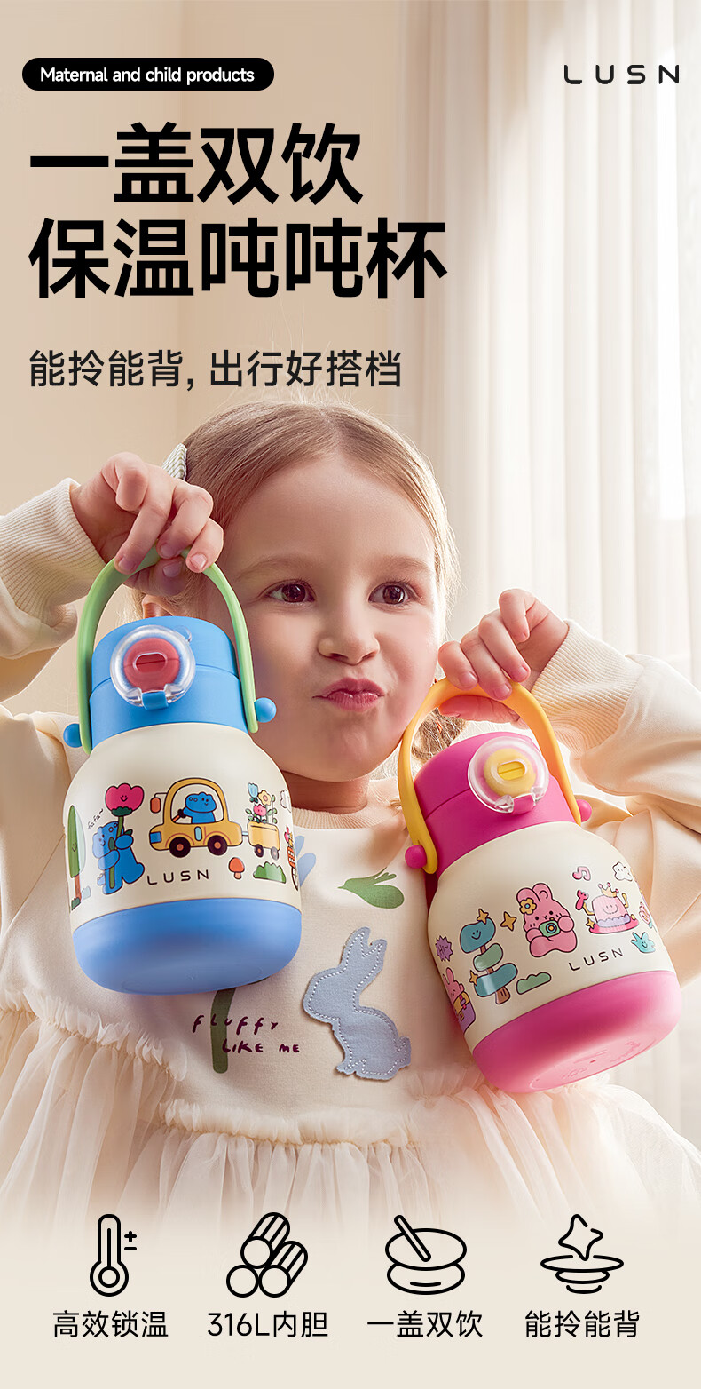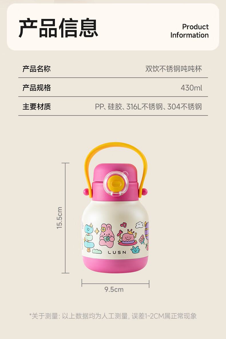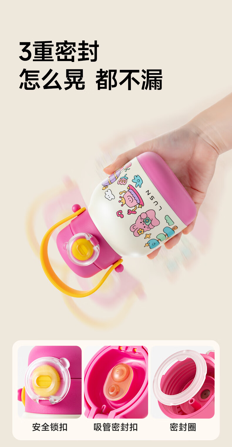 如山吨吨杯儿童保温杯吸管杯宝宝喝水杯学饮杯316L幼儿园专用水壶 【三合一保温杯】-熊猫乐队 500ml