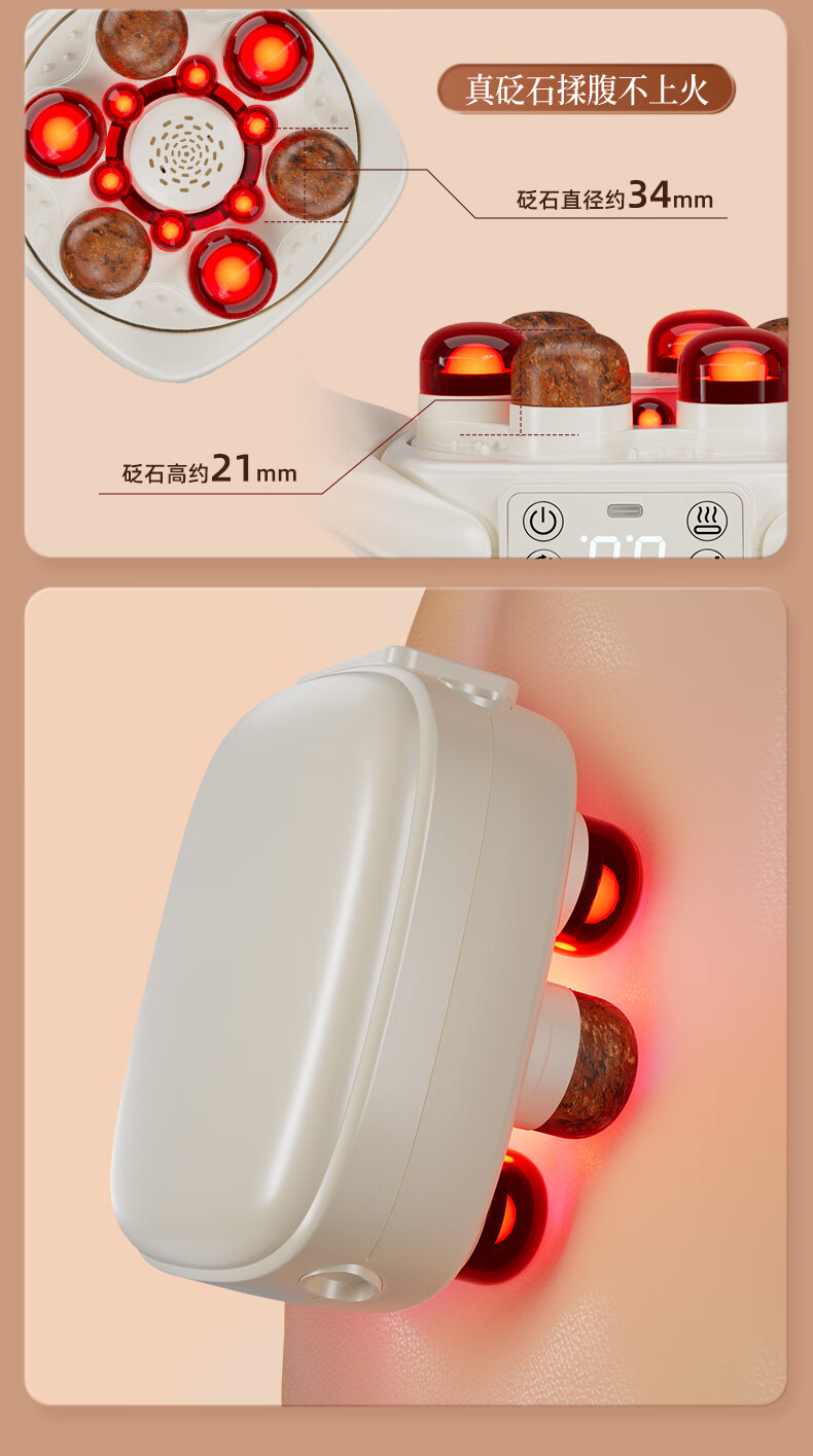 乐尔康(Le er kang)天然砭石揉腹仪升级调节揉捏推拿肚子热敷理疗按摩揉腹仪暖宫带姨妈神器送女友节日礼物 旗舰款-大砭石按摩头+无烟艾灸+盘面调节+太极揉捏