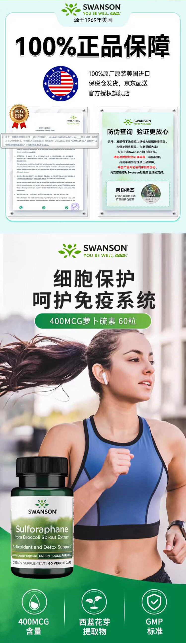 斯旺森(SWANSON)西蓝花萝卜硫素提取物胶囊 强化免疫调节肺部氧化族群健康 60粒/瓶