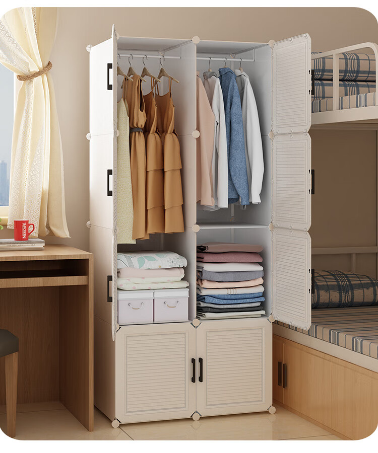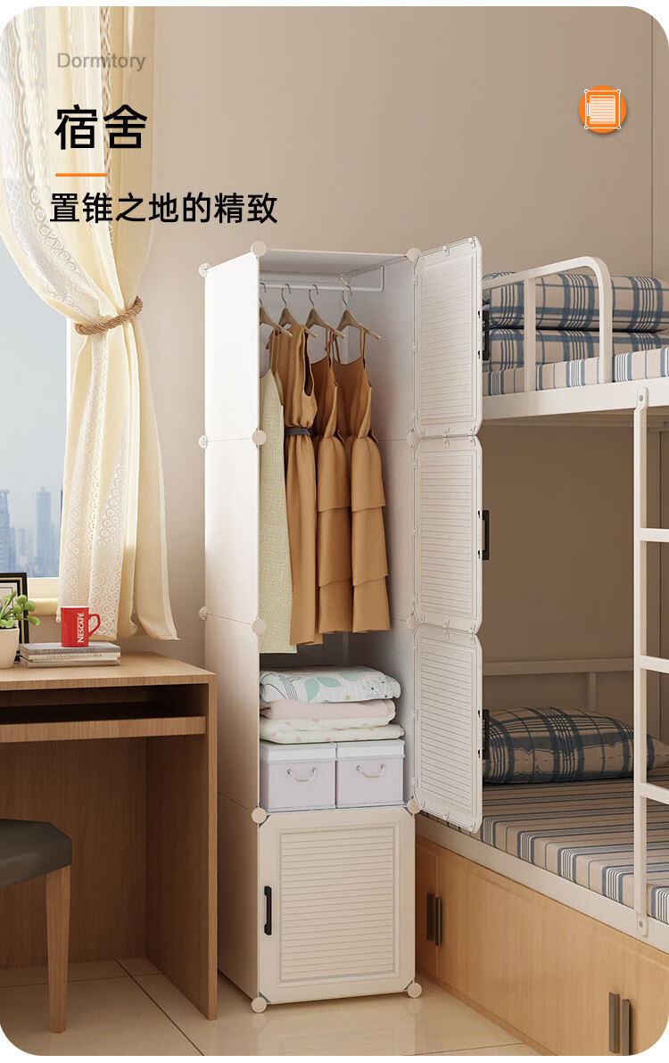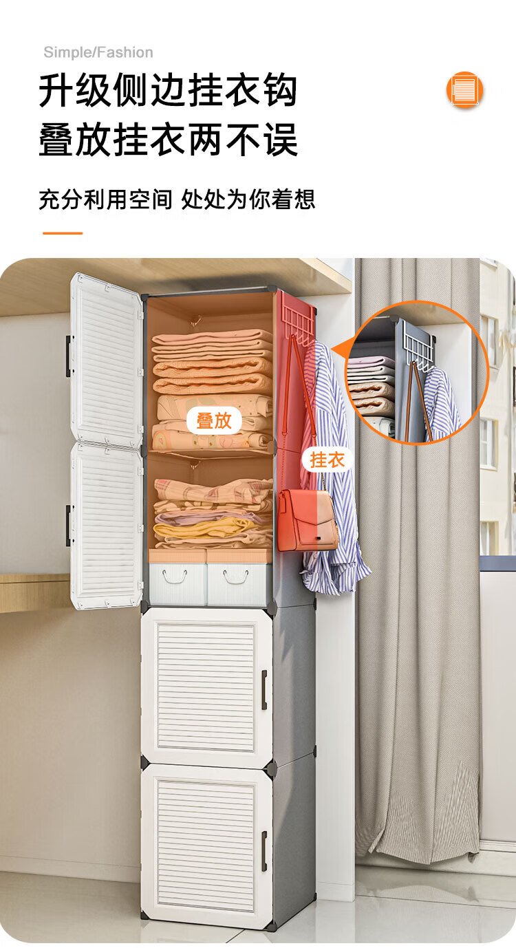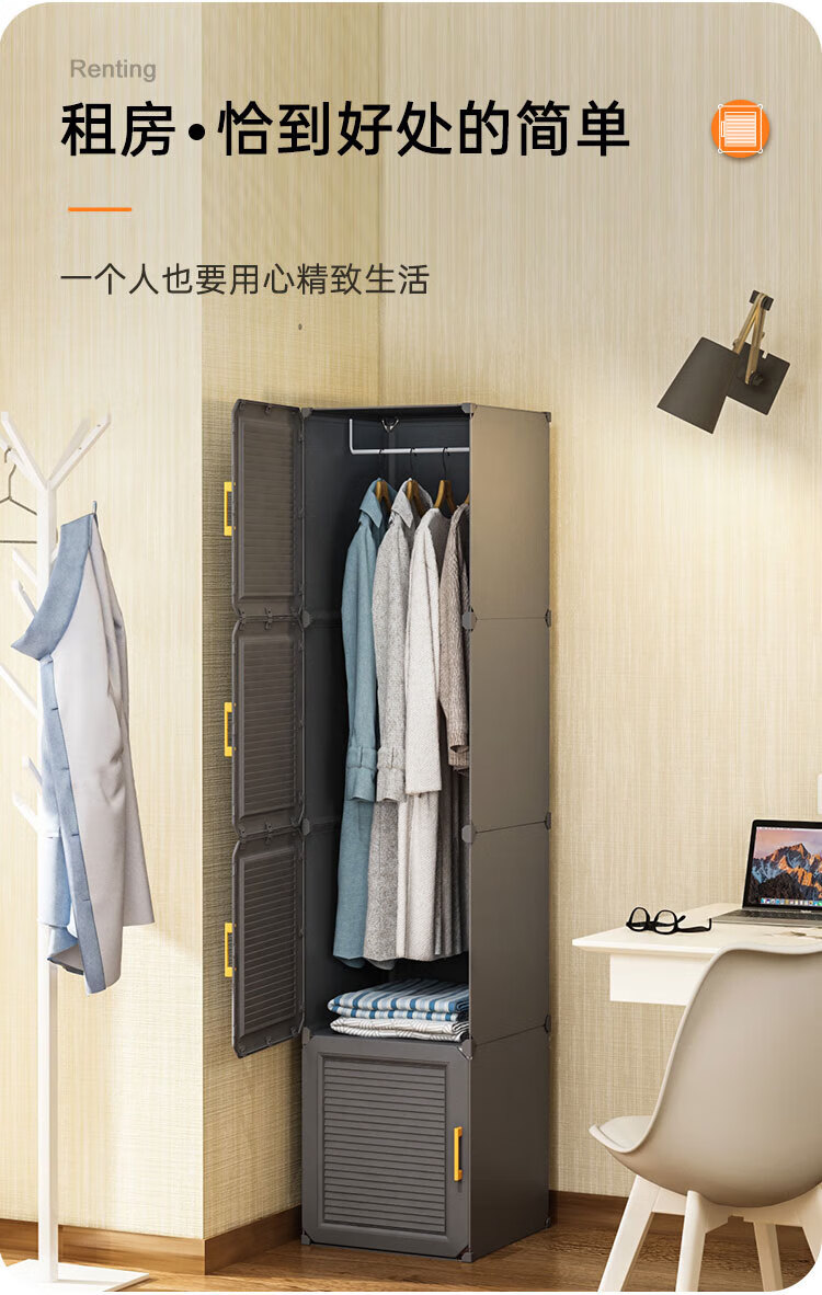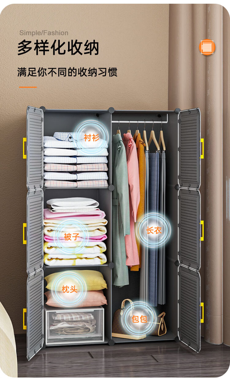 蔻丝 简易衣柜出租房小衣柜家用卧室组装储物柜子 A款【1挂衣区+1置物区】白