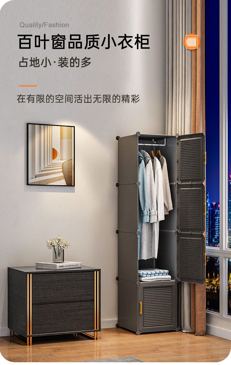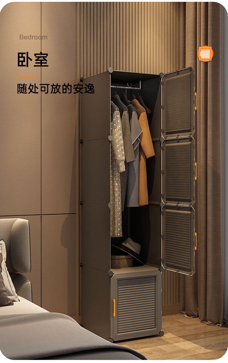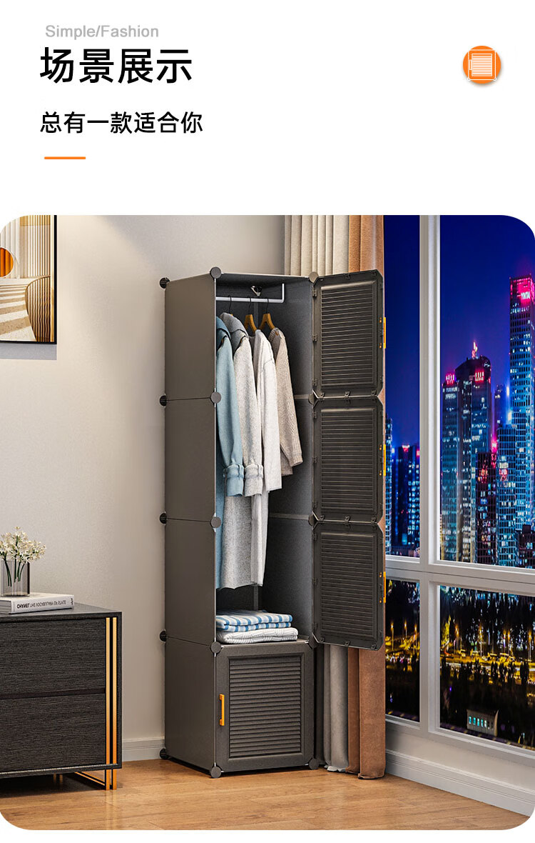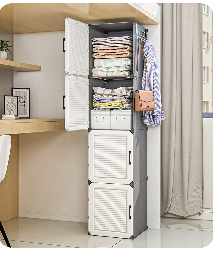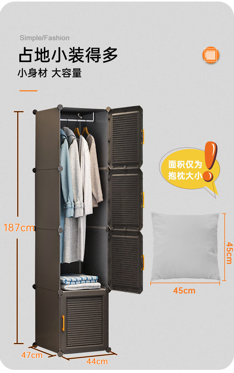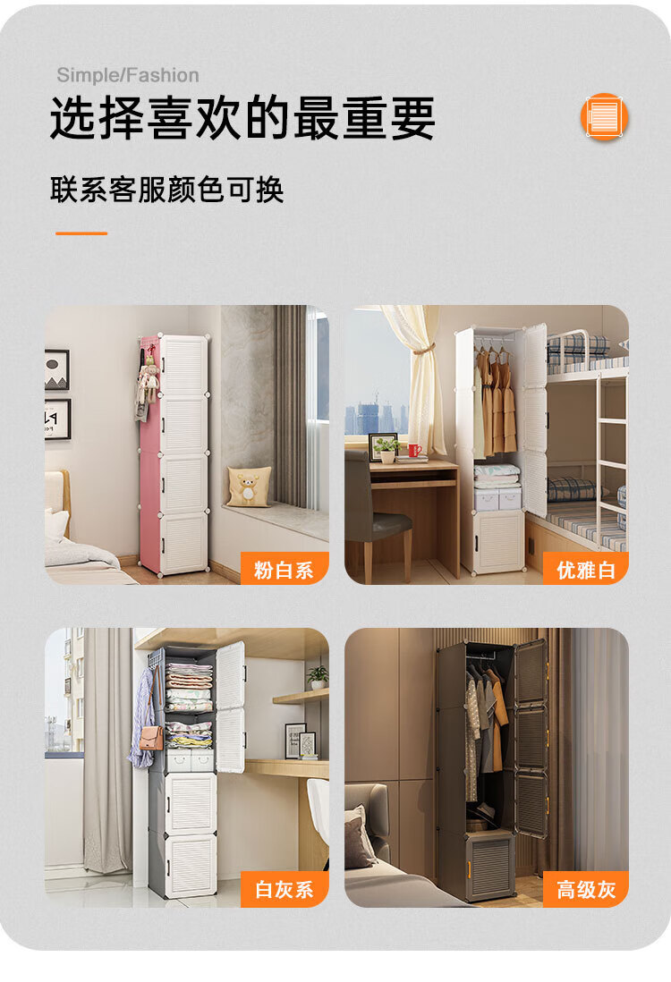 蔻丝 简易衣柜出租房小衣柜家用卧室组装储物柜子 A款【1挂衣区+1置物区】白