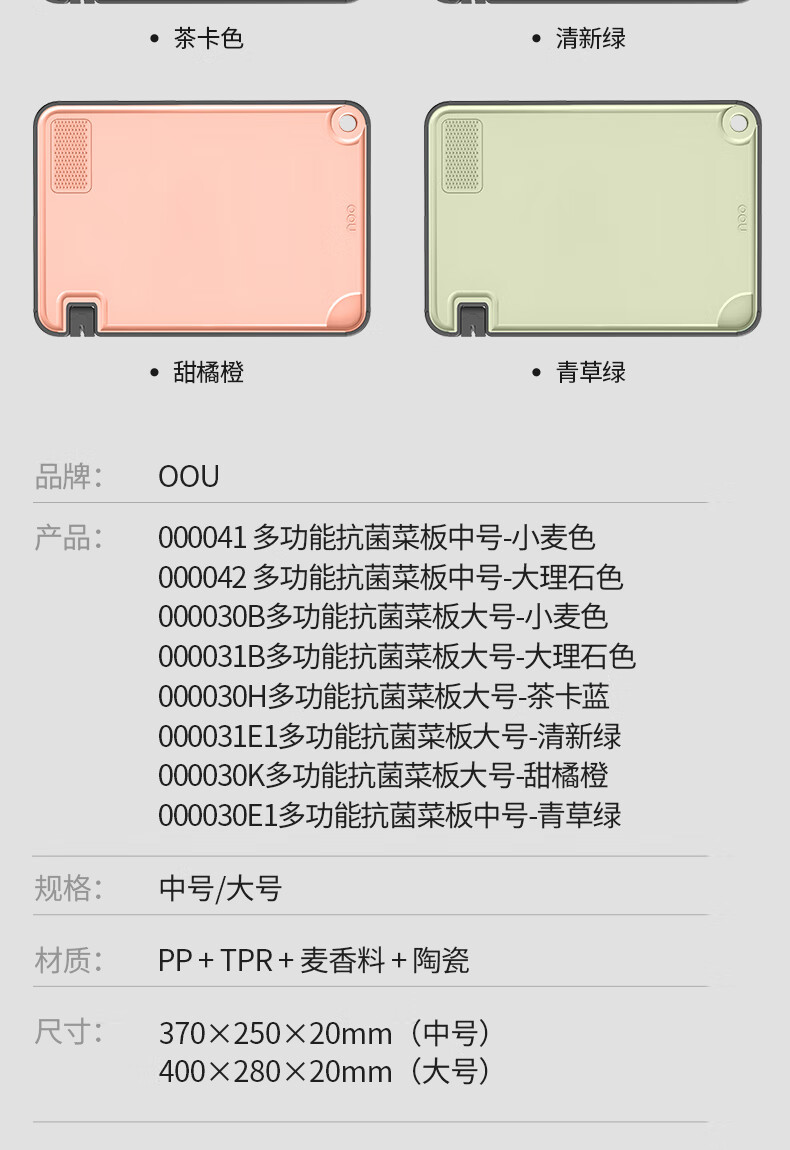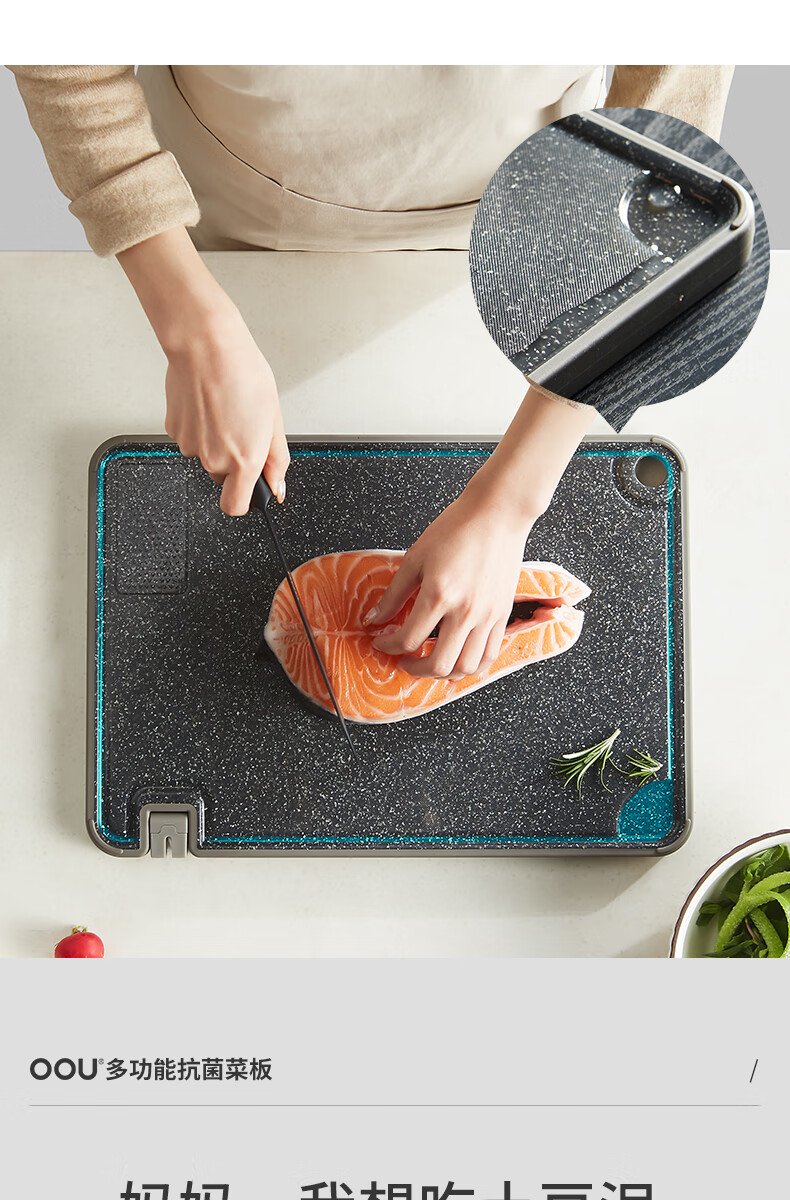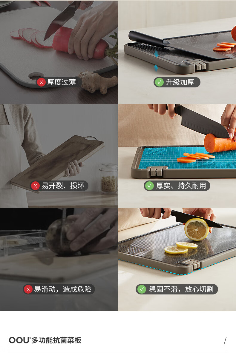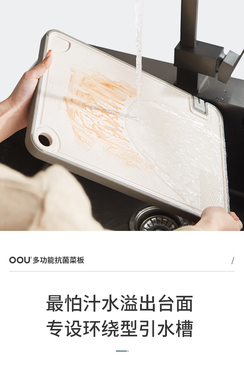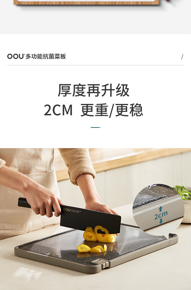 OOU菜板多功能抗菌防霉砧板 厨房案板家用宝宝婴儿辅食切菜板 小麦色|多功能抗菌防霉 中号
