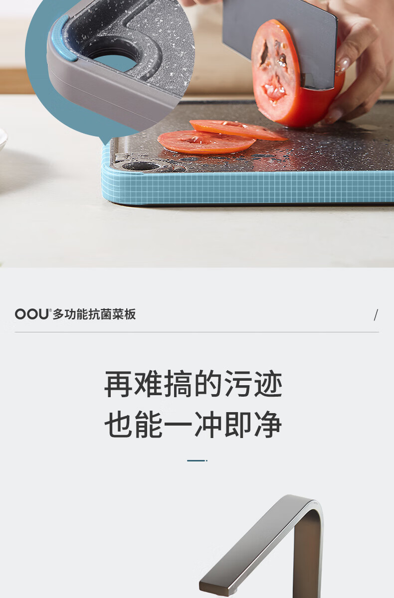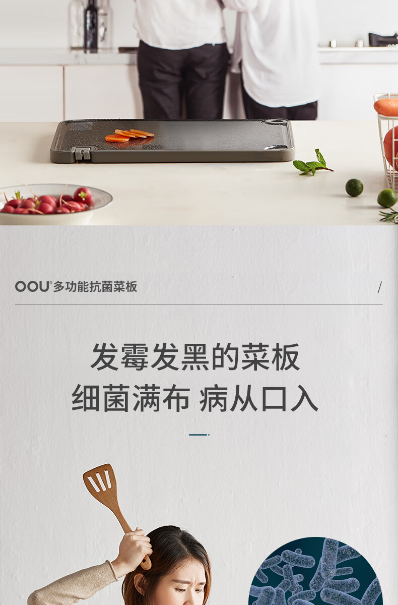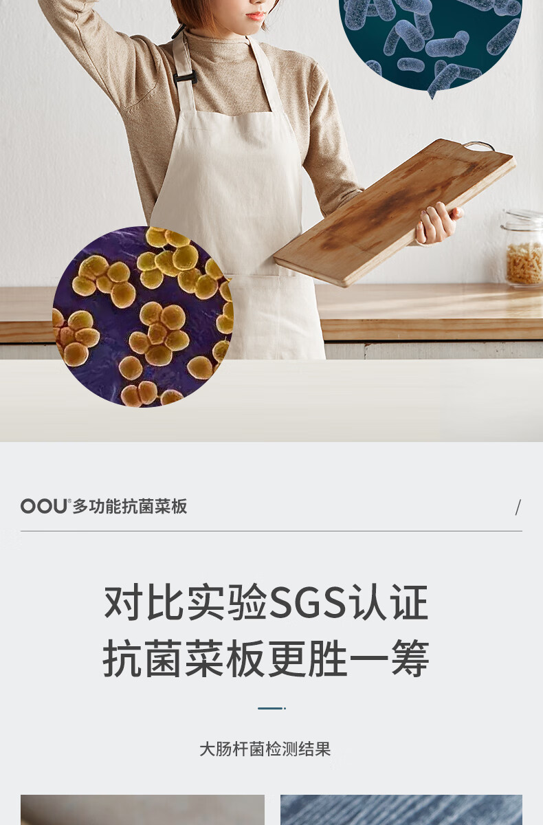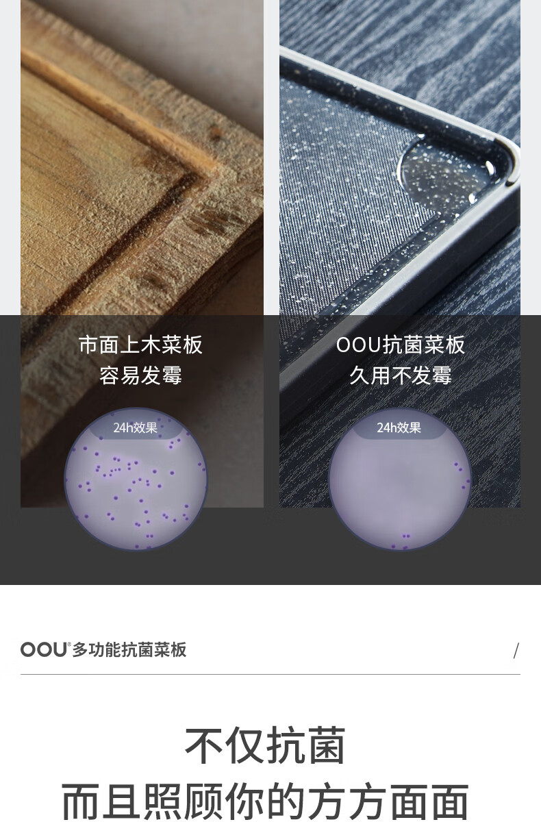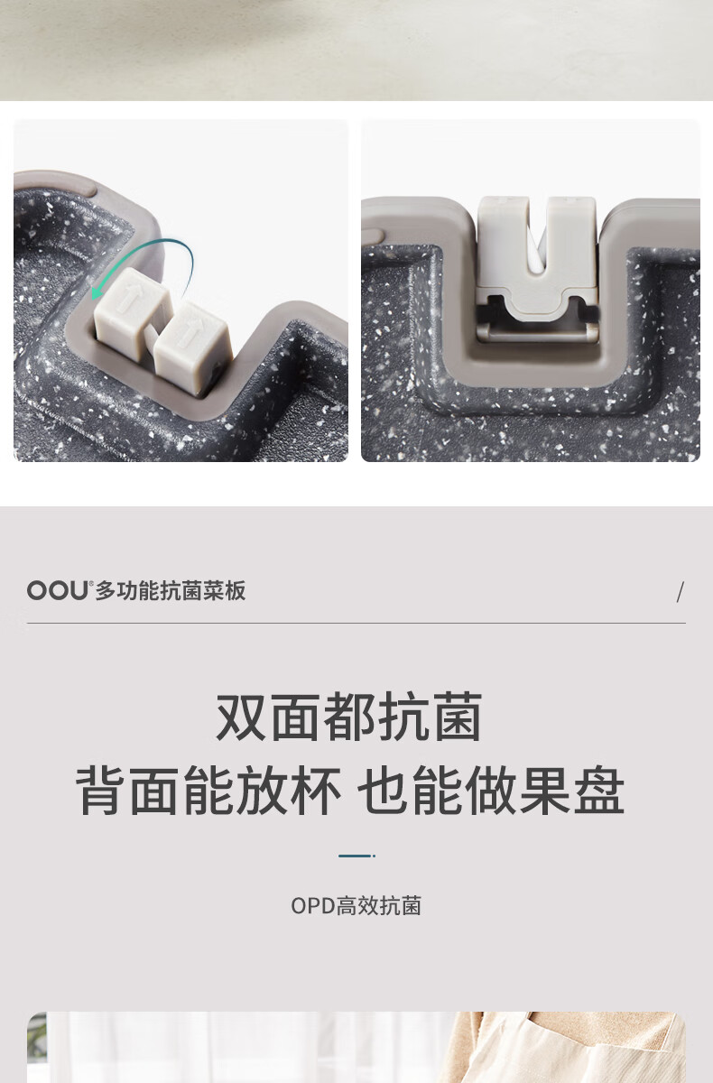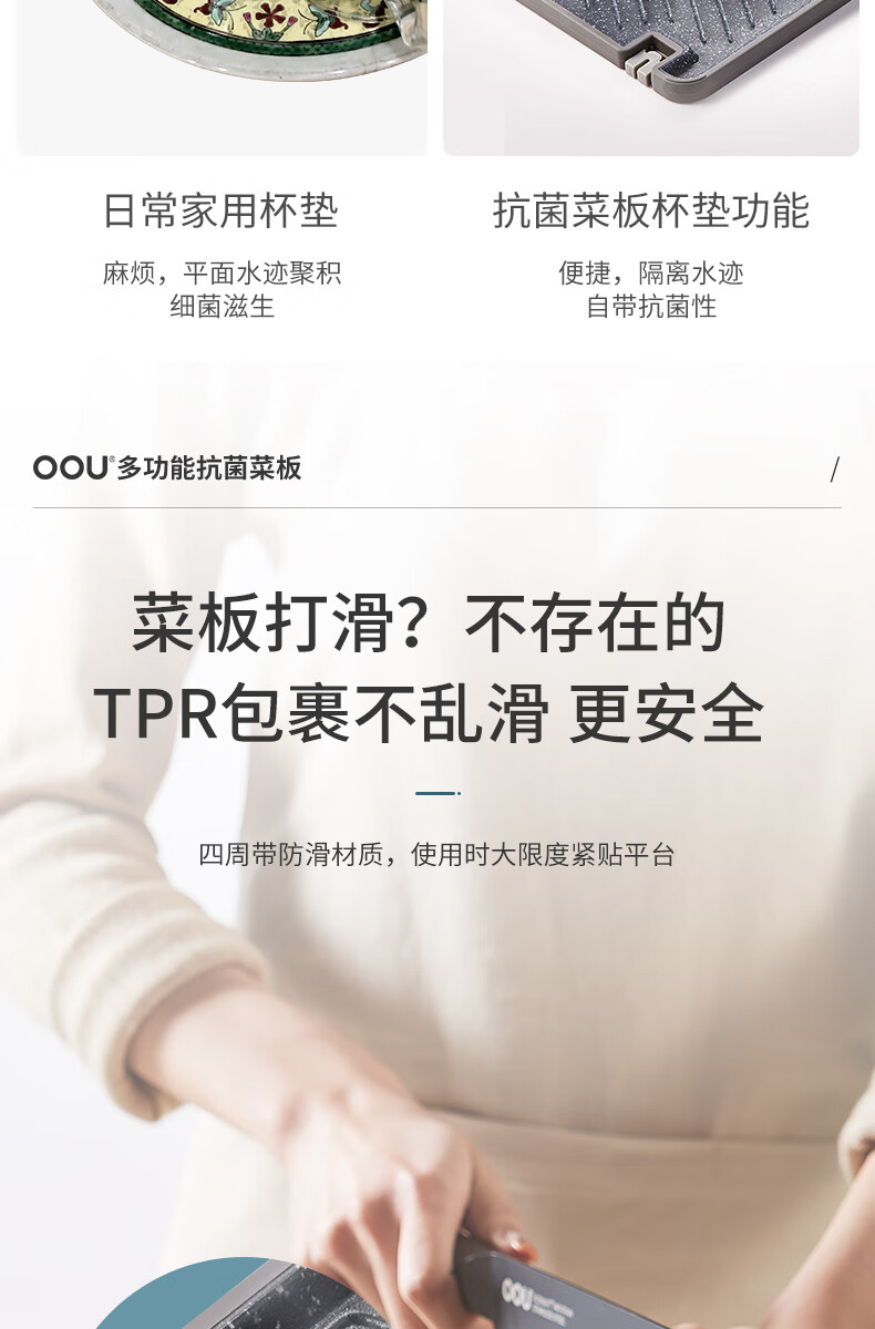 OOU菜板多功能抗菌防霉砧板 厨房案板家用宝宝婴儿辅食切菜板 小麦色|多功能抗菌防霉 中号