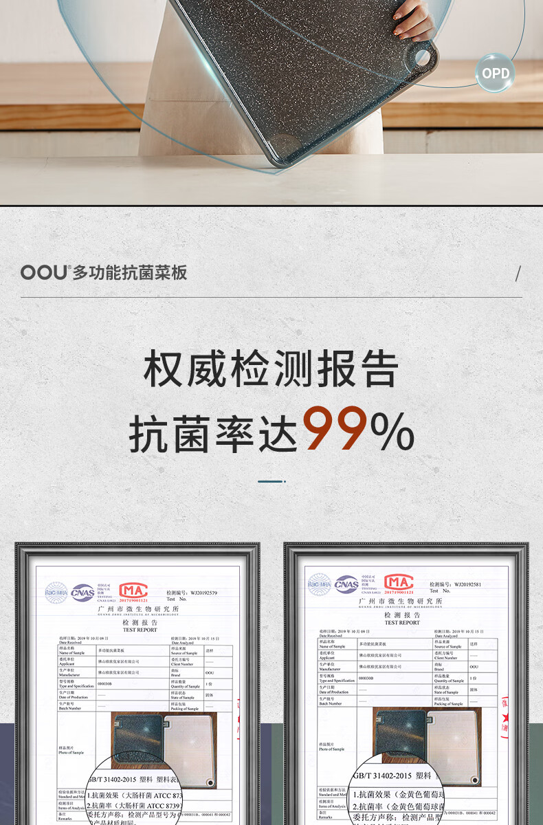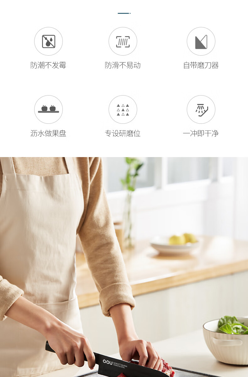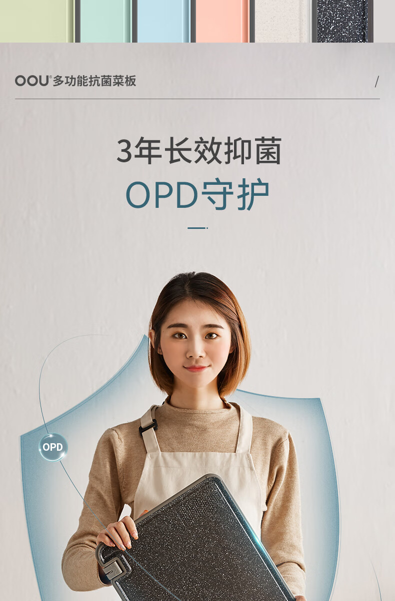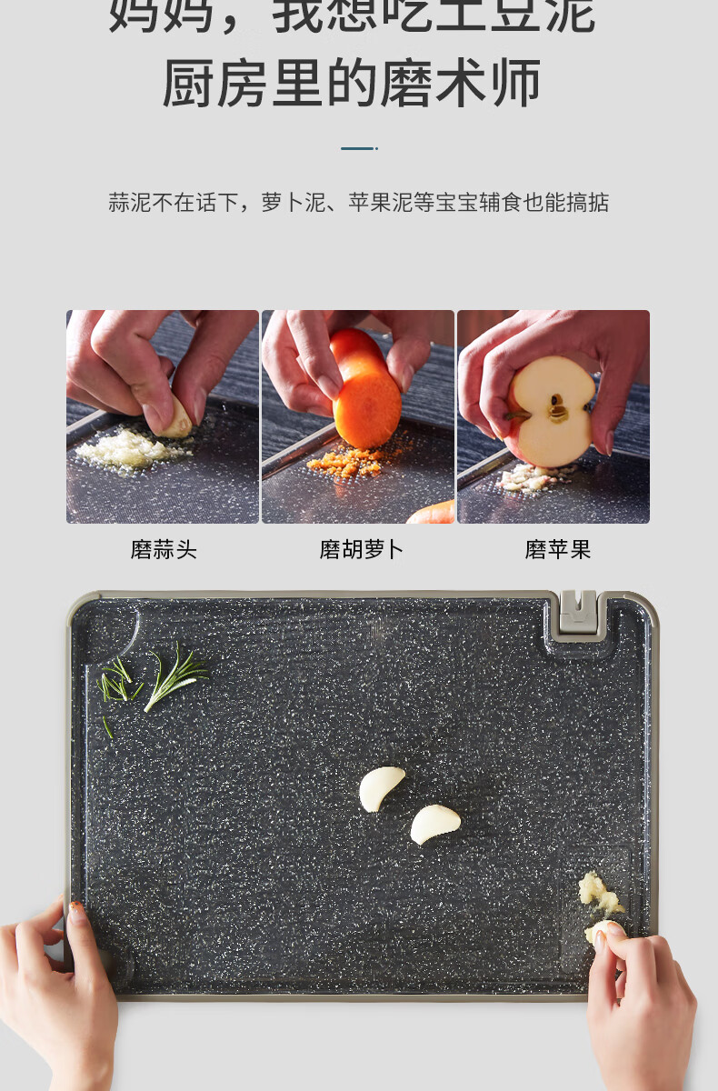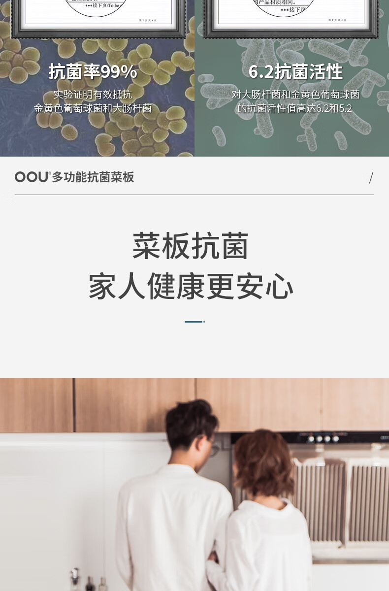 OOU菜板多功能抗菌防霉砧板 厨房案板家用宝宝婴儿辅食切菜板 小麦色|多功能抗菌防霉 中号