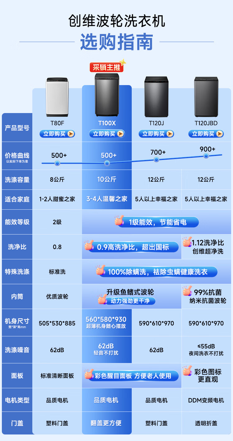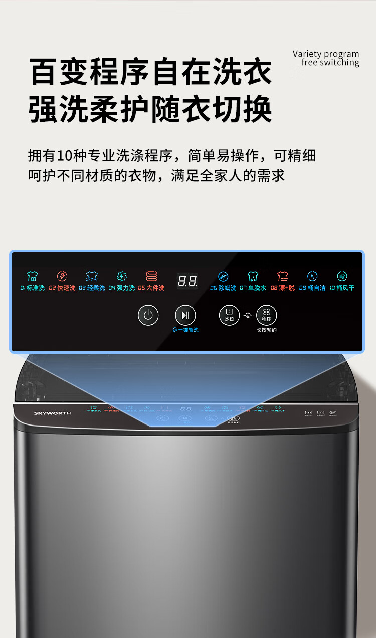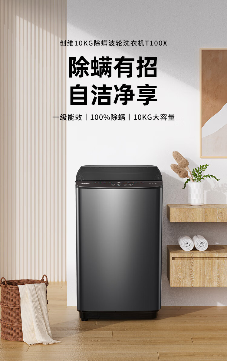 创维波轮10公斤洗衣机全自动京东自营 宿舍租房 一级能效省水电 以旧换新 健康除螨 国家补贴T100X