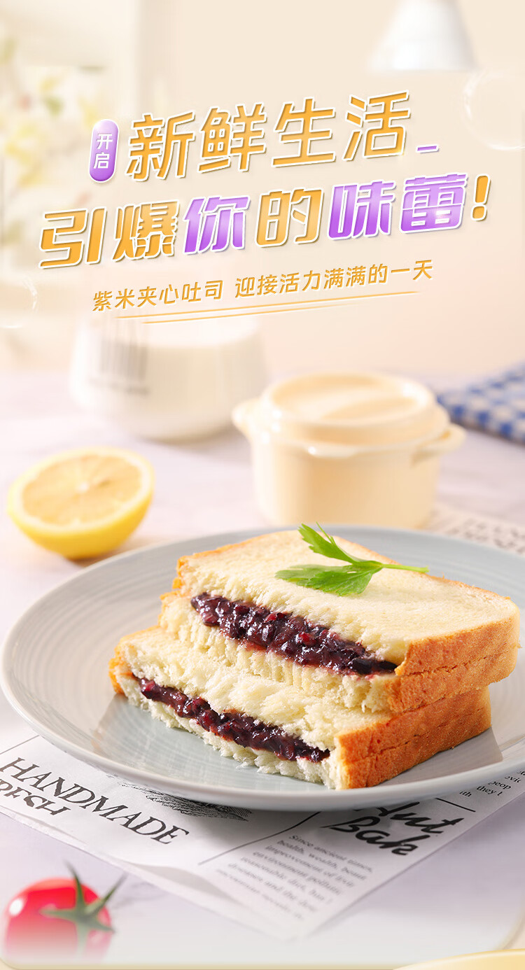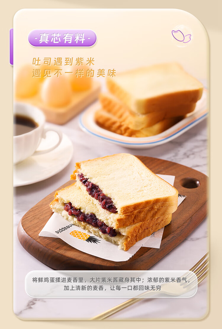 泓一 紫米夹心面包1000g 早餐面包夹心吐司休闲零食代餐营养饱腹