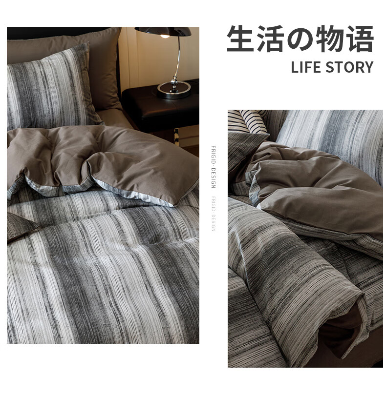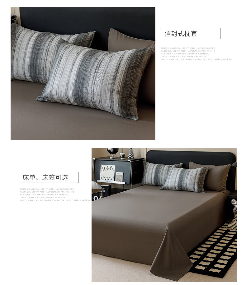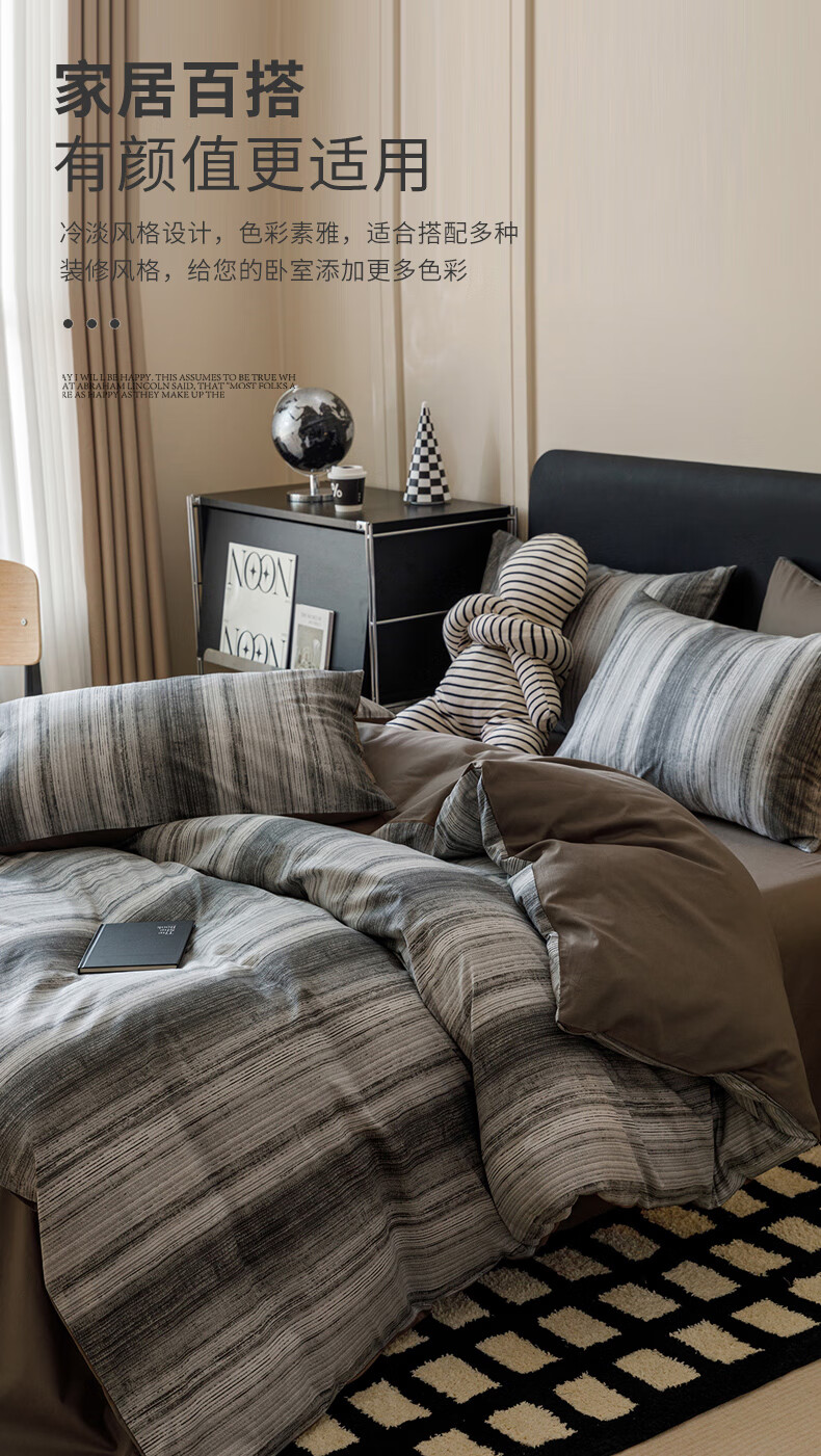 一默四件套被套床单枕套简约拼色水洗棉居家宿舍单人亲肤透气床品套装 卡其+抹茶绿 床单款 (被套200*230cm)
