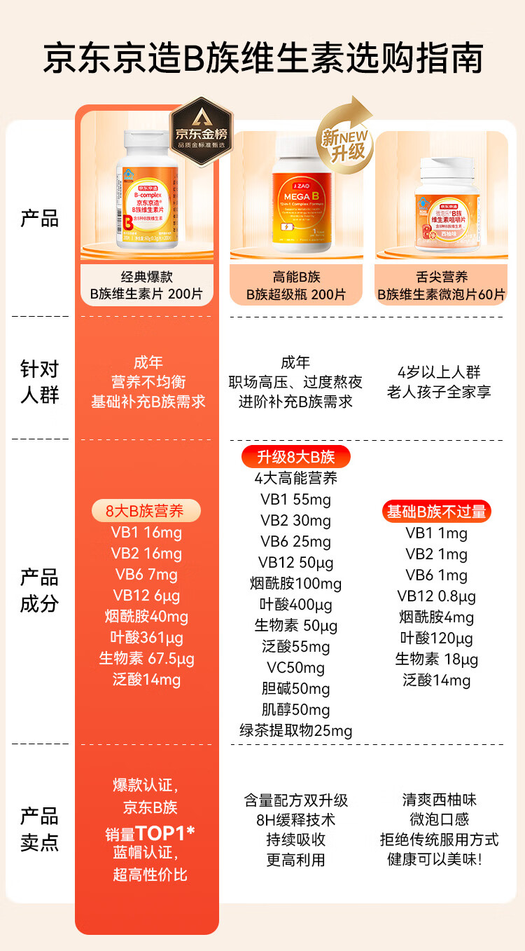 京东京造 B族维生素片200片 复合维生素b1b2b6b12叶酸烟酰胺生物素泛酸