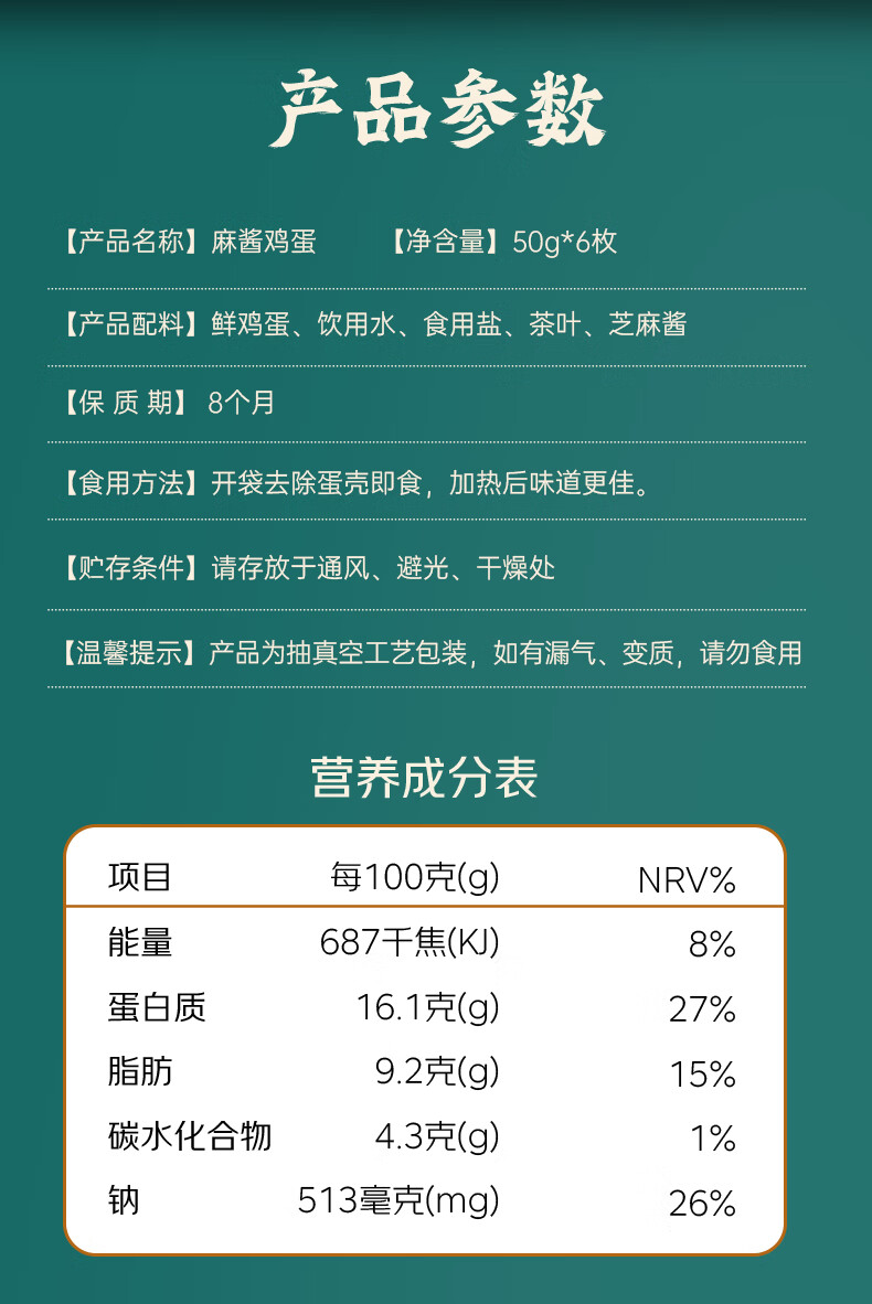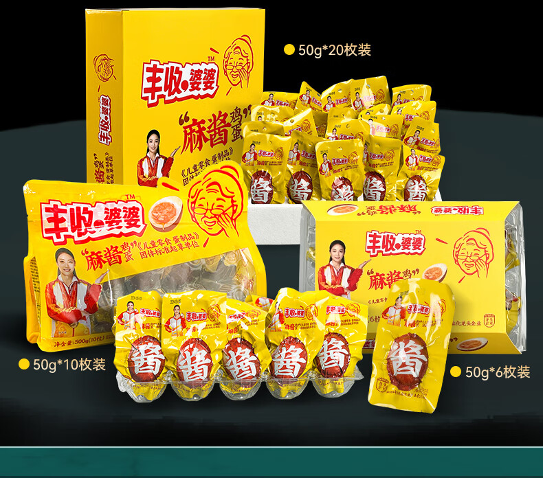 丰收婆婆 麻酱鸡蛋 50g*6枚家庭简装 开袋即食起沙流油下饭菜咸淡适口