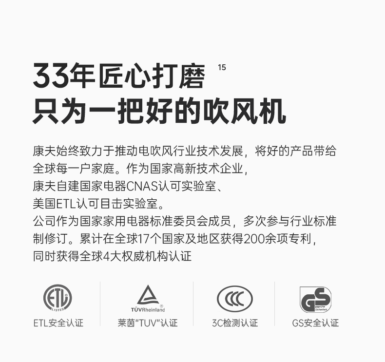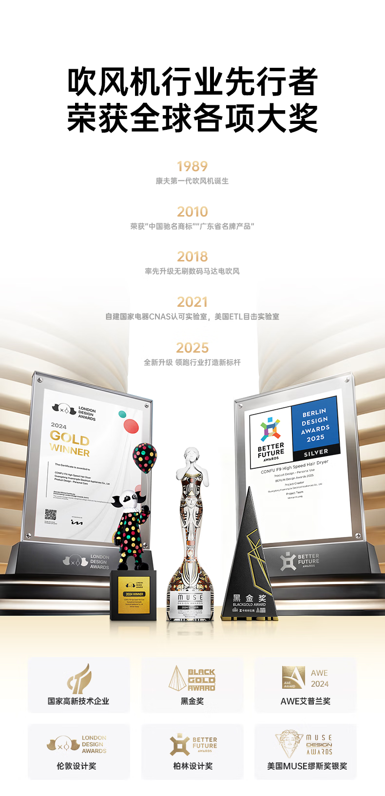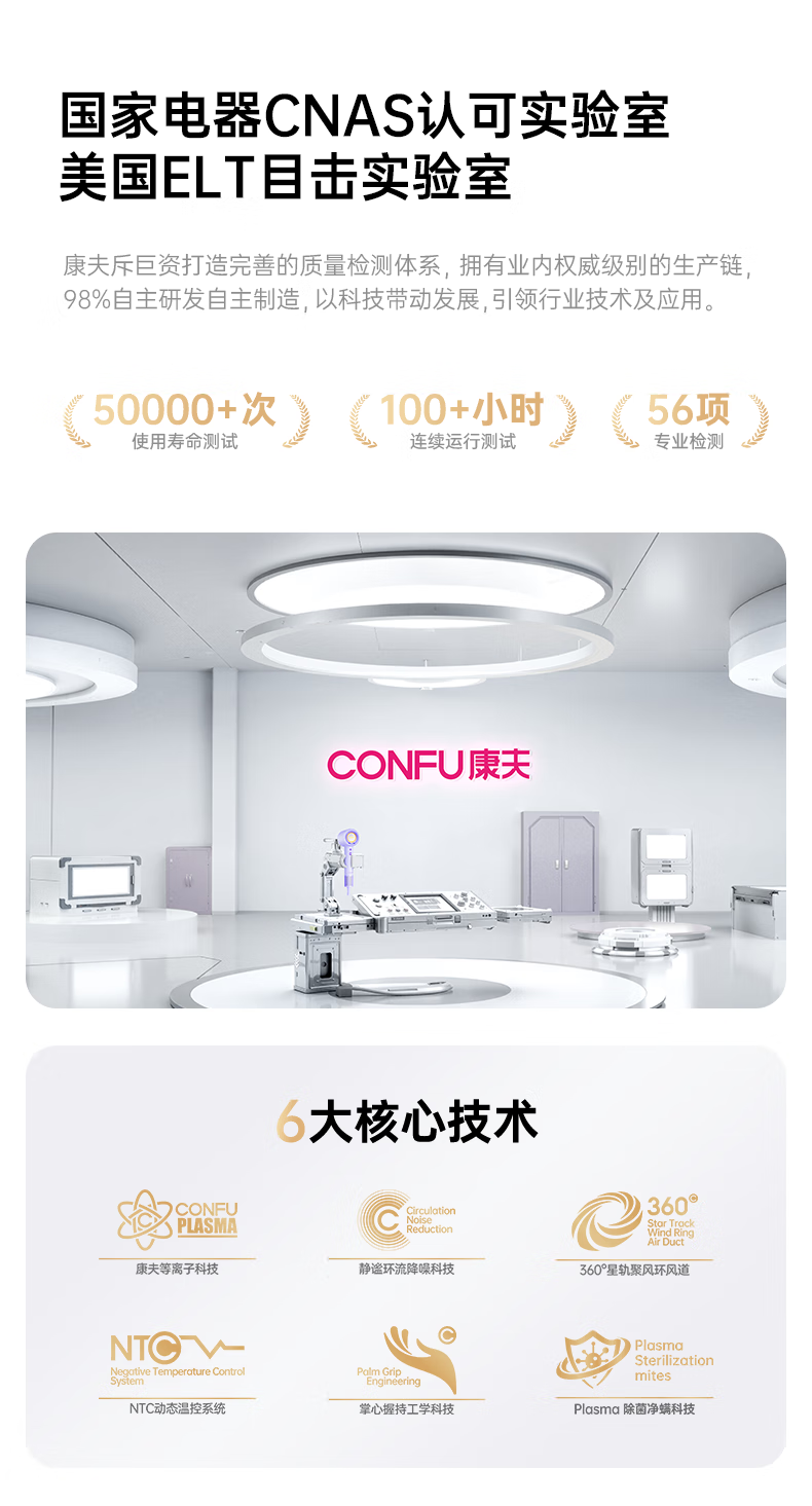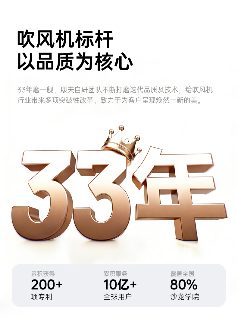 康夫(CONFU)高速护发吹风机中空无叶家用大功率大风力速干等离子电吹风筒生日礼物 新年礼物送女友F9星灰