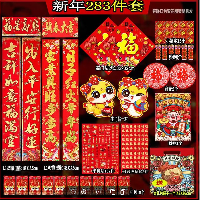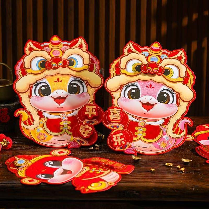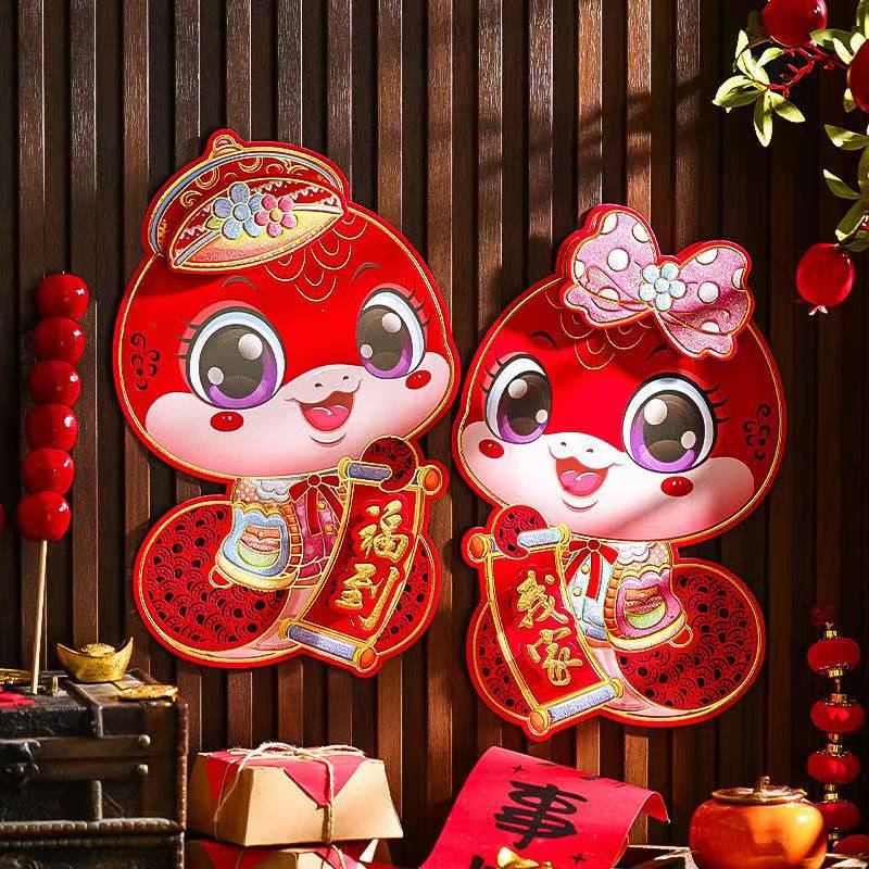 2026马年生肖贴新年春联对联福字窗花红包大礼包283件套年货礼盒大门装饰用品 生肖贴【1对2个专享】24*16cm