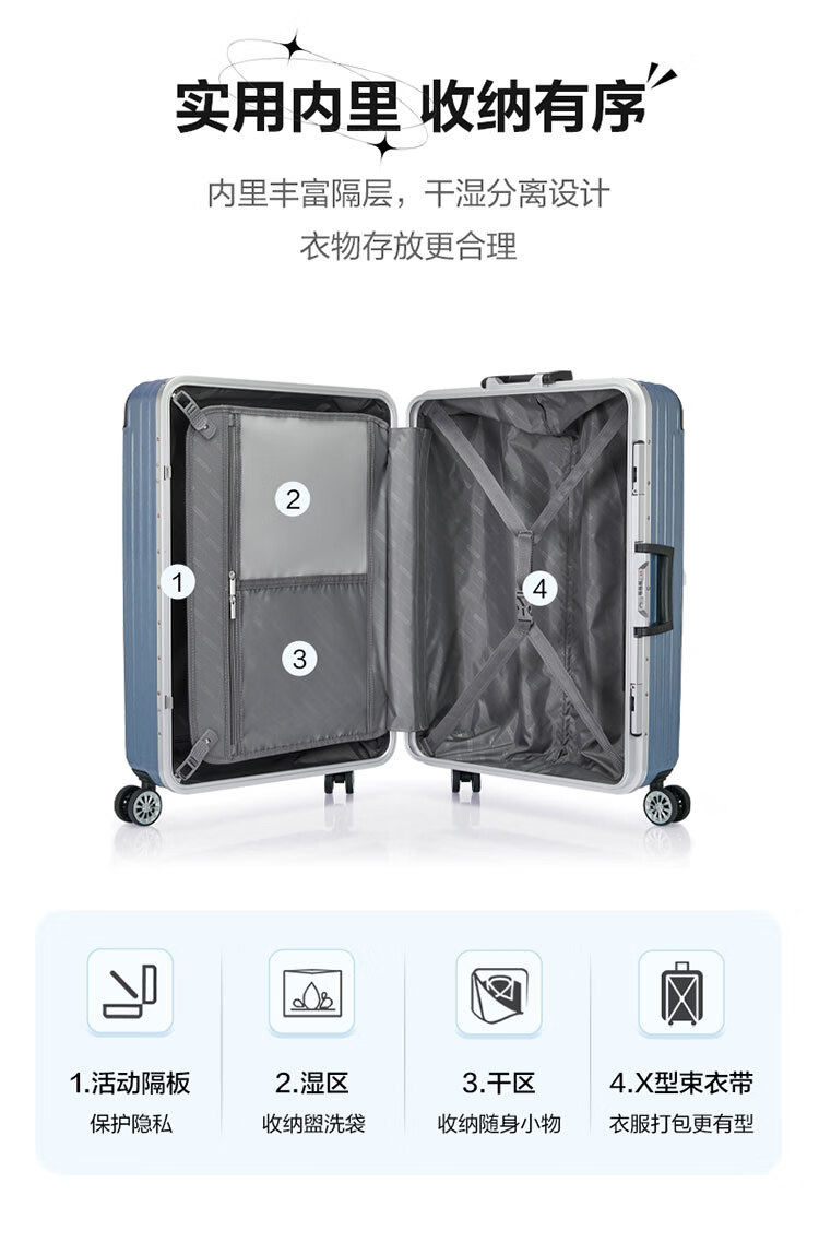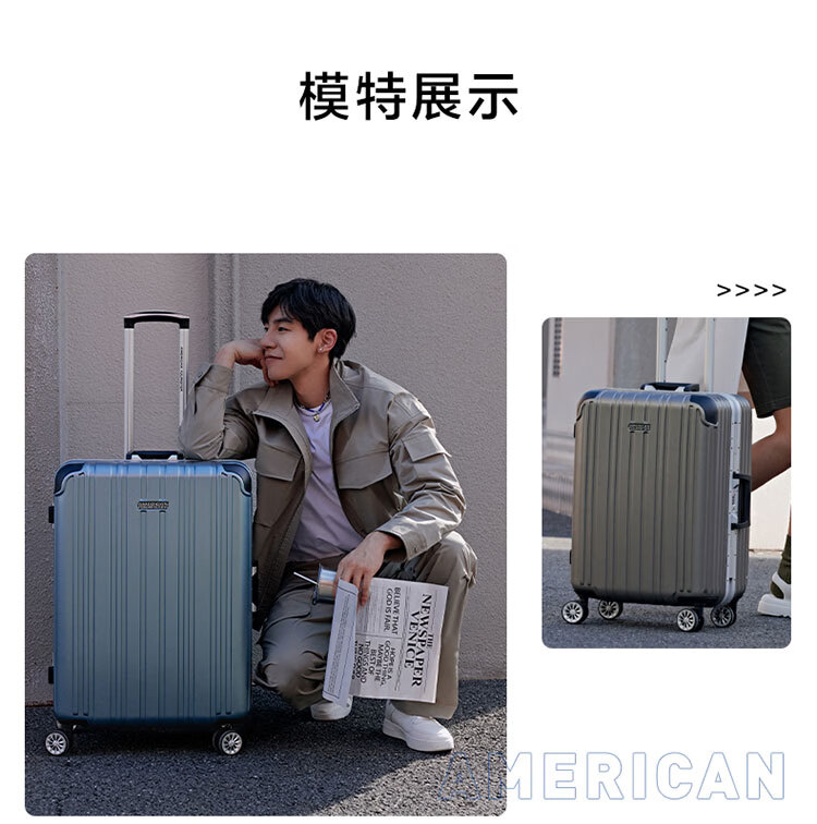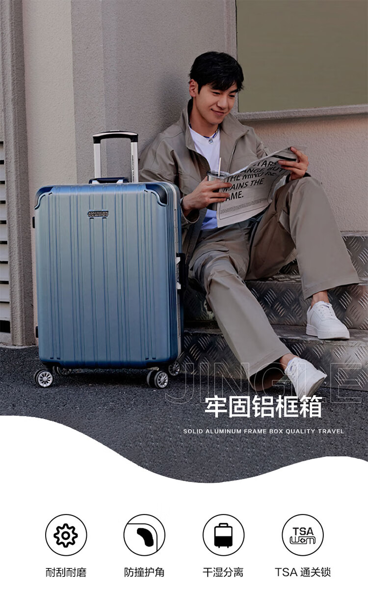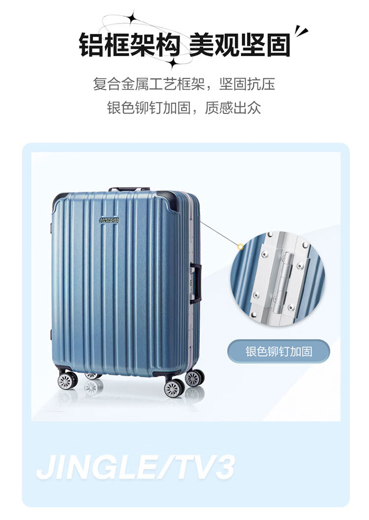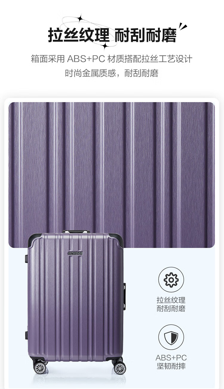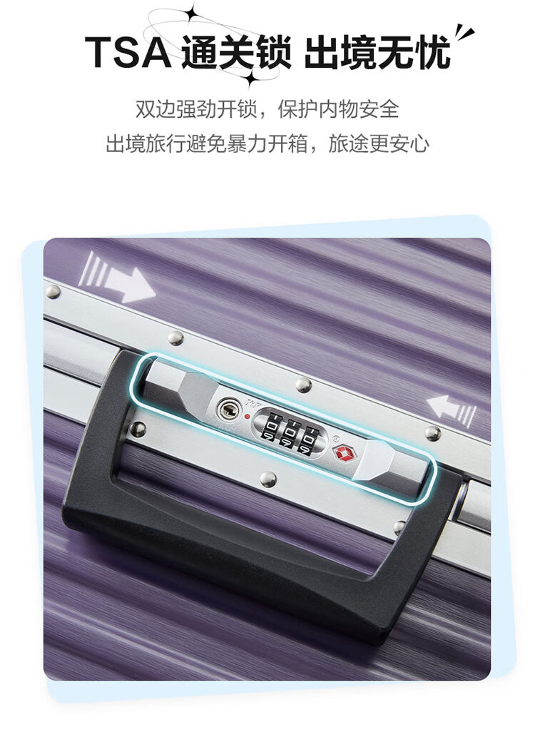 美旅行李箱26英寸时尚铝框拉杆箱超轻万向轮旅行箱深紫色TV3密码箱