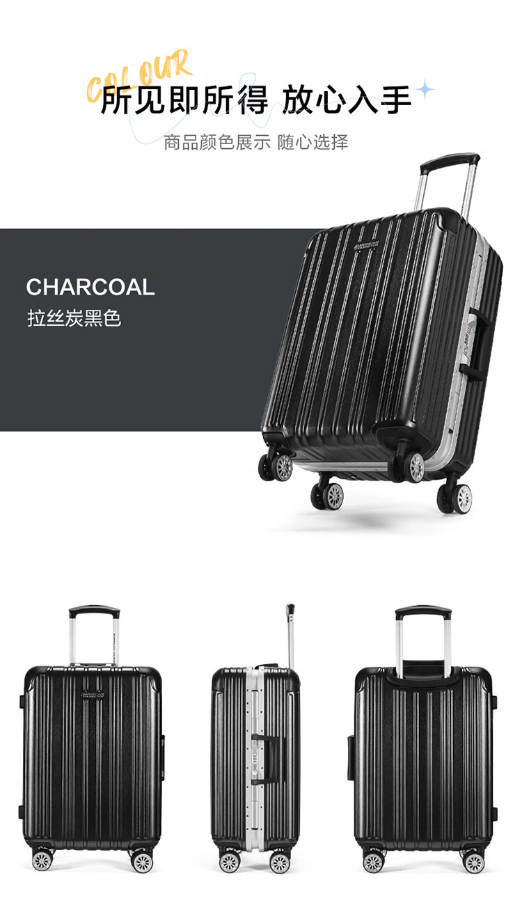 90分行李箱20英寸拉杆箱商务可登机旅行箱密码箱子多瑙河灰色