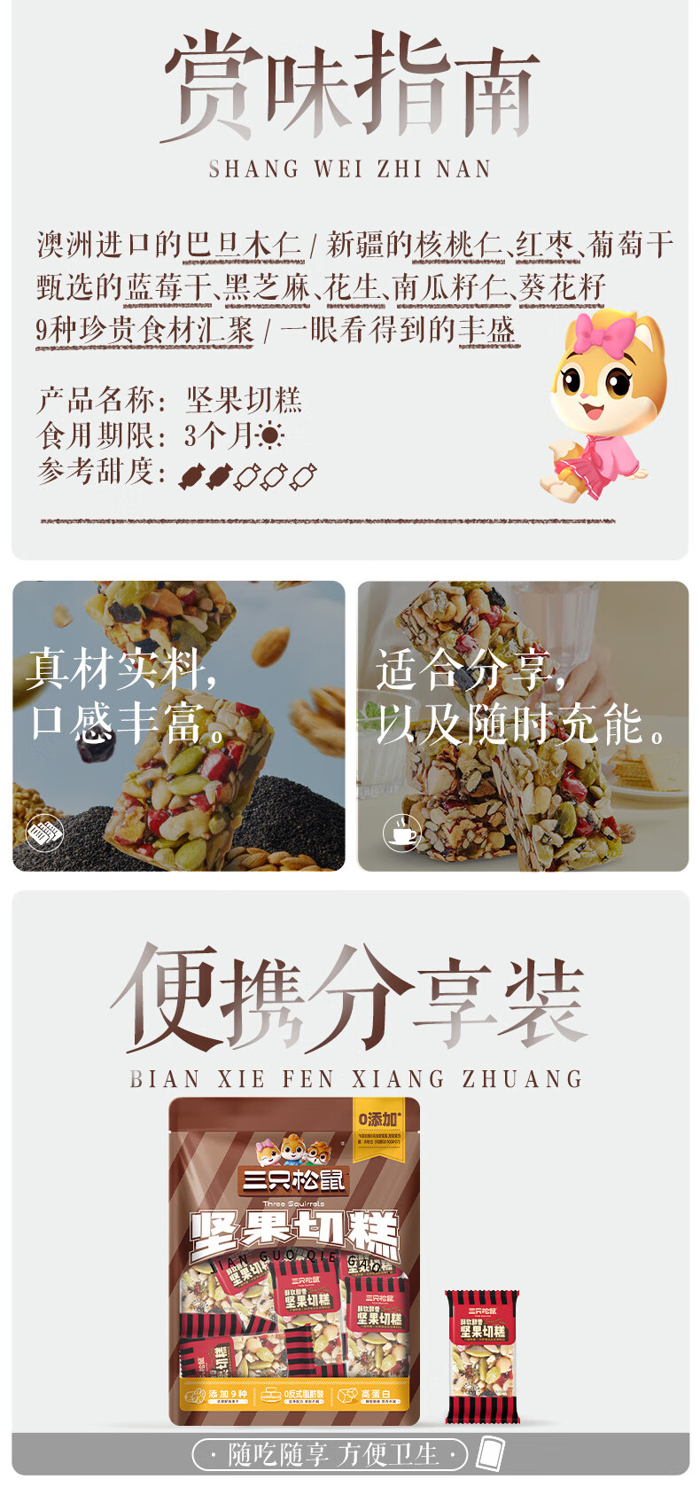 三只松鼠坚果切糕500g 新疆风味饼干蛋糕中式点心休闲零食品办公室早餐