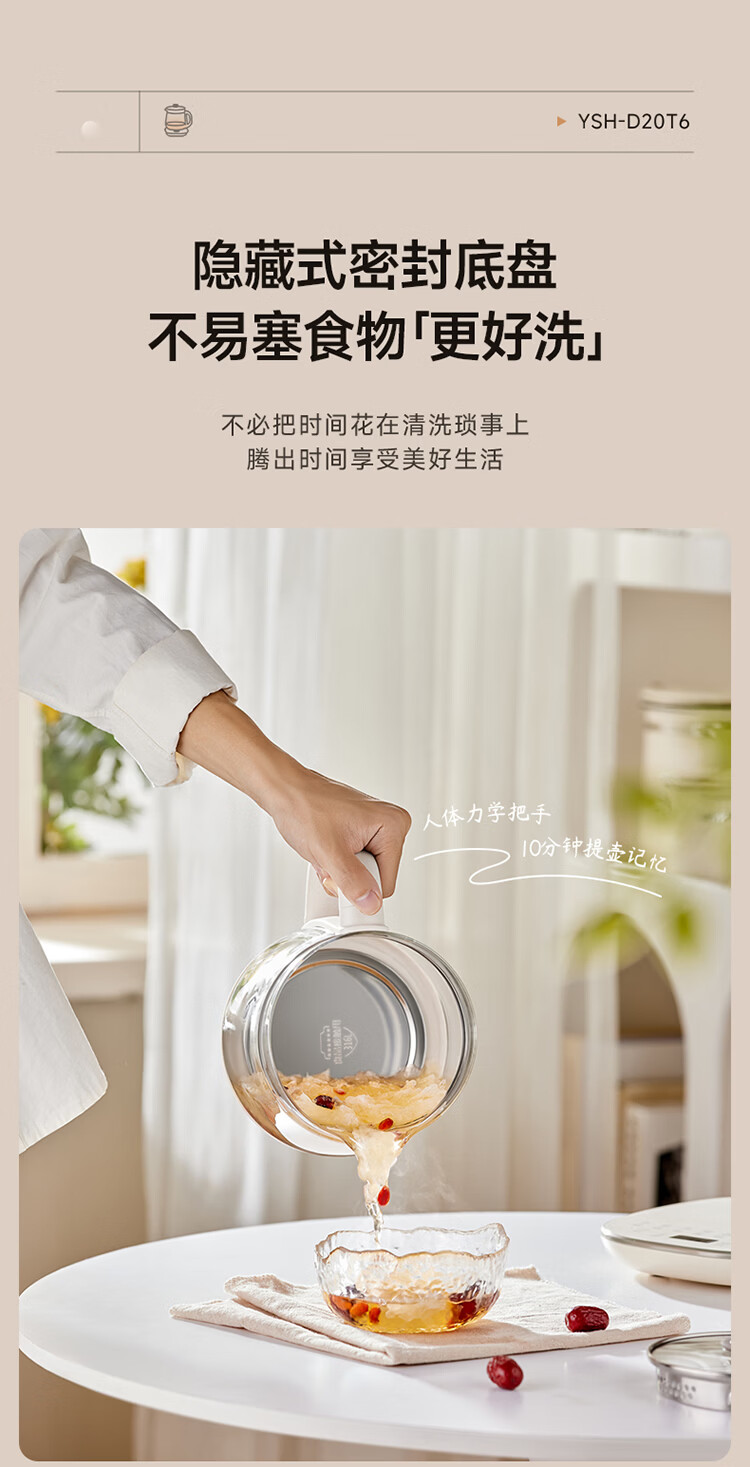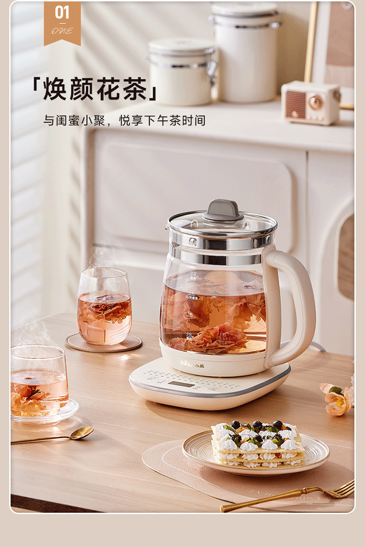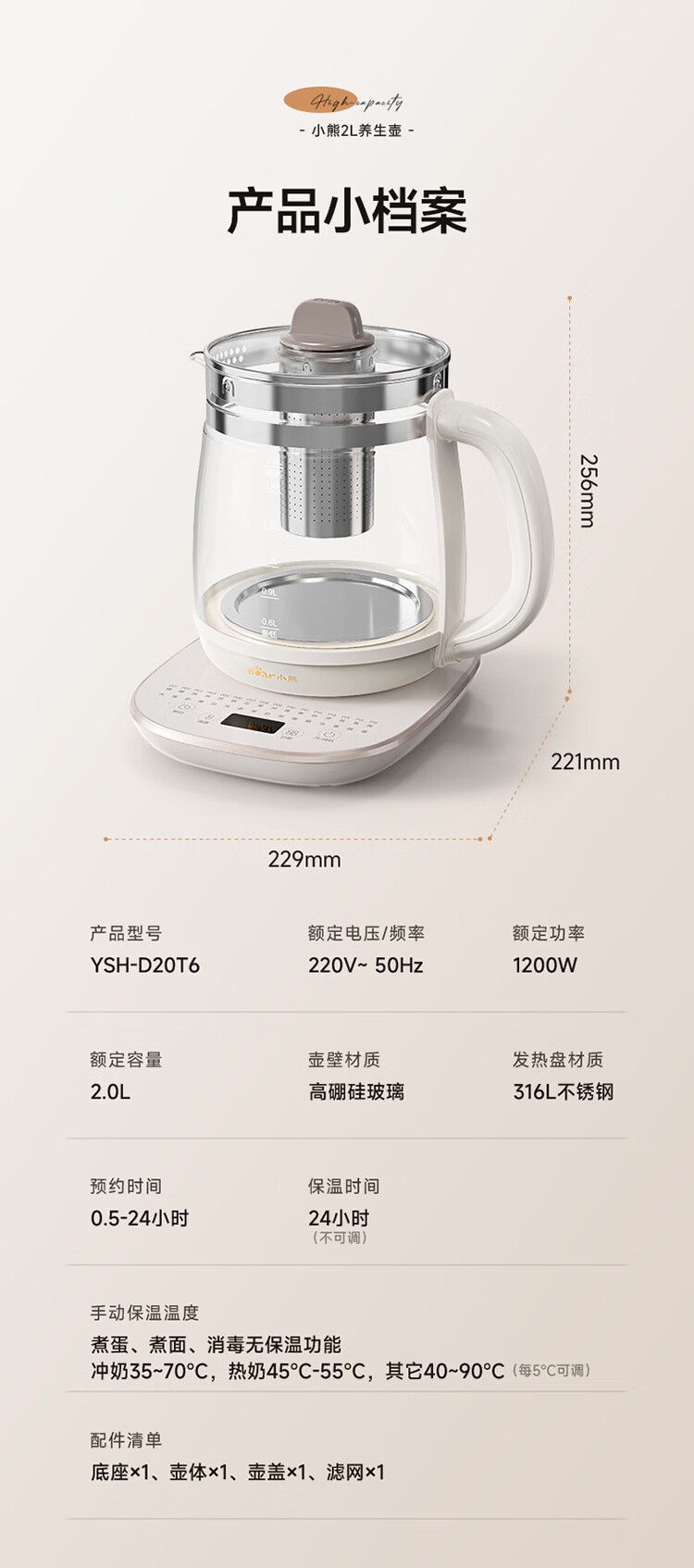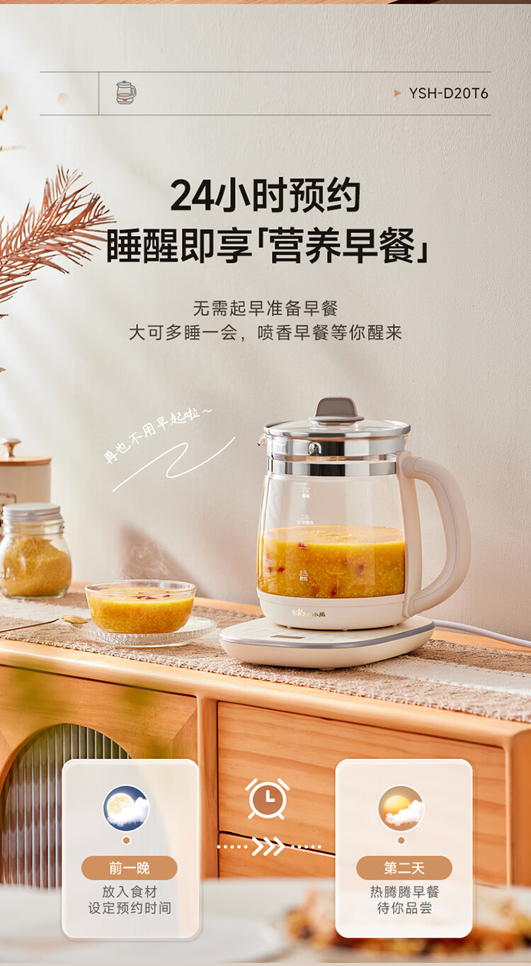 小熊(Bear)养生壶 2L大容量煮茶壶煮茶器 24H恒温花茶壶 炖煮一体烧水壶电热水壶 316L母婴材质 YSH-D20T6