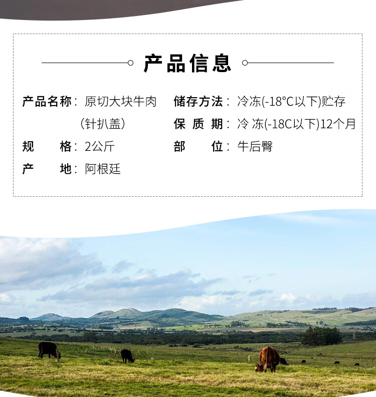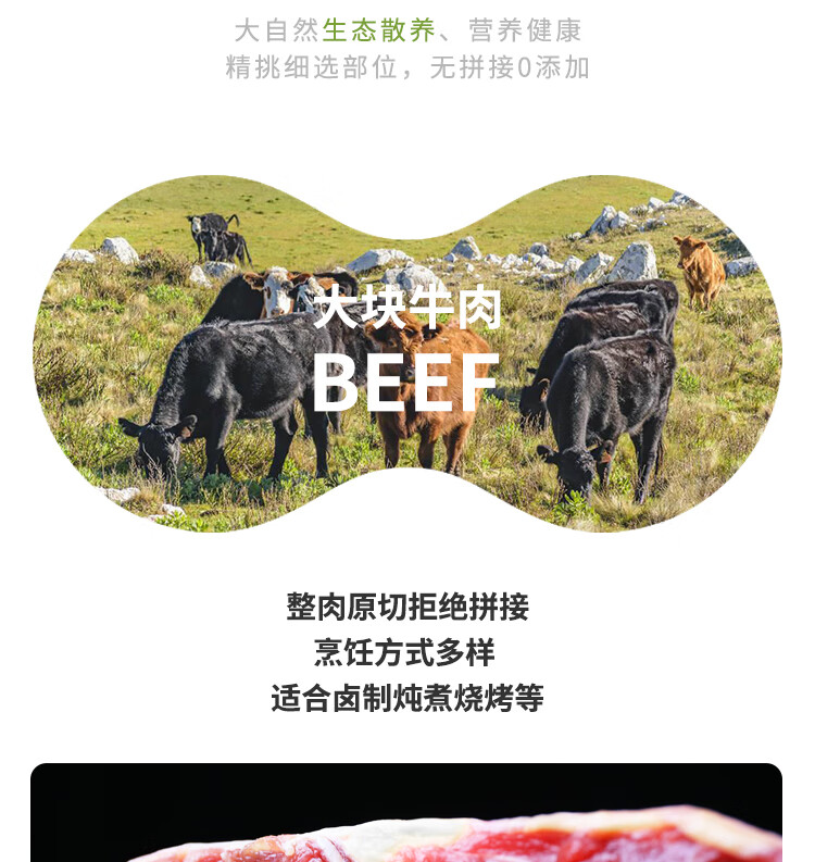 膳之牛&农夫好牛 阿根廷草饲原切大块牛肉净重4斤 带筋膜生鲜牛肉