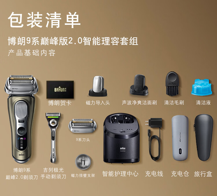 博朗9系巅峰版2.0清洁旅行高端礼盒款便捷整机德国进口往复式剃须刀电动送老公男朋友生日礼物 男