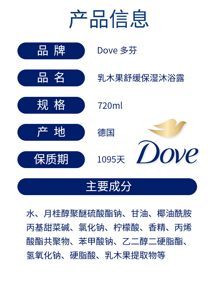 多芬(Dove)乳木果精油滋养沐浴露深层保湿滋养嫩肤柔亮清洁720ml