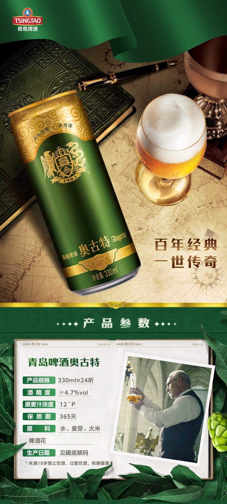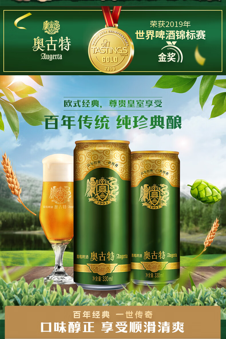 青岛啤酒(TsingTao)奥古特330ml*24听 整箱装年货送礼
