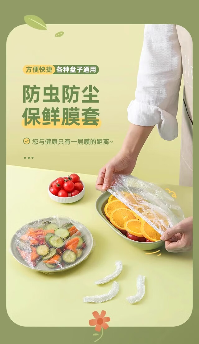 一次性保鲜膜套罩食品级厨房冰箱专用保鲜袋带碗盖大有效食物收纳 1000个拉伸长38厘米