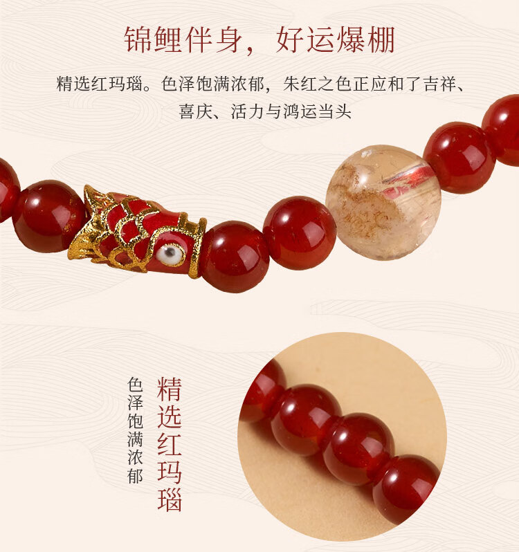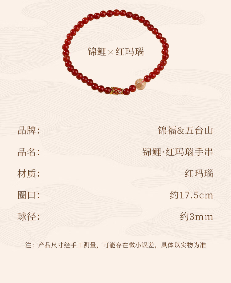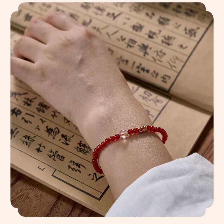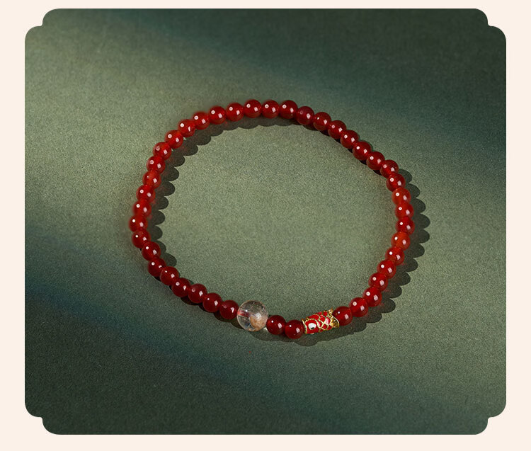 锦福五台山小米珠手串红玛瑙景泰蓝红玛瑙手串天然水晶招财转运本命年手链女