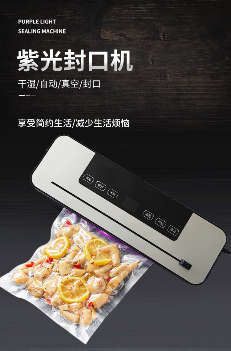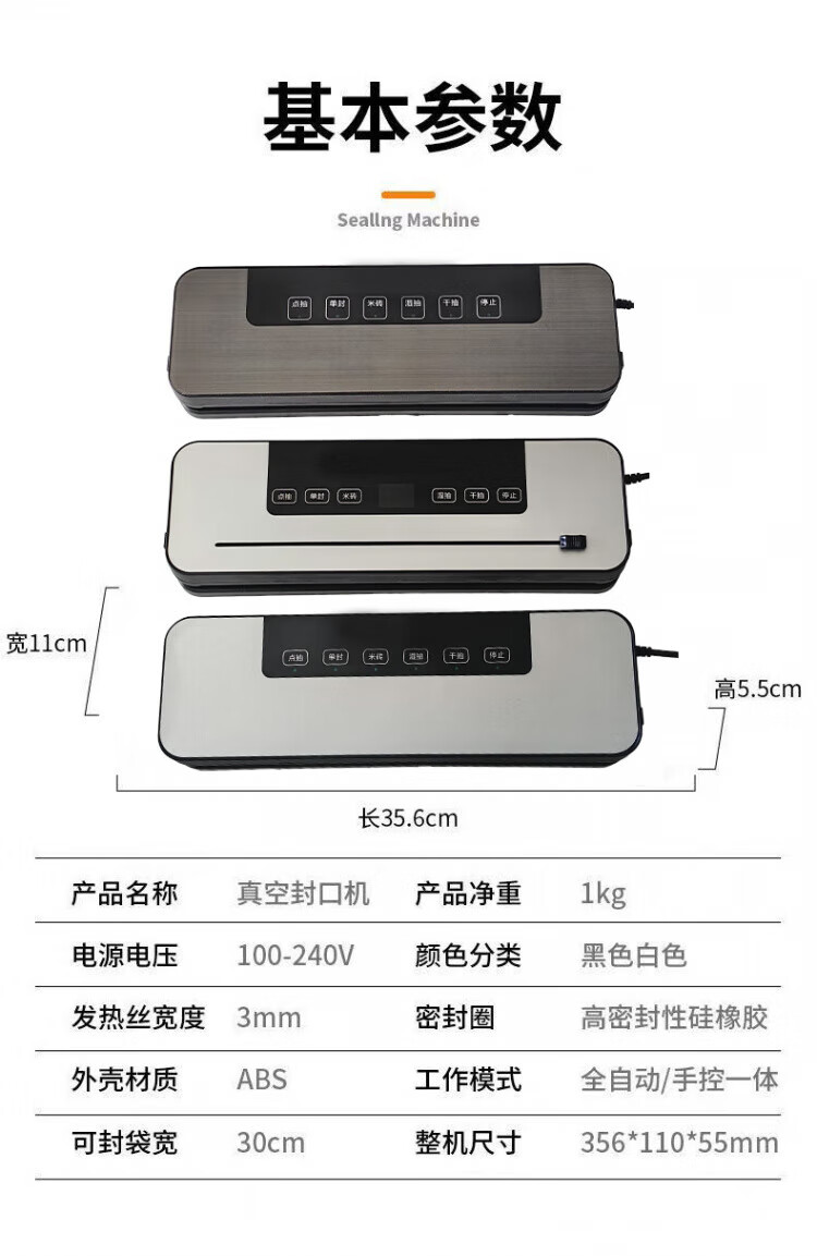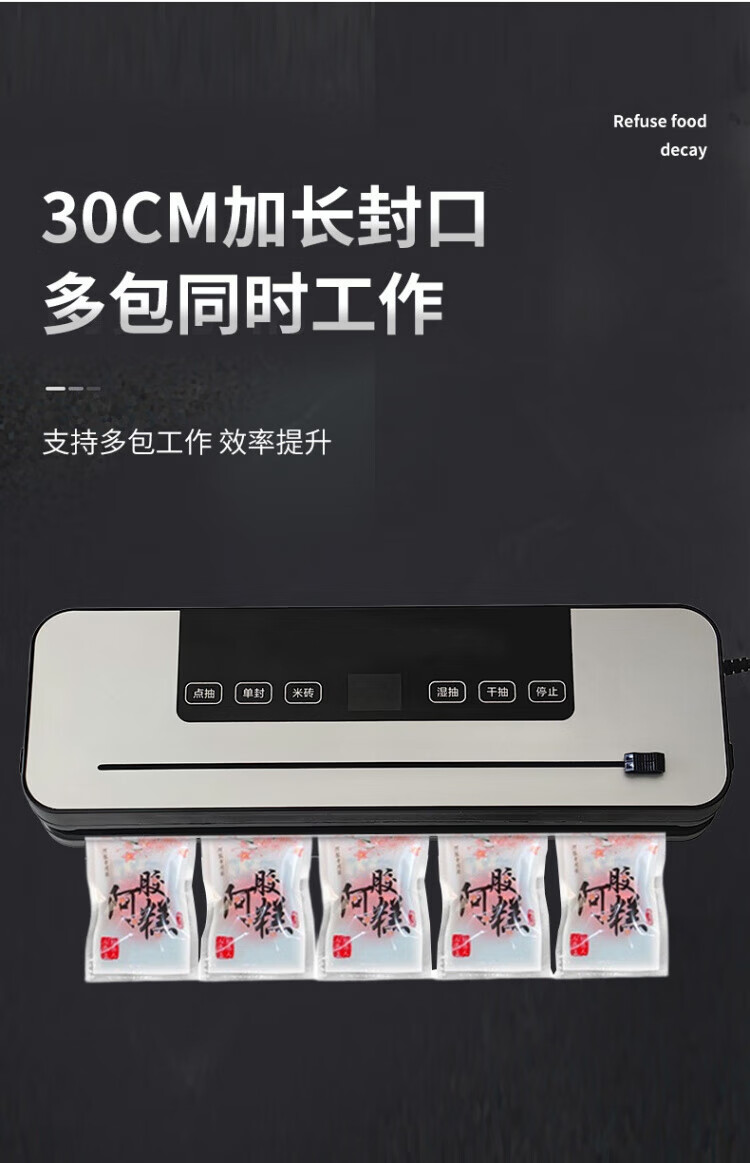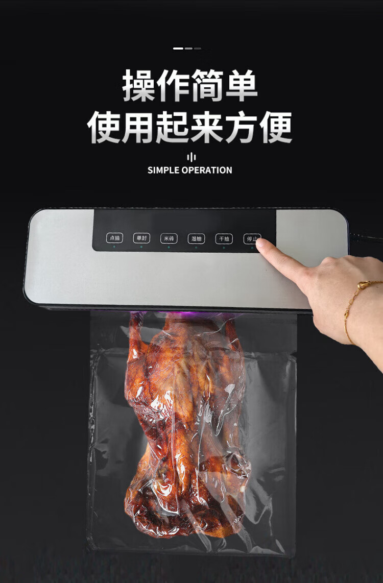 SSIIXX日本品牌真空封口机家用食品保鲜机全小型自动干湿两用真空包装机 国标(国内用)+50个真空袋 30m