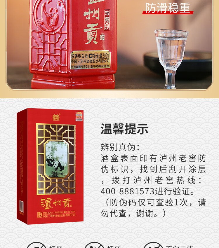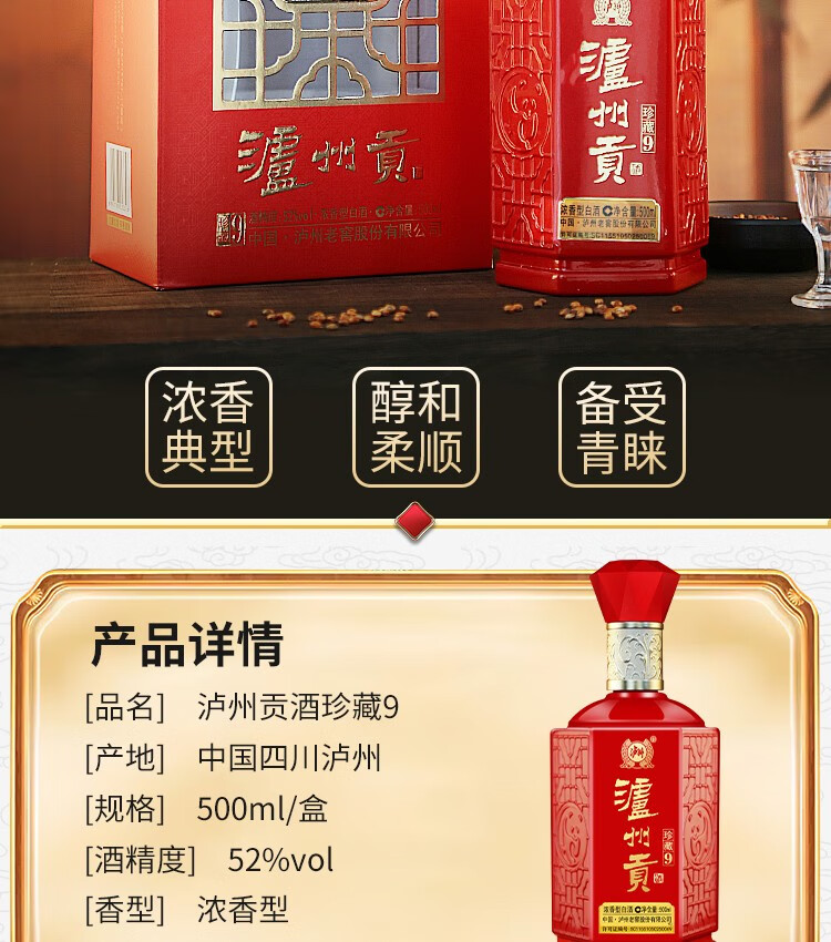 泸州老窖老窖股份出品泸州贡52度浓香型白酒粮食口粮白酒婚宴寿宴用酒 52%vol 500mL 6瓶 【珍藏9】