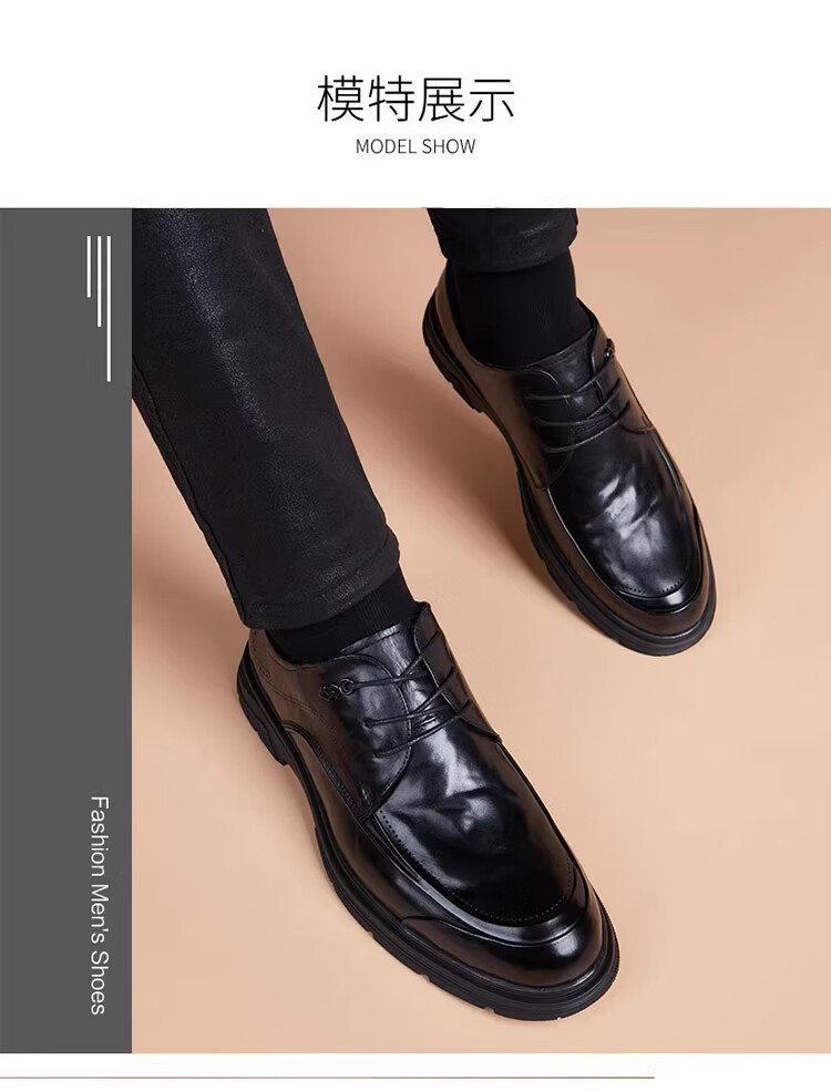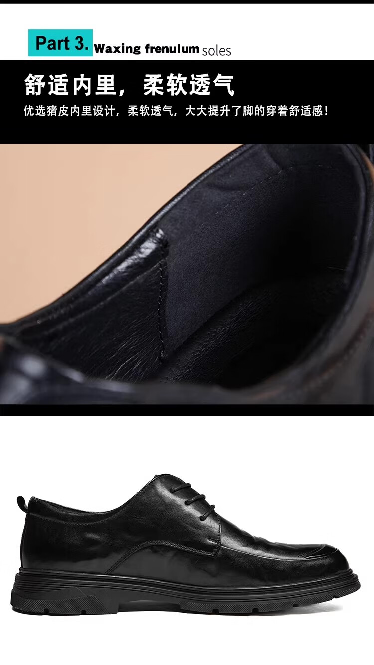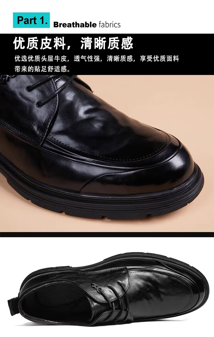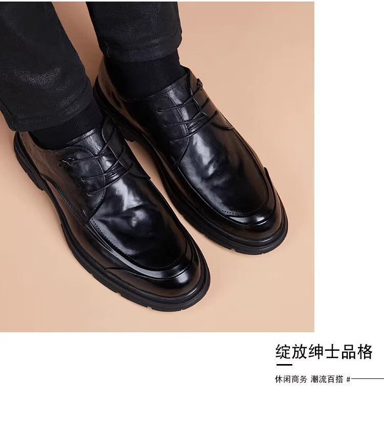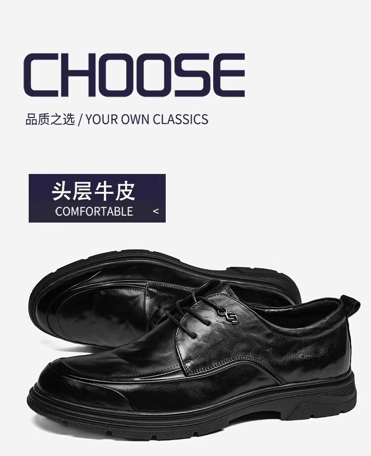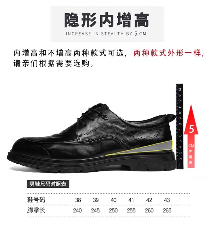 Walker Shop皮鞋男款2026新款真皮商务正装男鞋休闲内增高透气软底男士皮鞋 高档黑色【品牌男鞋 礼盒包装】 41
