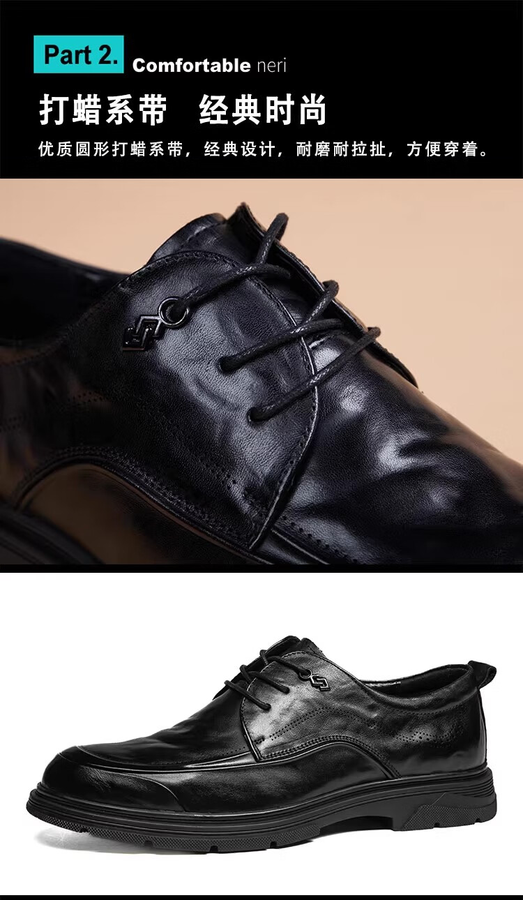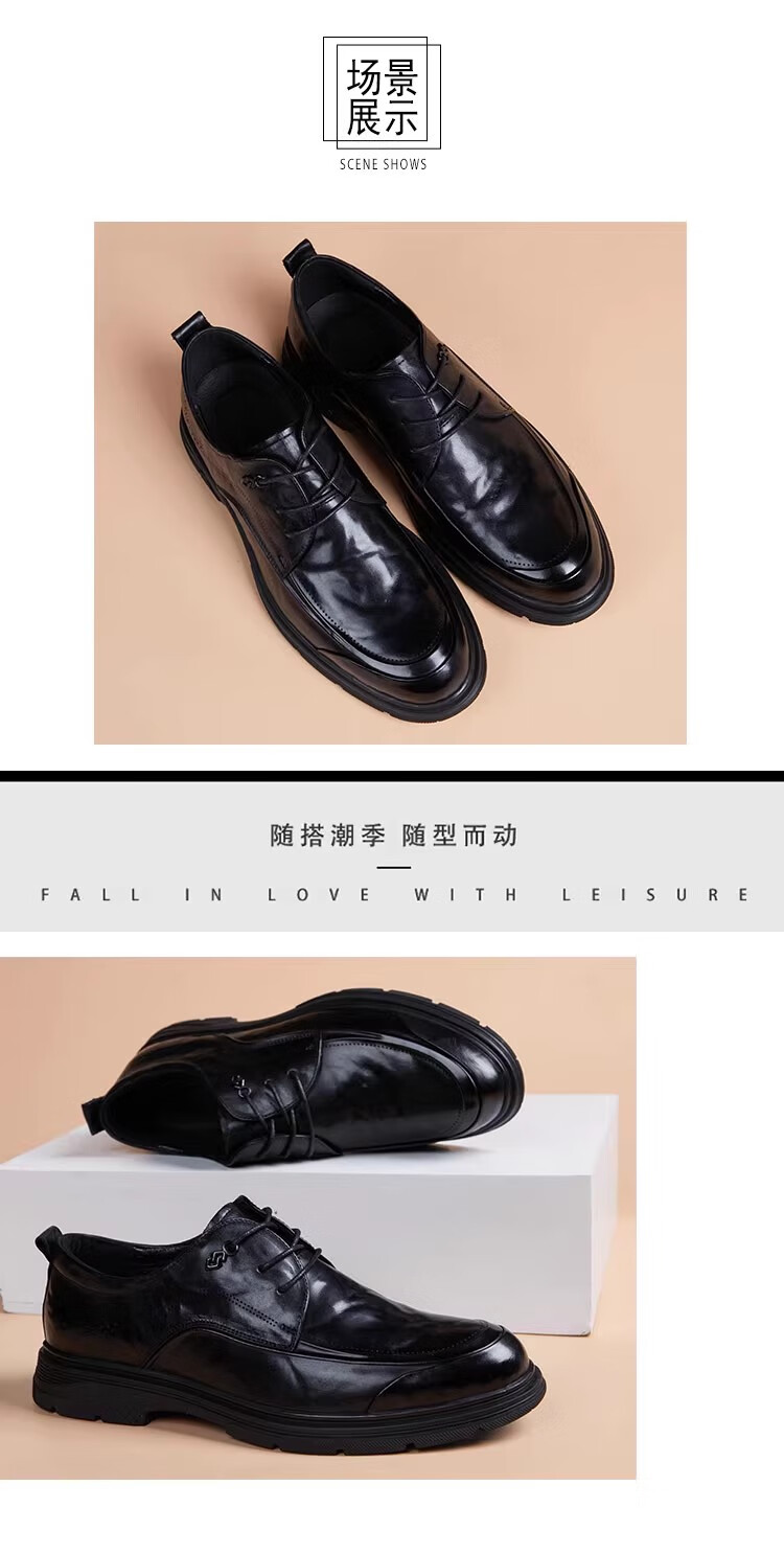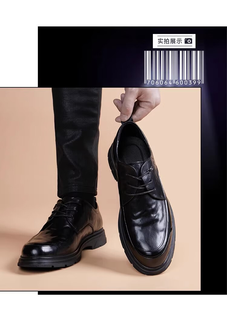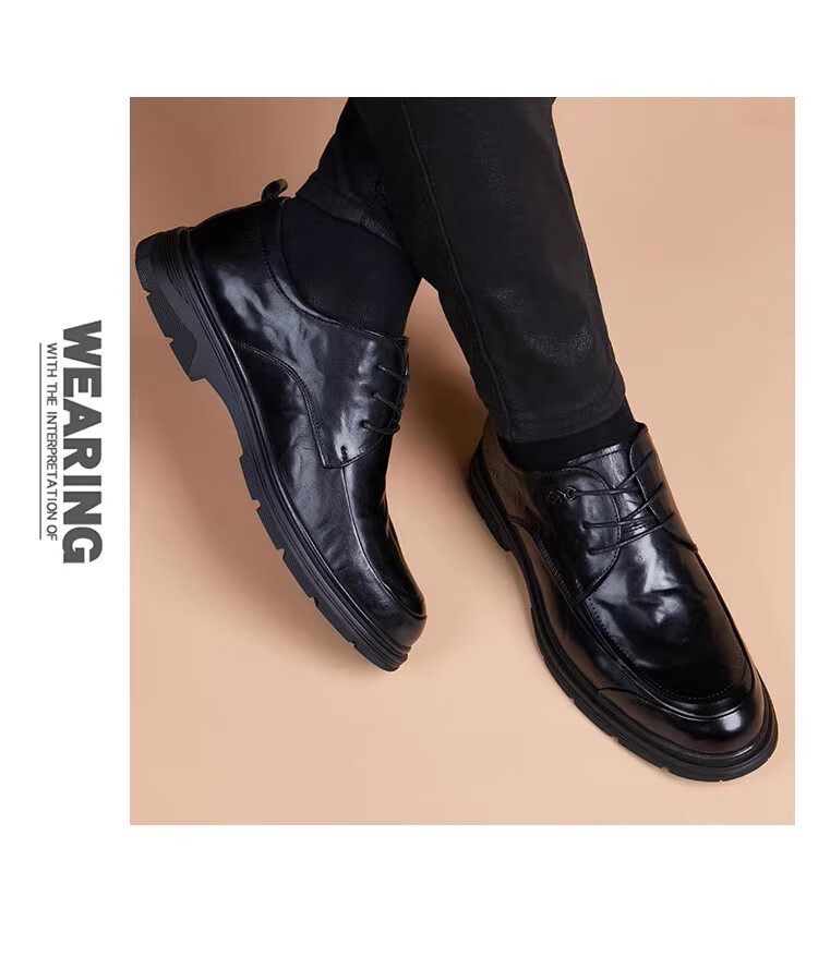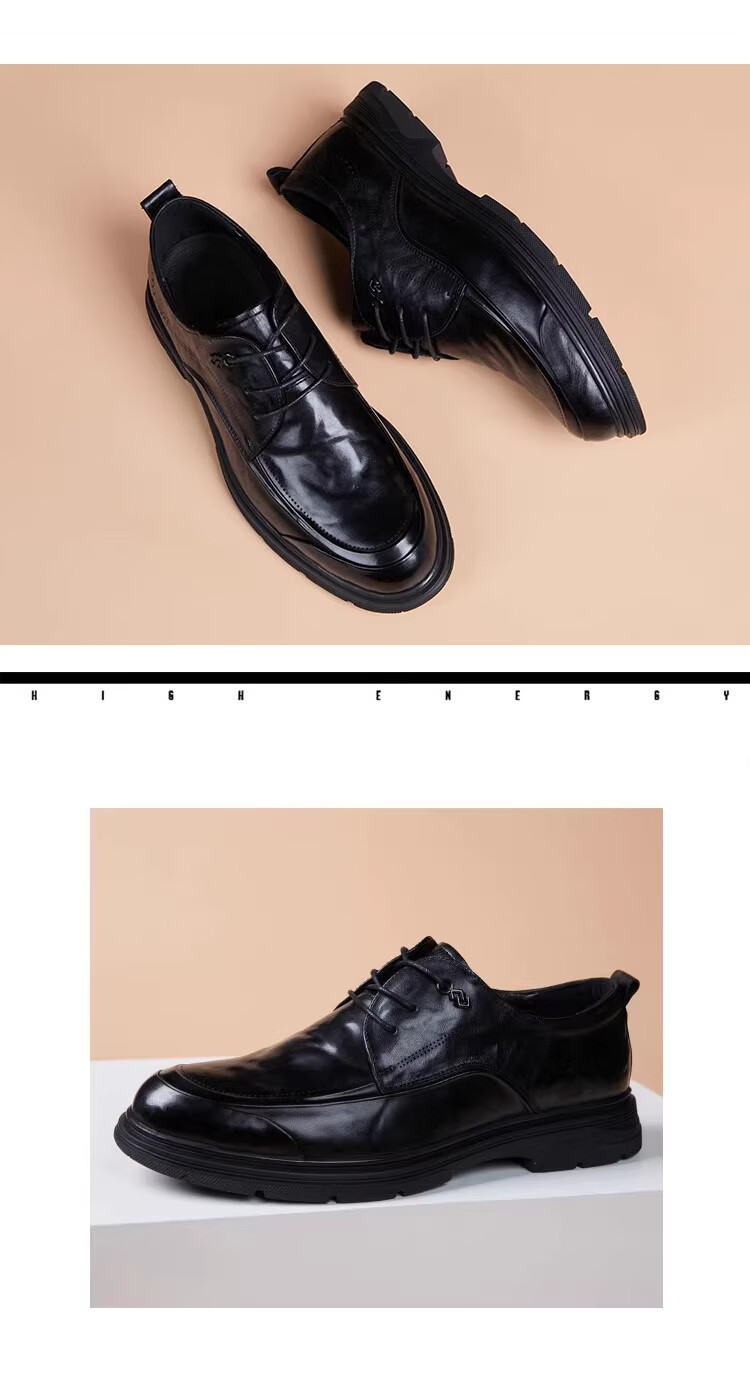 Walker Shop皮鞋男款2026新款真皮商务正装男鞋休闲内增高透气软底男士皮鞋 高档黑色【品牌男鞋 礼盒包装】 41