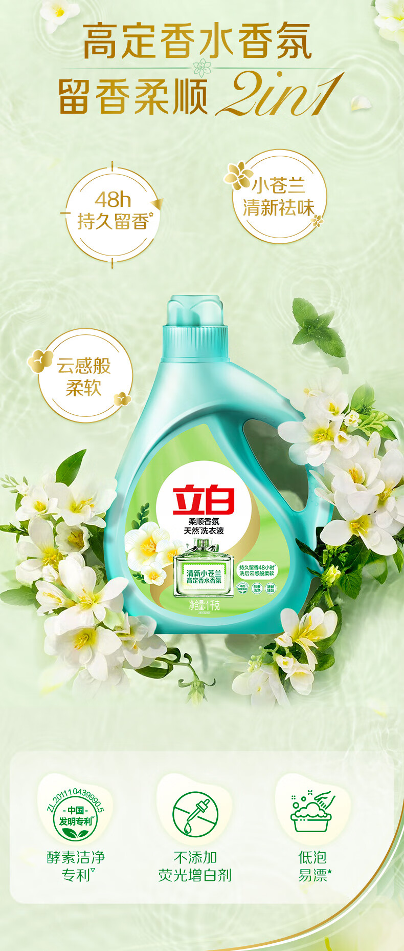 立白小苍兰香氛洗衣液持久留香柔顺护衣护色手洗机洗香氛洗衣液 【8斤】小苍兰洗衣液2kg×2瓶