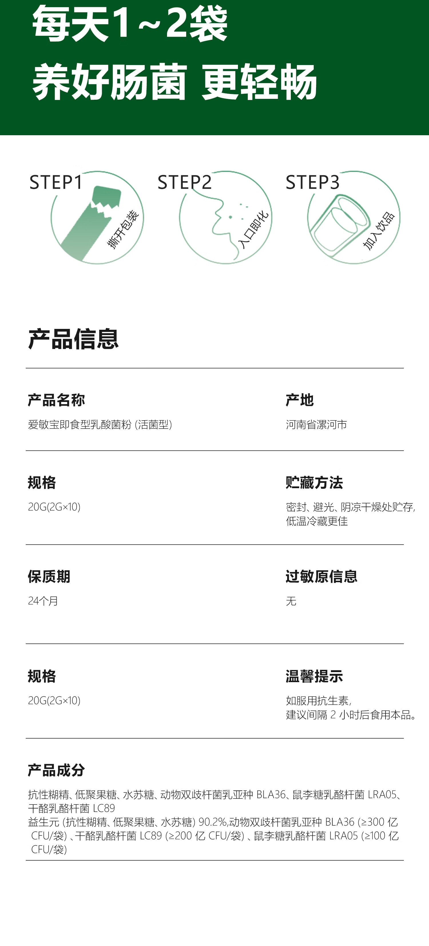 LUFUPURE【旗舰店】爱敏宝 活菌型乳酸菌益生菌粉一盒装