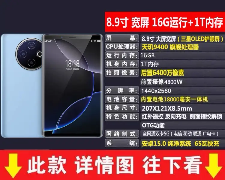 WUHADP8.9英寸超级大屏智能手机18000mAh大电池超长待机7英寸8英寸以上备用机 8.9英寸 P300max 8.9寸 P300max 银色 旗舰版 16GB+1TB