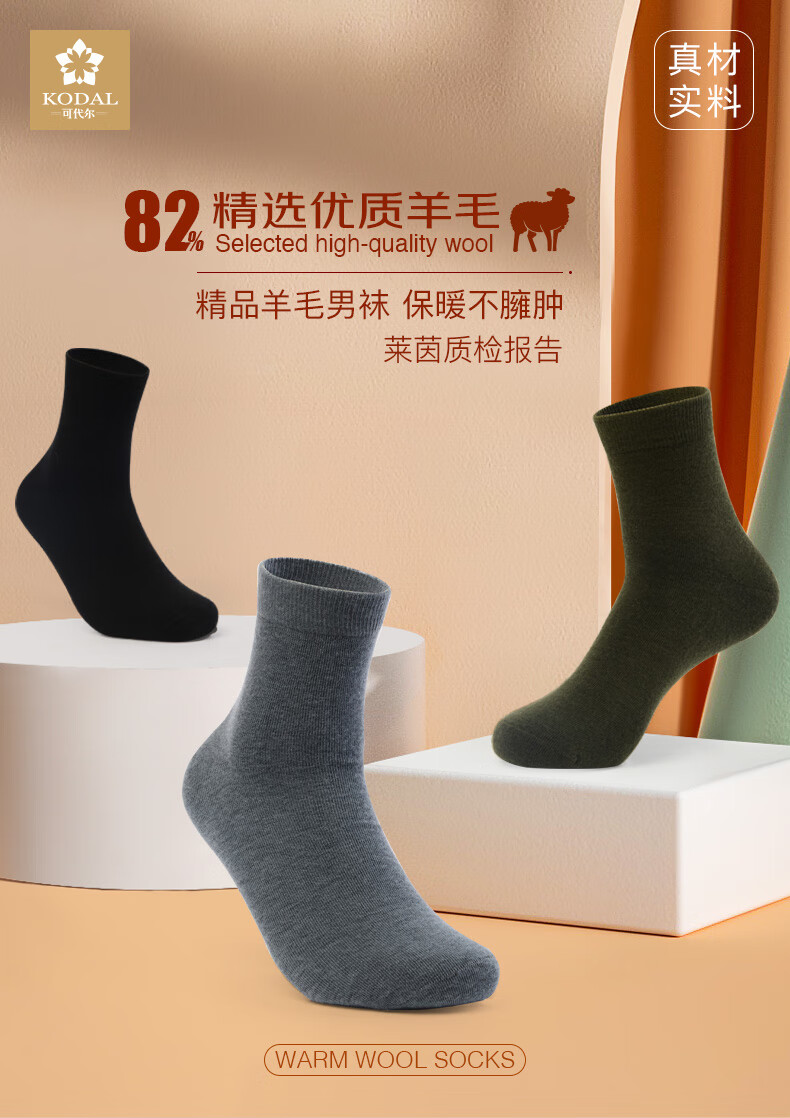 可代尔秋冬羊毛男袜保暖不臃肿舒适亲肤不扎脚男士中筒商务休闲厚毛袜子 深橄榄绿2双+深岩灰2双/ 4双