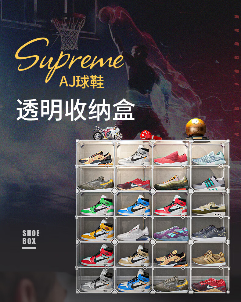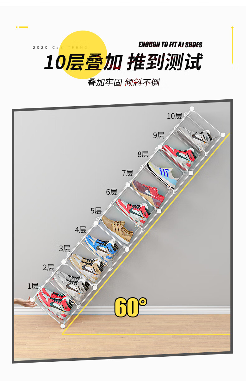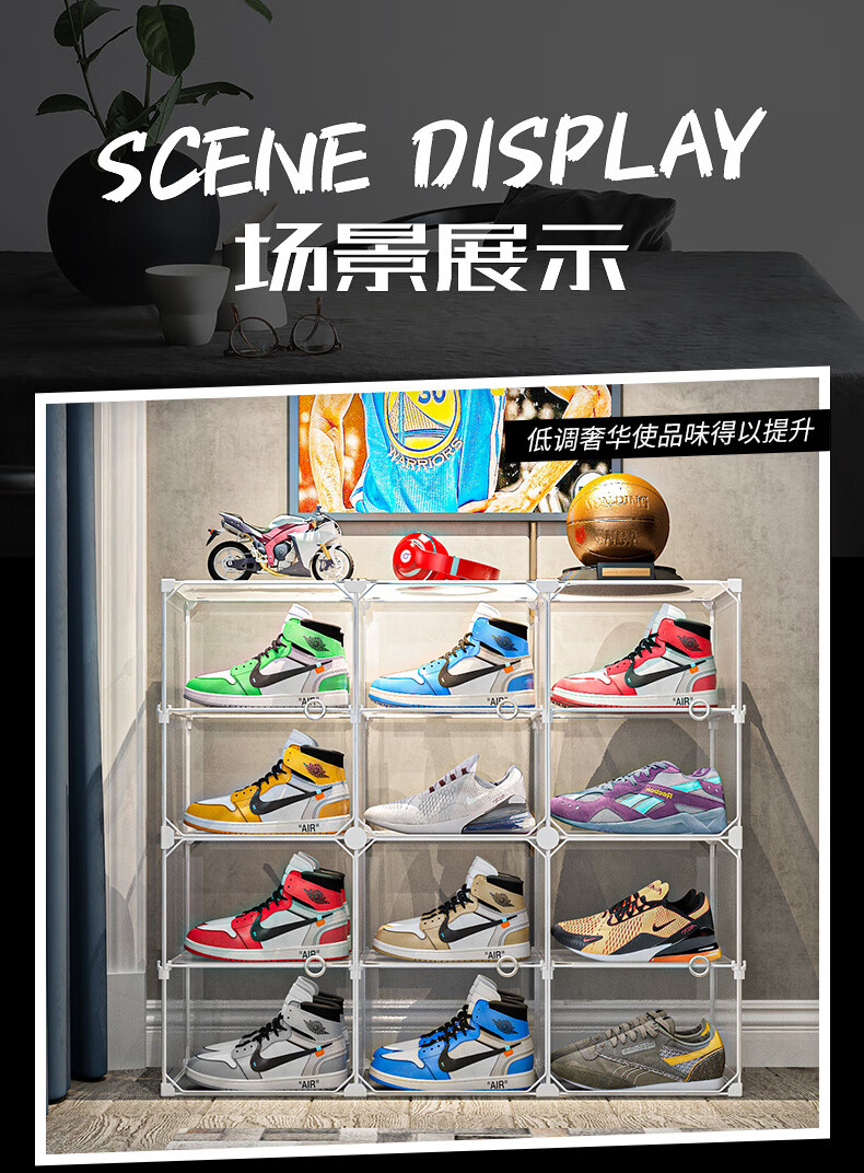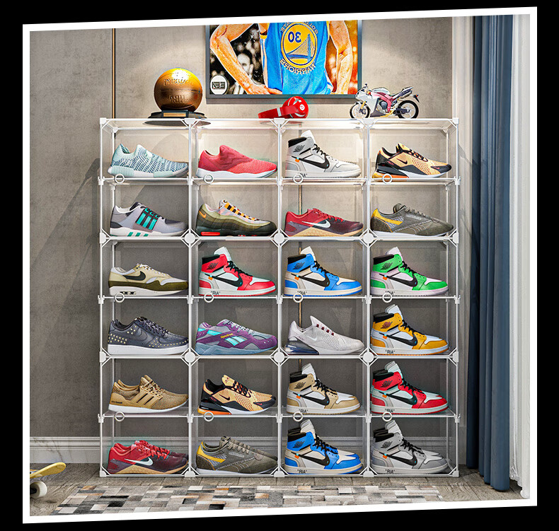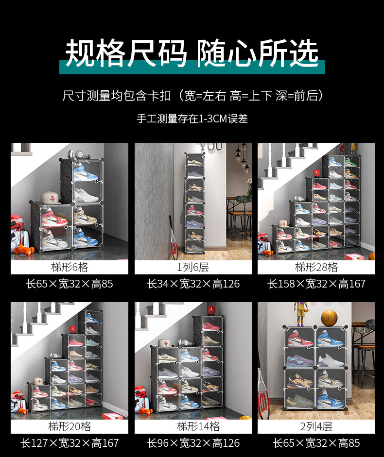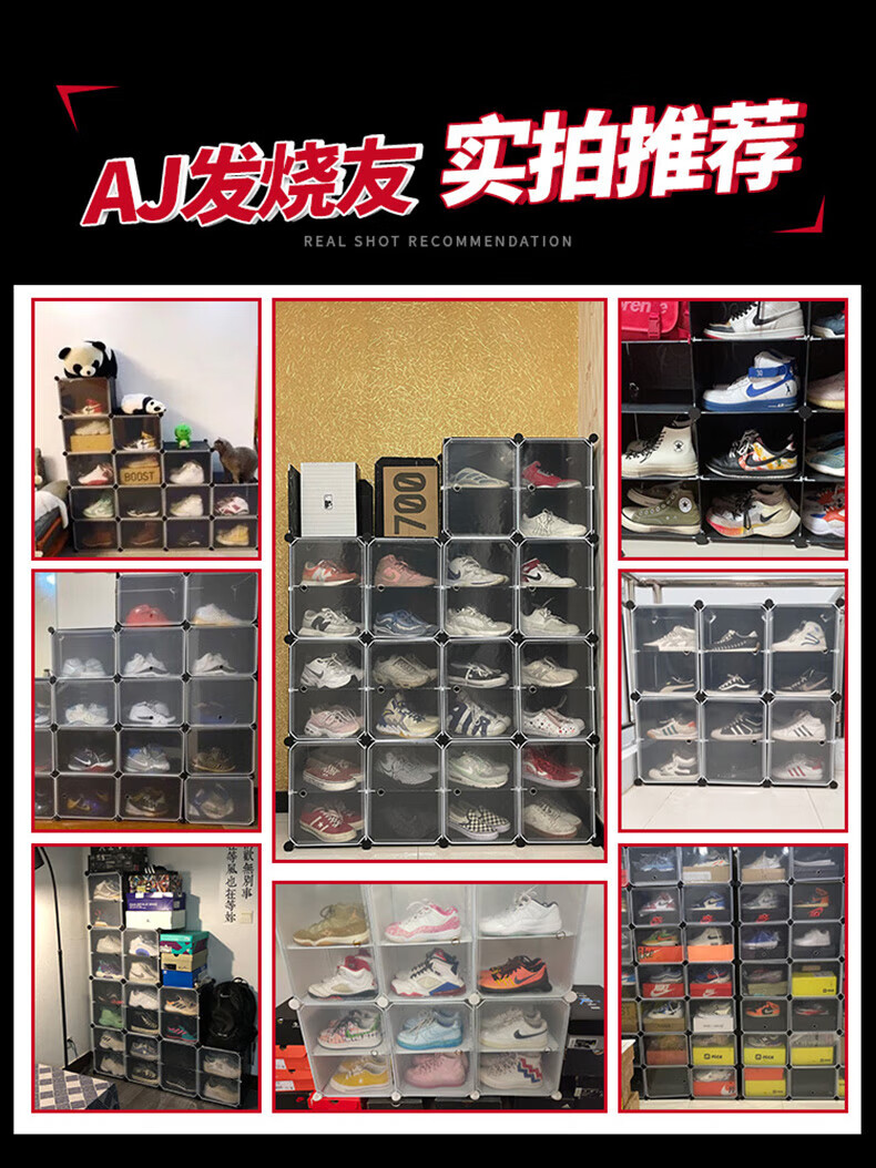 收纳达人 透明鞋盒鞋子拼装收纳盒非折叠塑料鞋盒球鞋收纳神器网红鞋柜 【2列6层】尊享黑