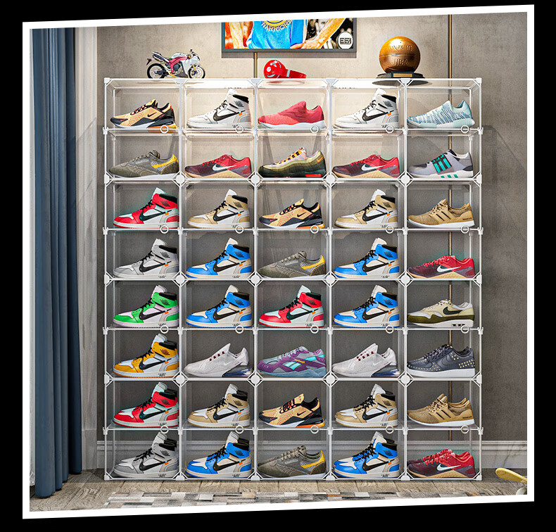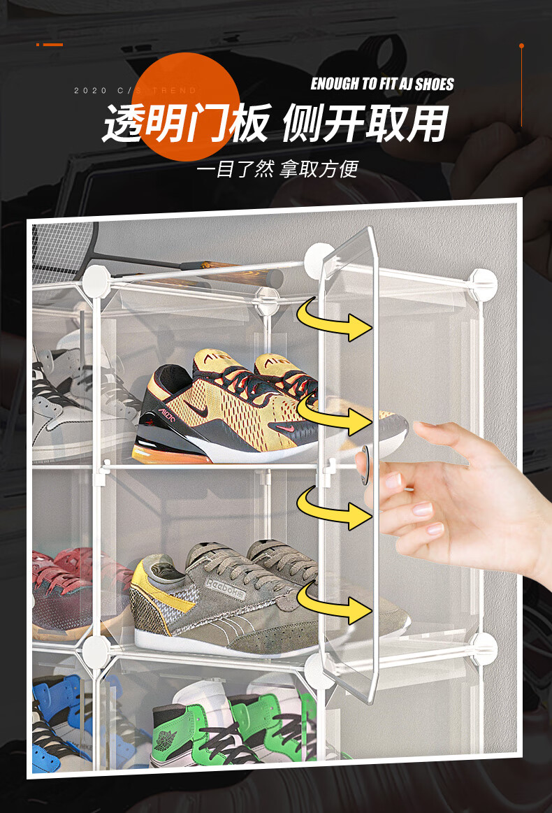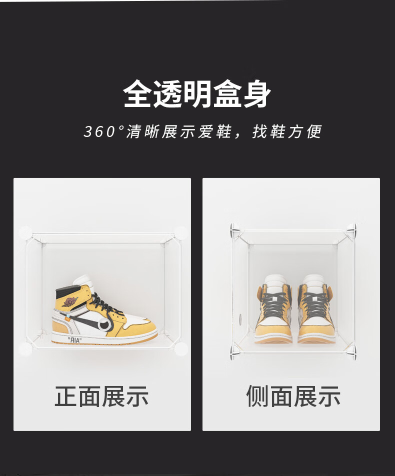 收纳达人透明鞋盒收纳球鞋收纳盒侧开鞋柜大号密封宿舍鞋子收纳神器 全透明展示【双列放8双鞋】