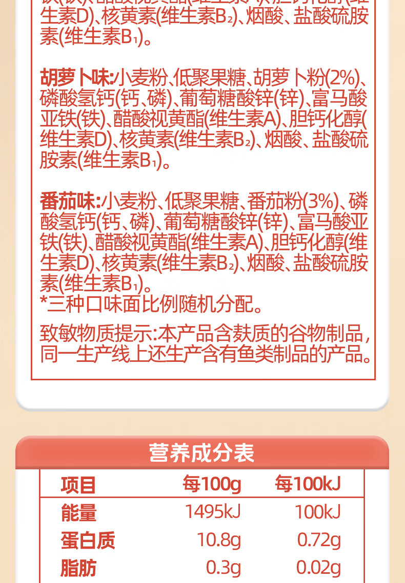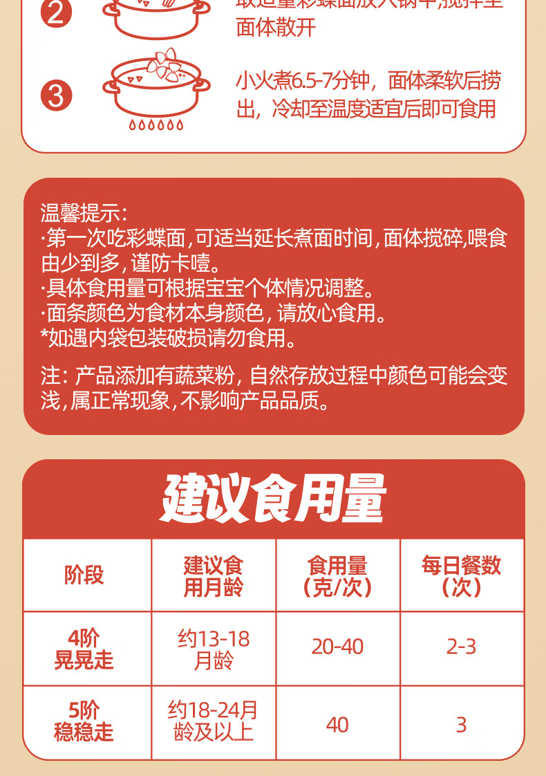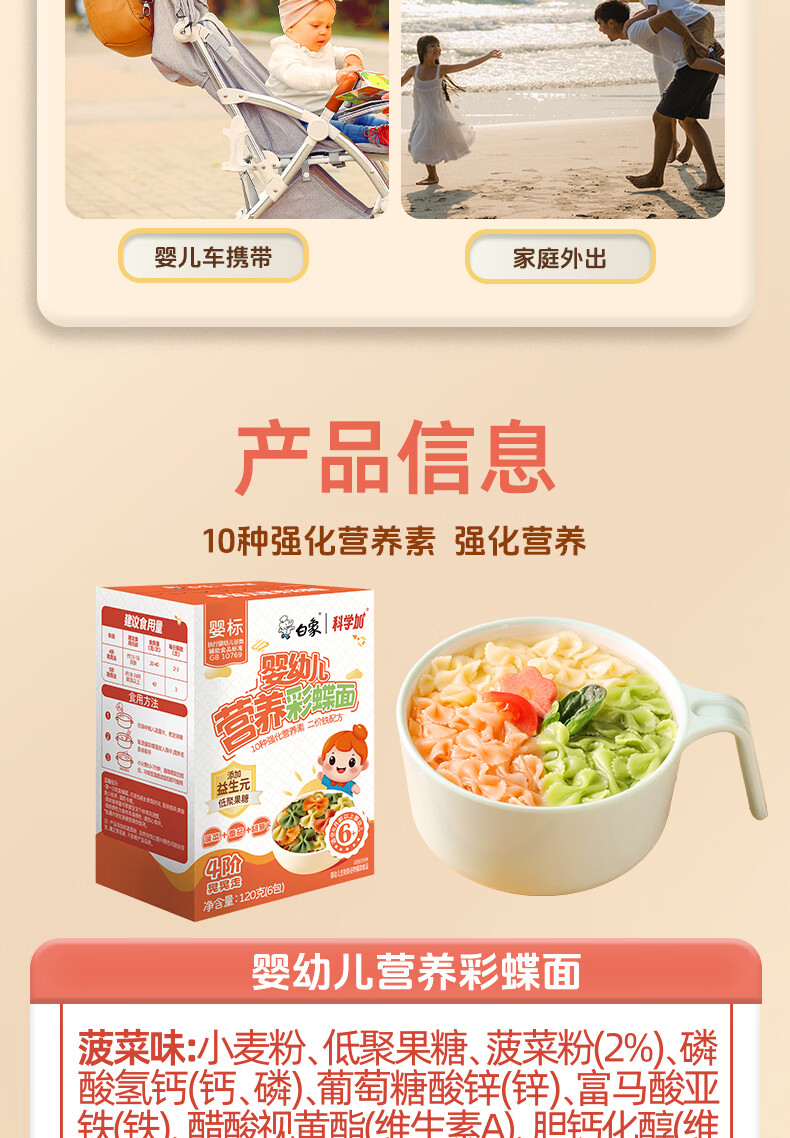 白象科学加 彩蝶面婴幼儿辅食面条婴标儿童宝宝营养面条120g*3盒