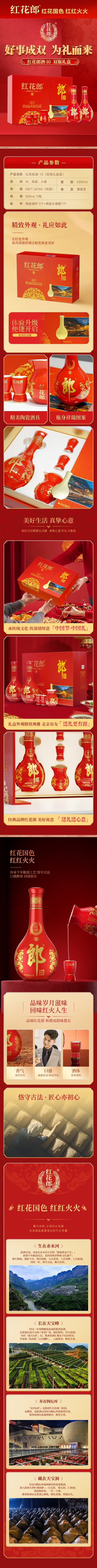郎酒红花郎10 酱香型白酒 53度 500ml*2瓶*3盒 礼盒装 年货礼盒