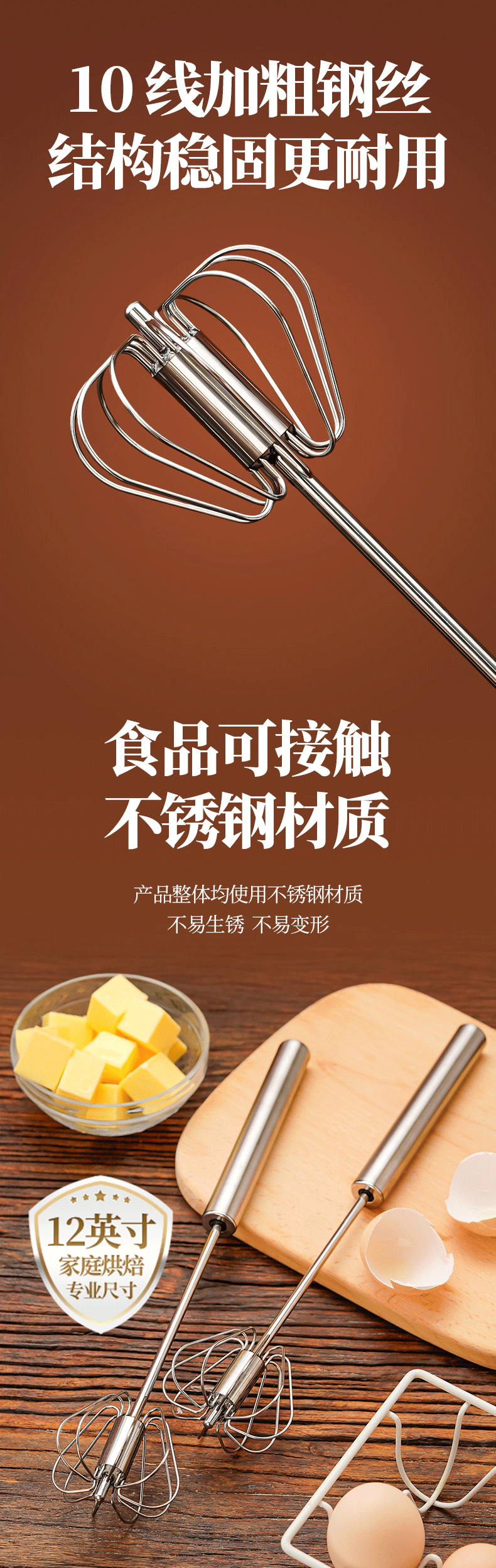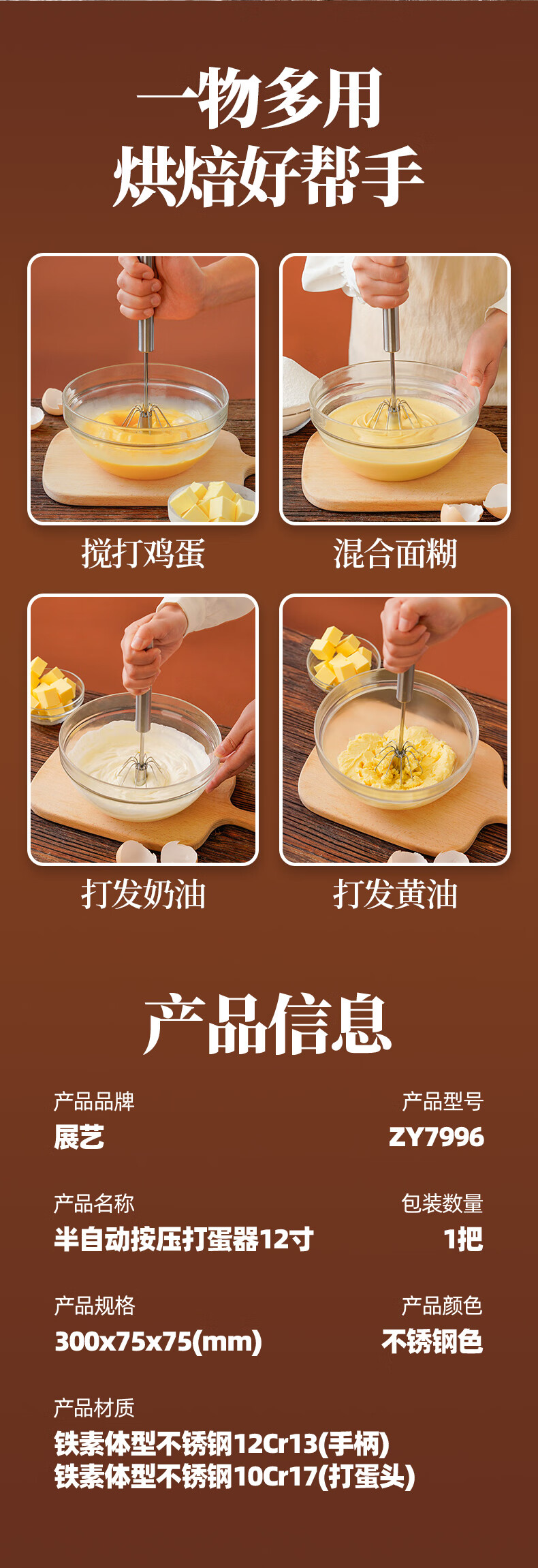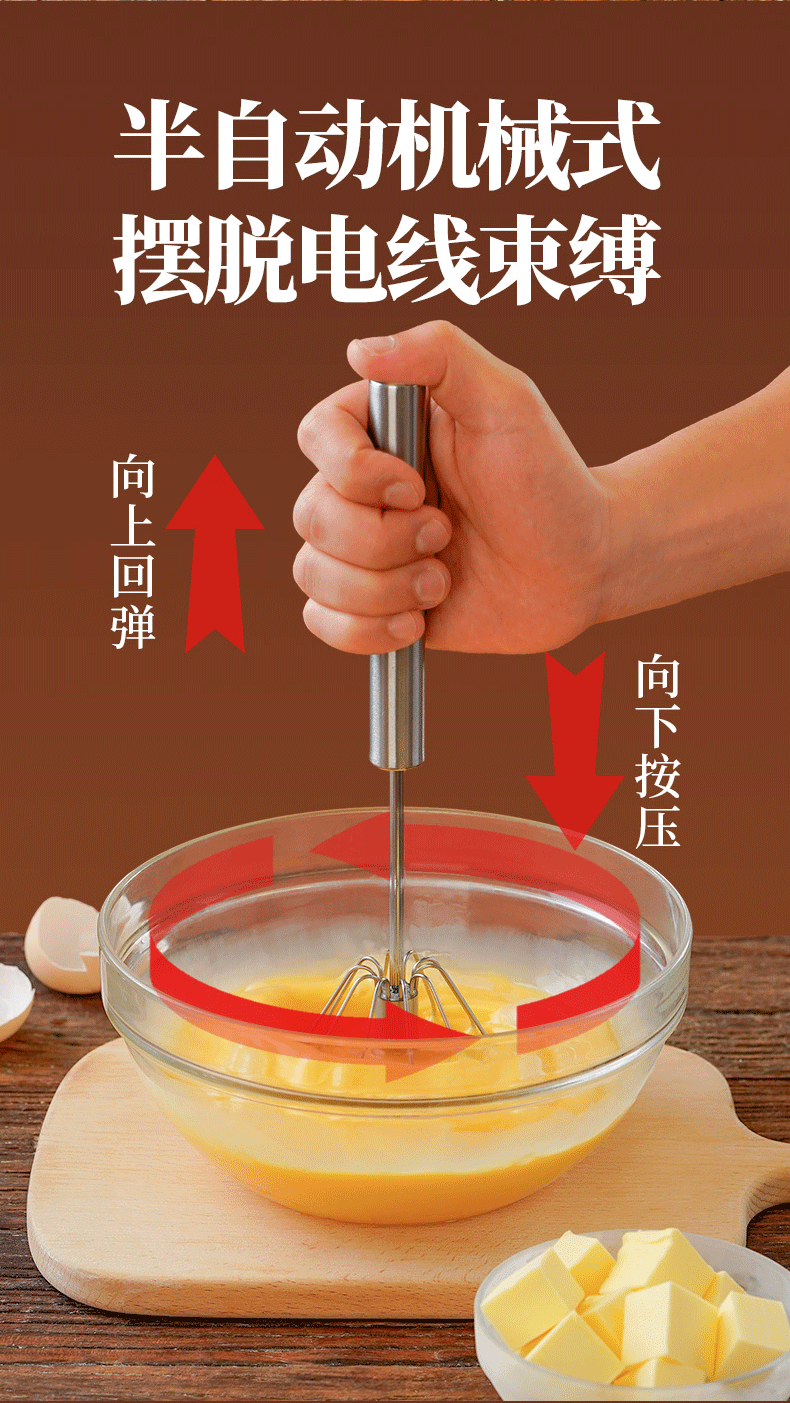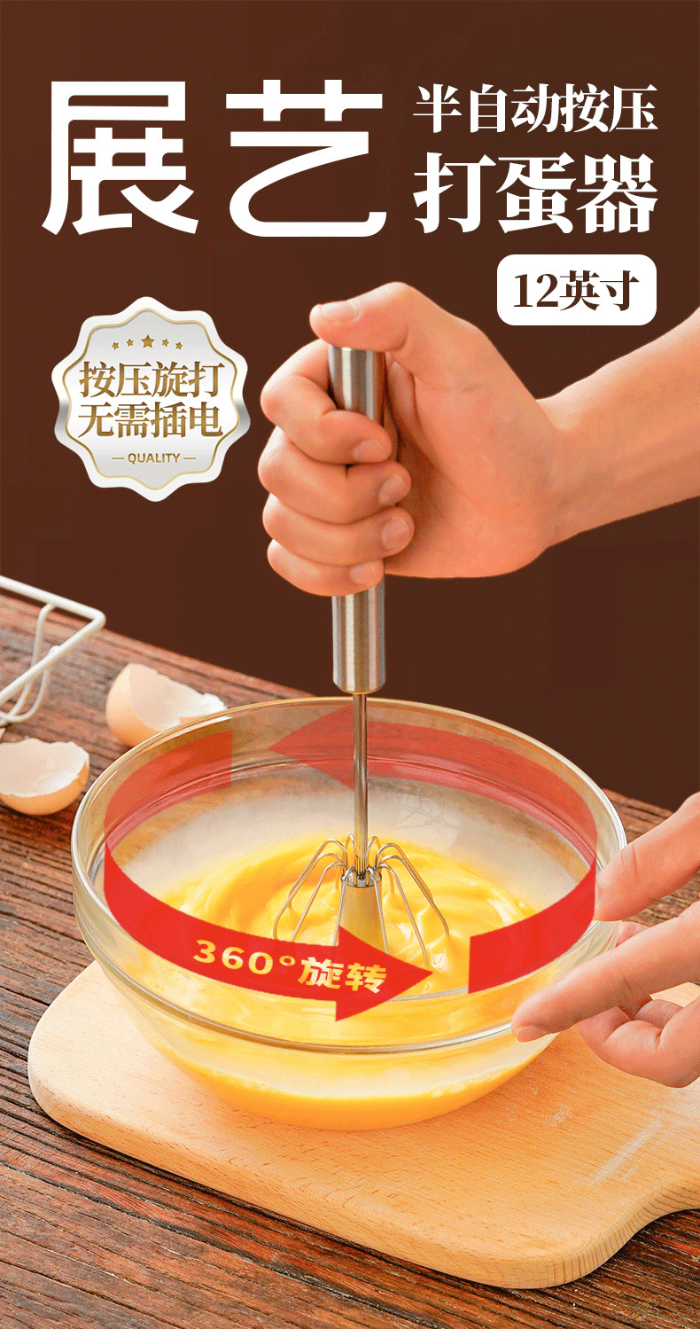 展艺手动半自动按压打蛋器辅食工具电饭煲蛋糕面包新年不锈钢搅蛋器