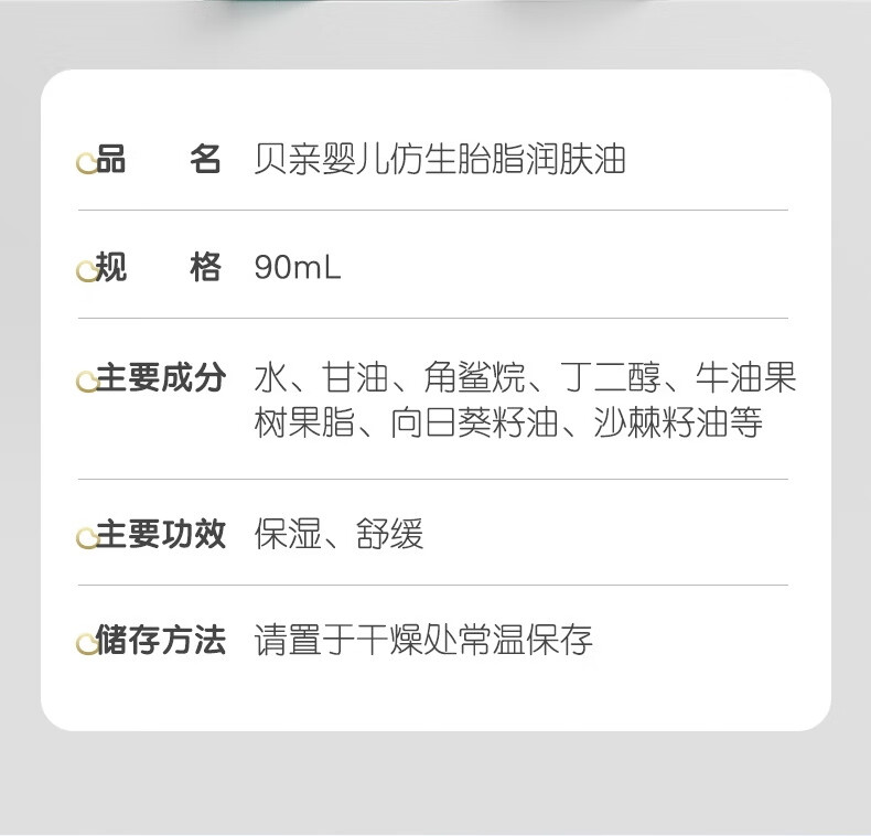 贝亲(Pigeon)婴儿仿生胎脂润肤油90ml IA312