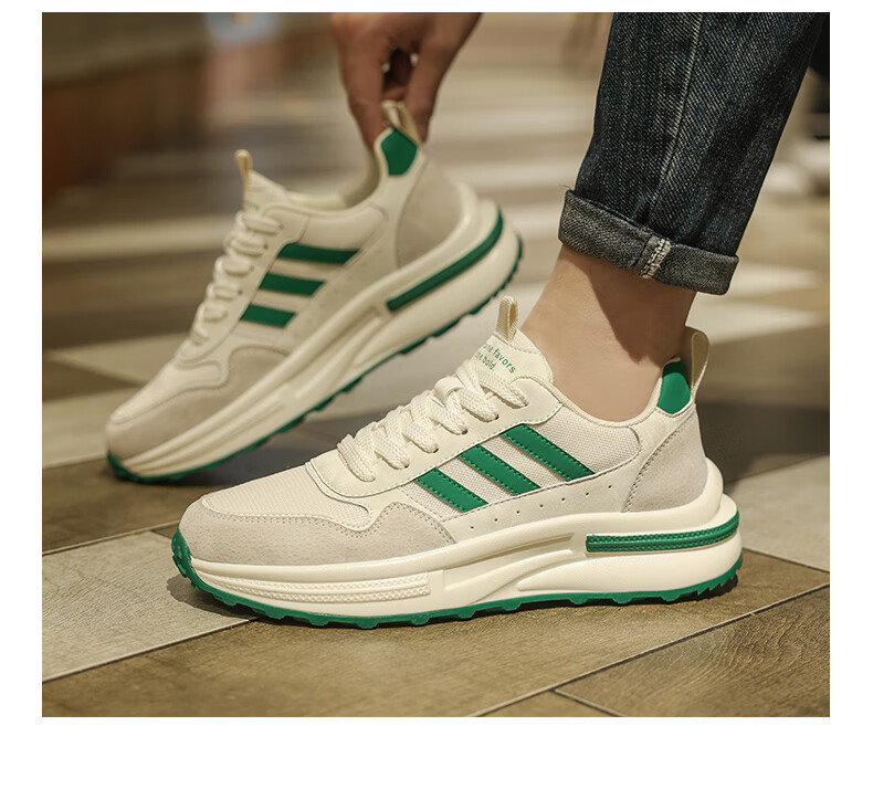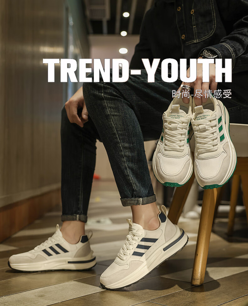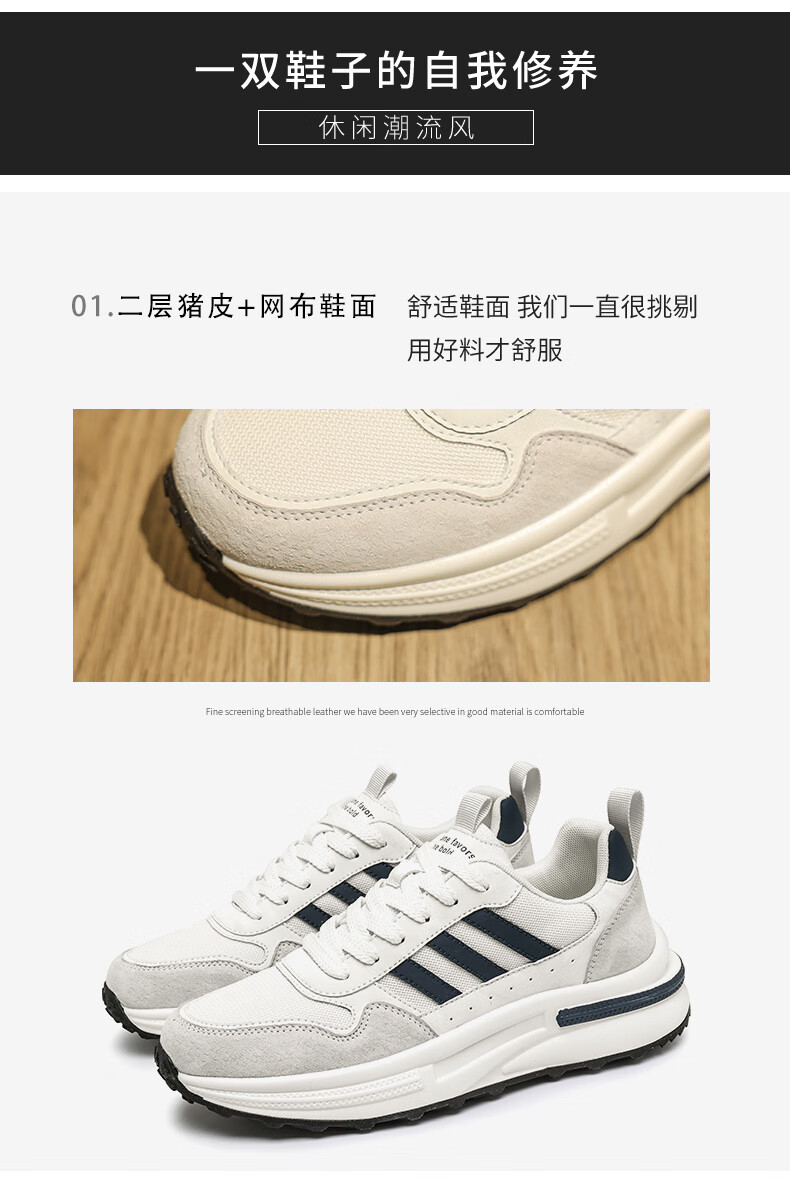 潮牌男鞋秋冬季2025新款潮流透气运动鞋男百搭软底休闲跑步鞋子男 AD662米兰【皮面】 42
